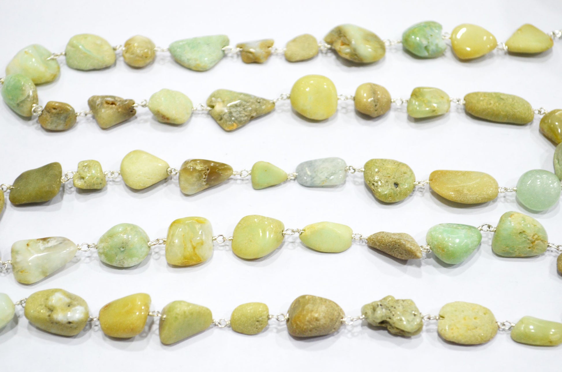 Raw Organic Chrysoprase Smooth Rosary Beaded Chain , Raw Organic Chrysoprase Tumble Shape Wire Wrapped Chain , 8 - 15 mm , RB-6010