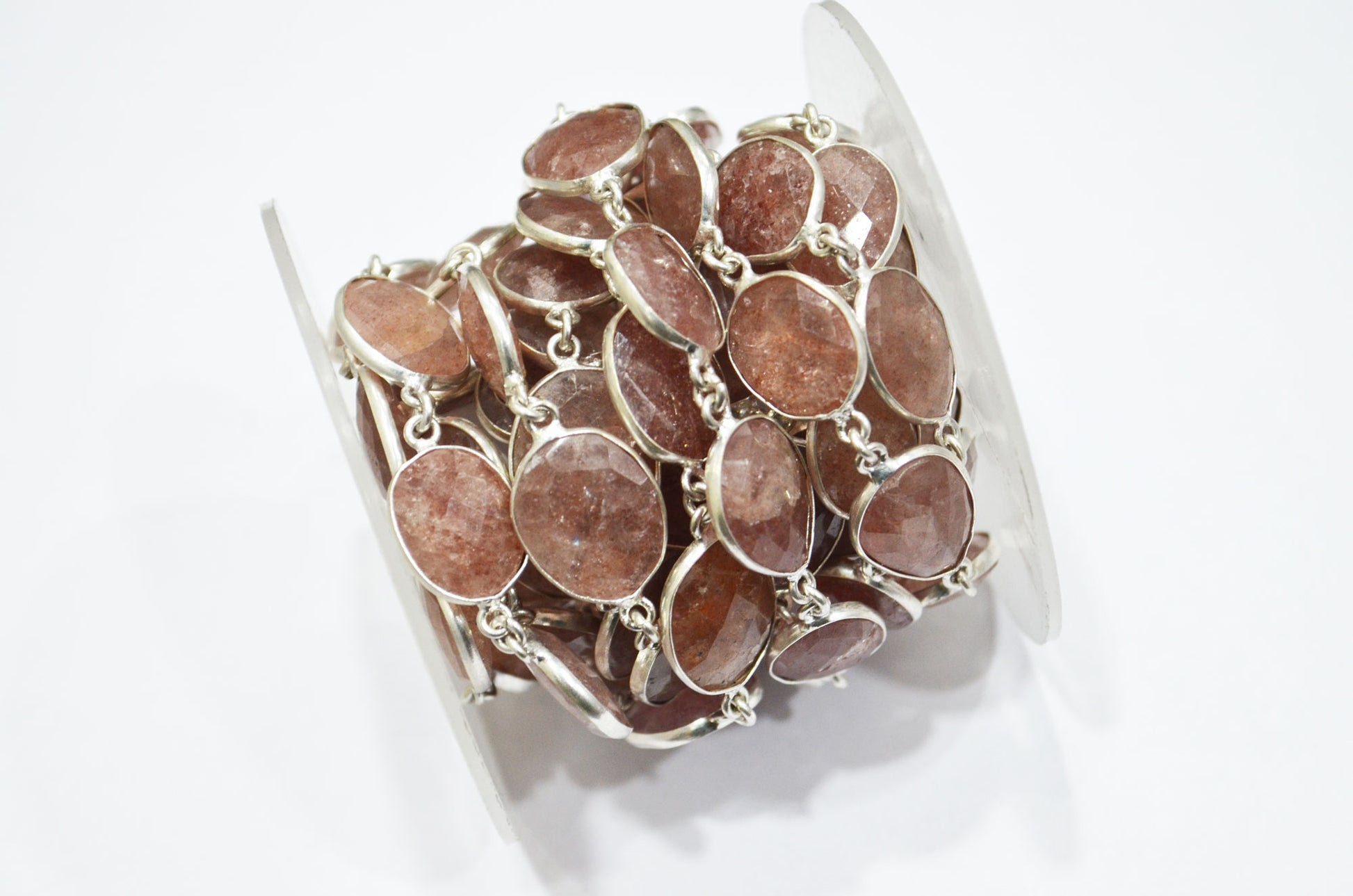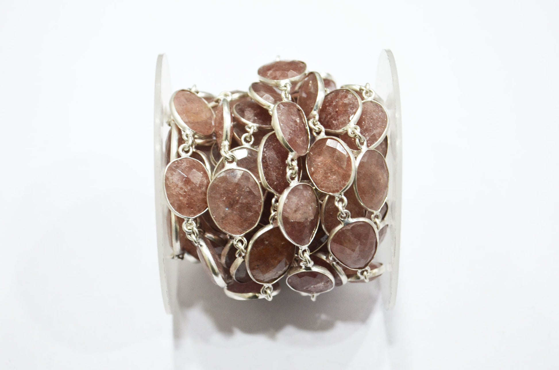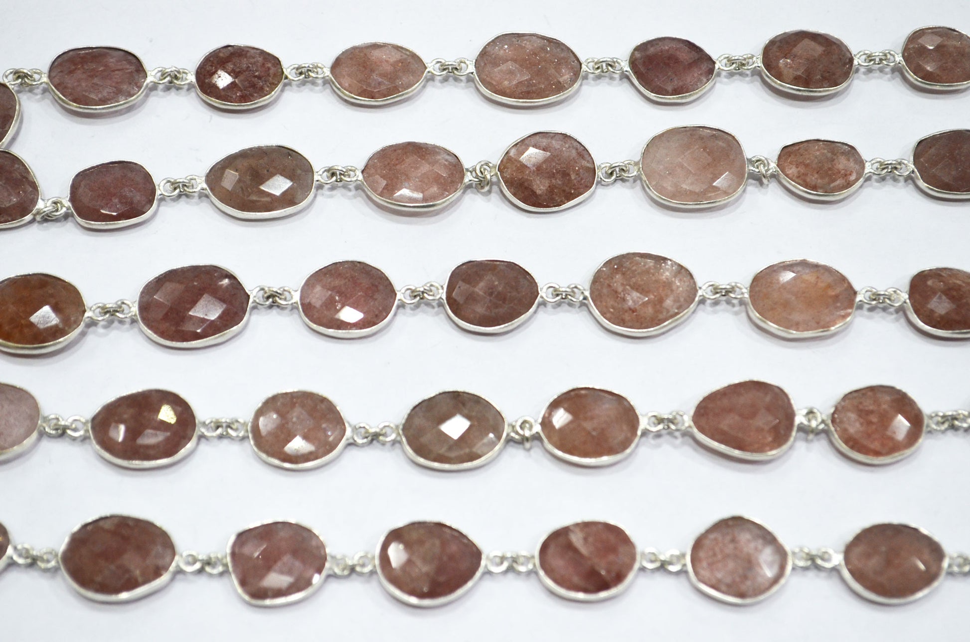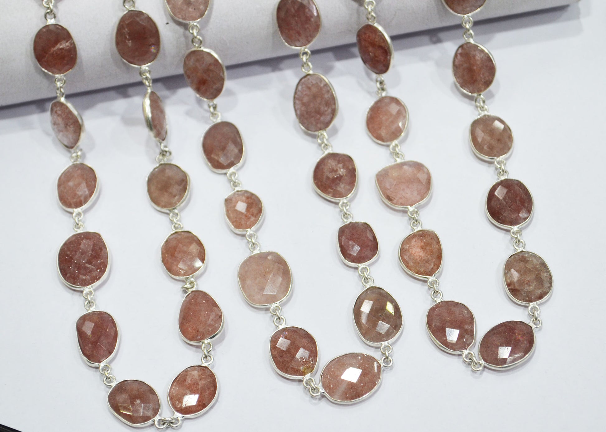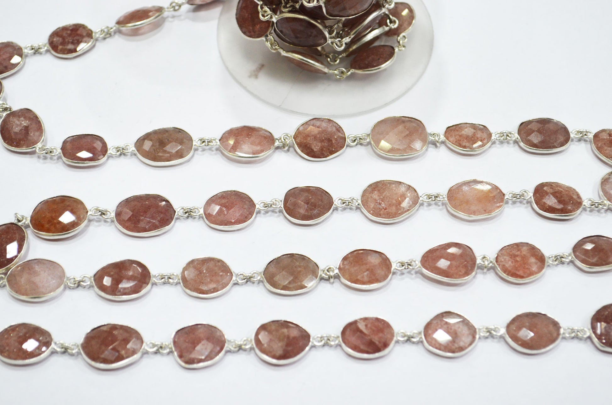 Red Strawberry Quartz Faceted Slice Shape Connector Chain , Red Strawberry Quartz Free Form Shape Bezel Link Chain , 12 - 18 mm , RB-6097