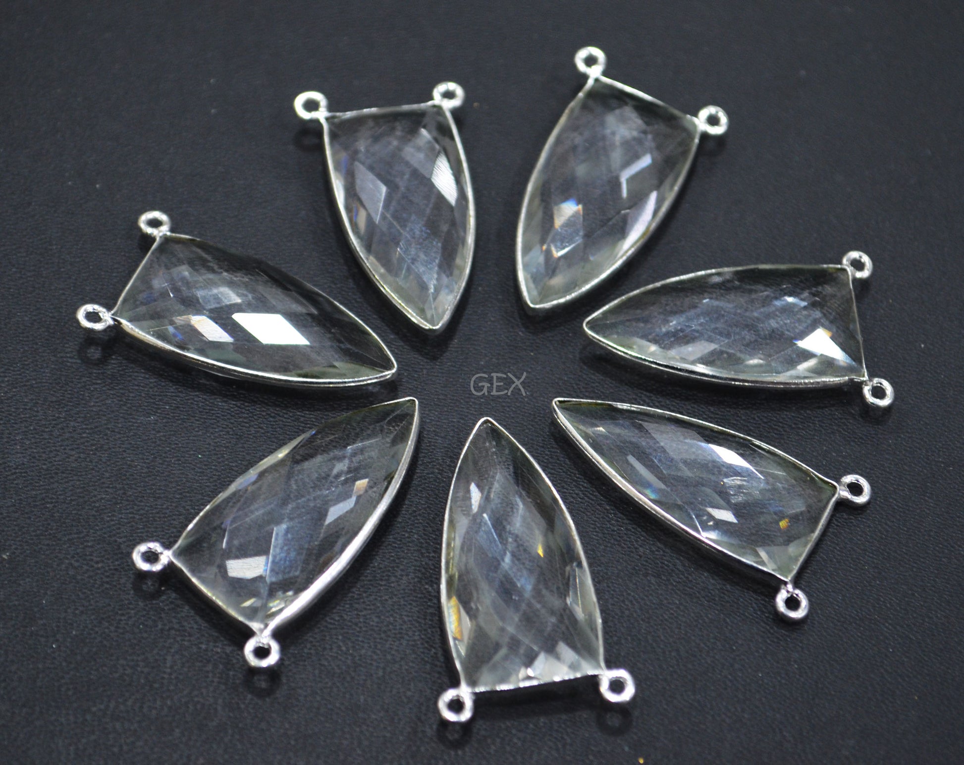 Crystal Hydro Quartz Faceted Arrowhead Shape Connector , Crystal Hydro Quartz Arrowhead Shape Double Bail Bezel Connector , Sold By Piece , 14x28 mm , RB-6742