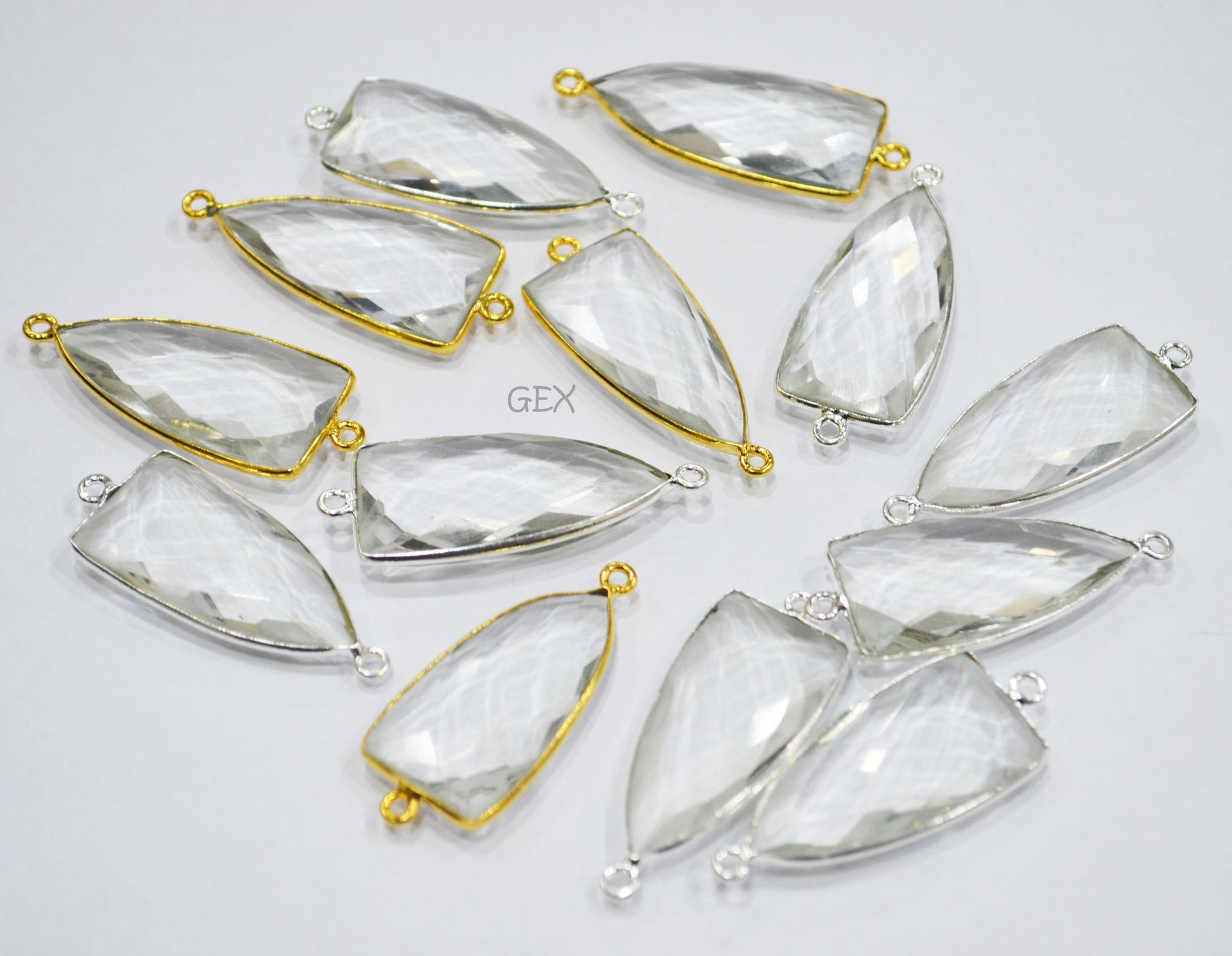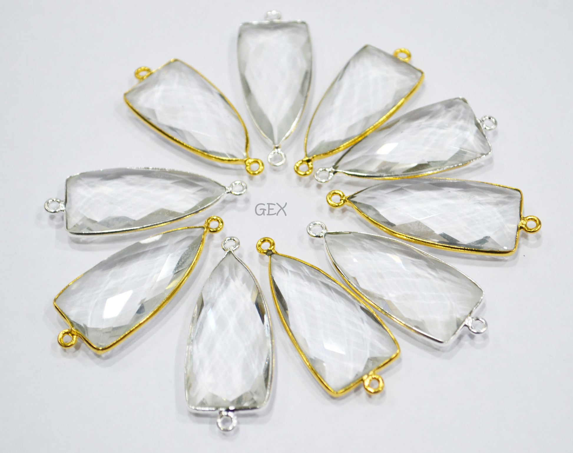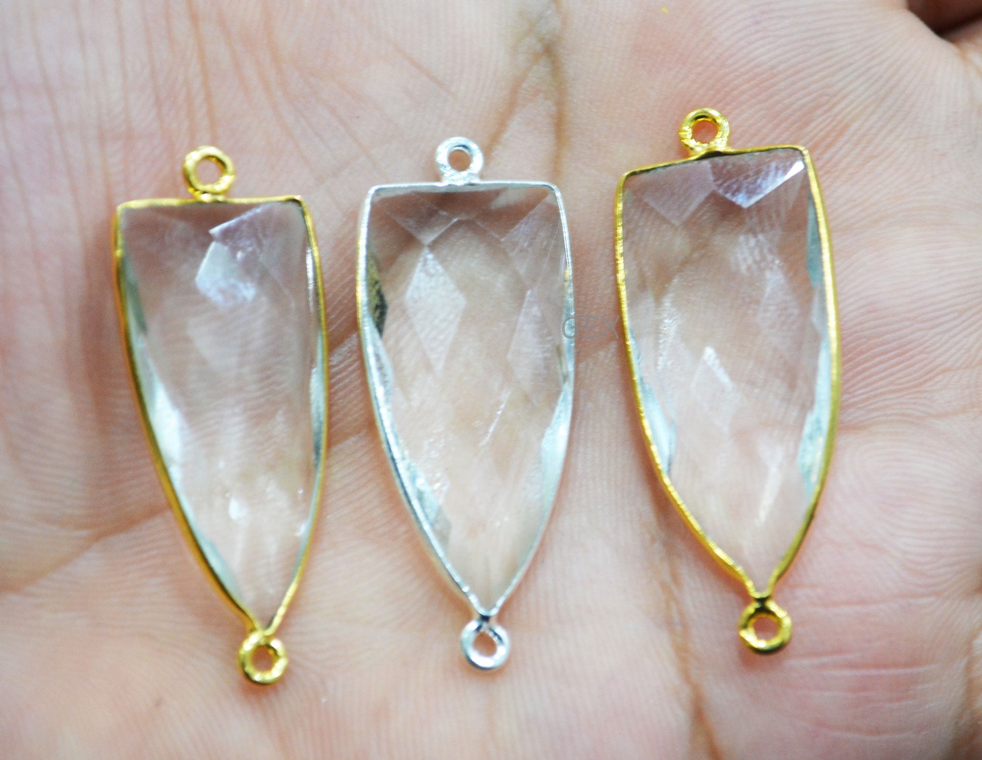 Crystal Hydro Quartz Faceted Arrowhead Shape Connector , Crystal Hydro Quartz Arrowhead Shape Double Bail Bezel Connector , Sold By Piece , 14x28 mm , RB-6743