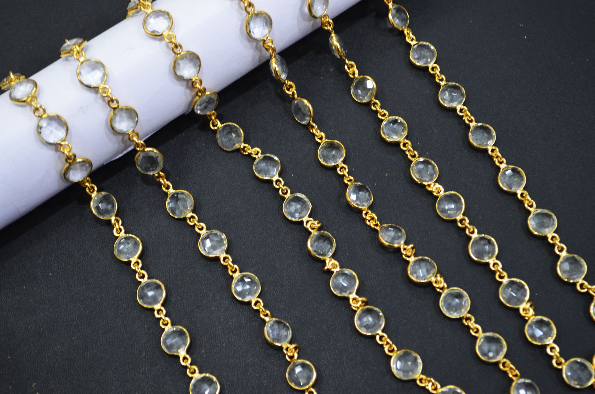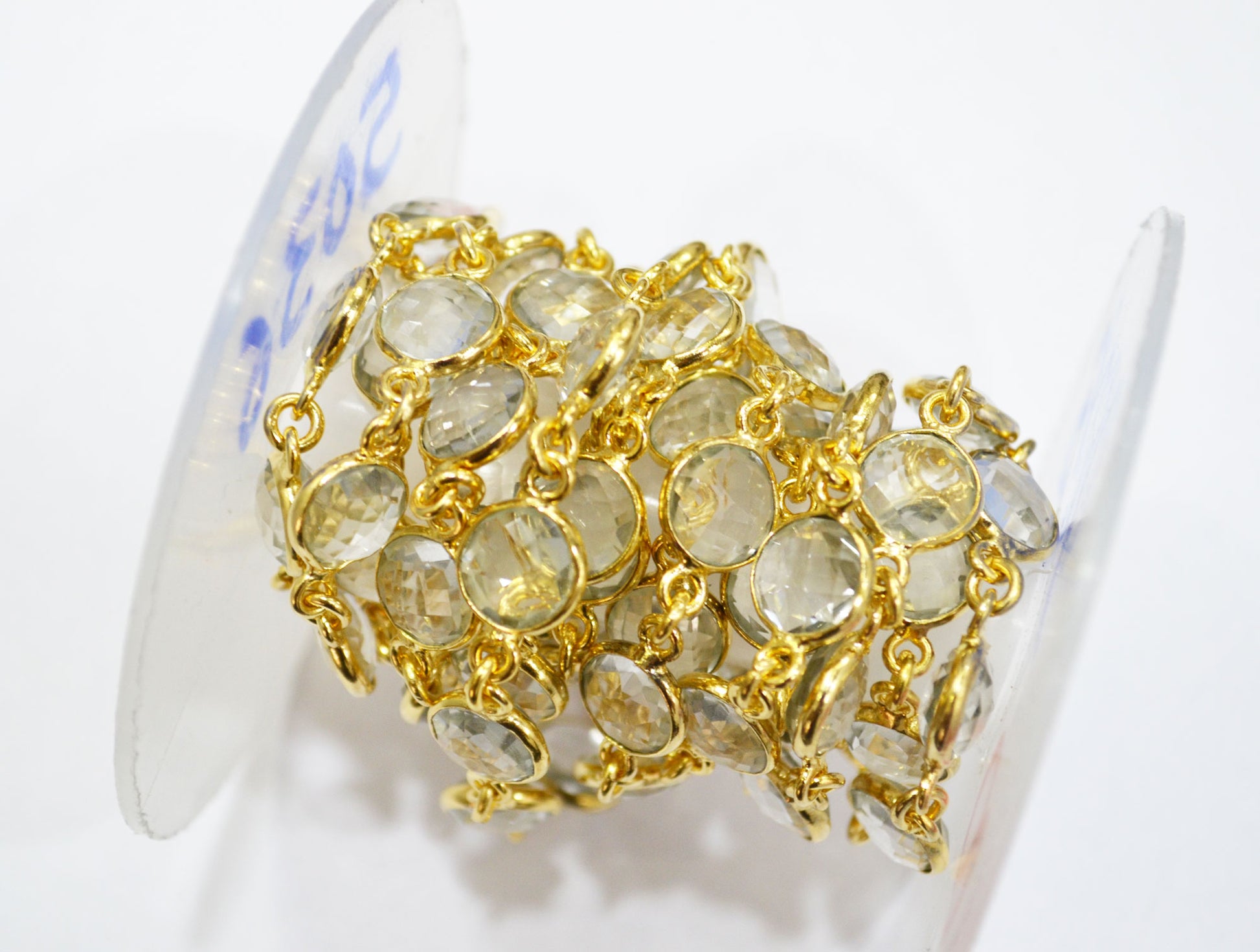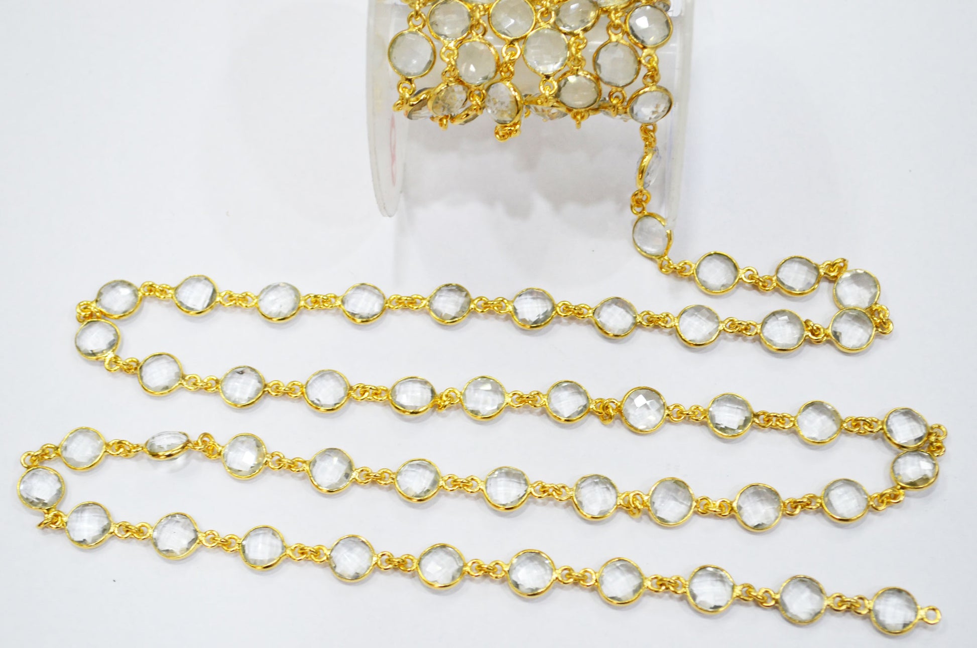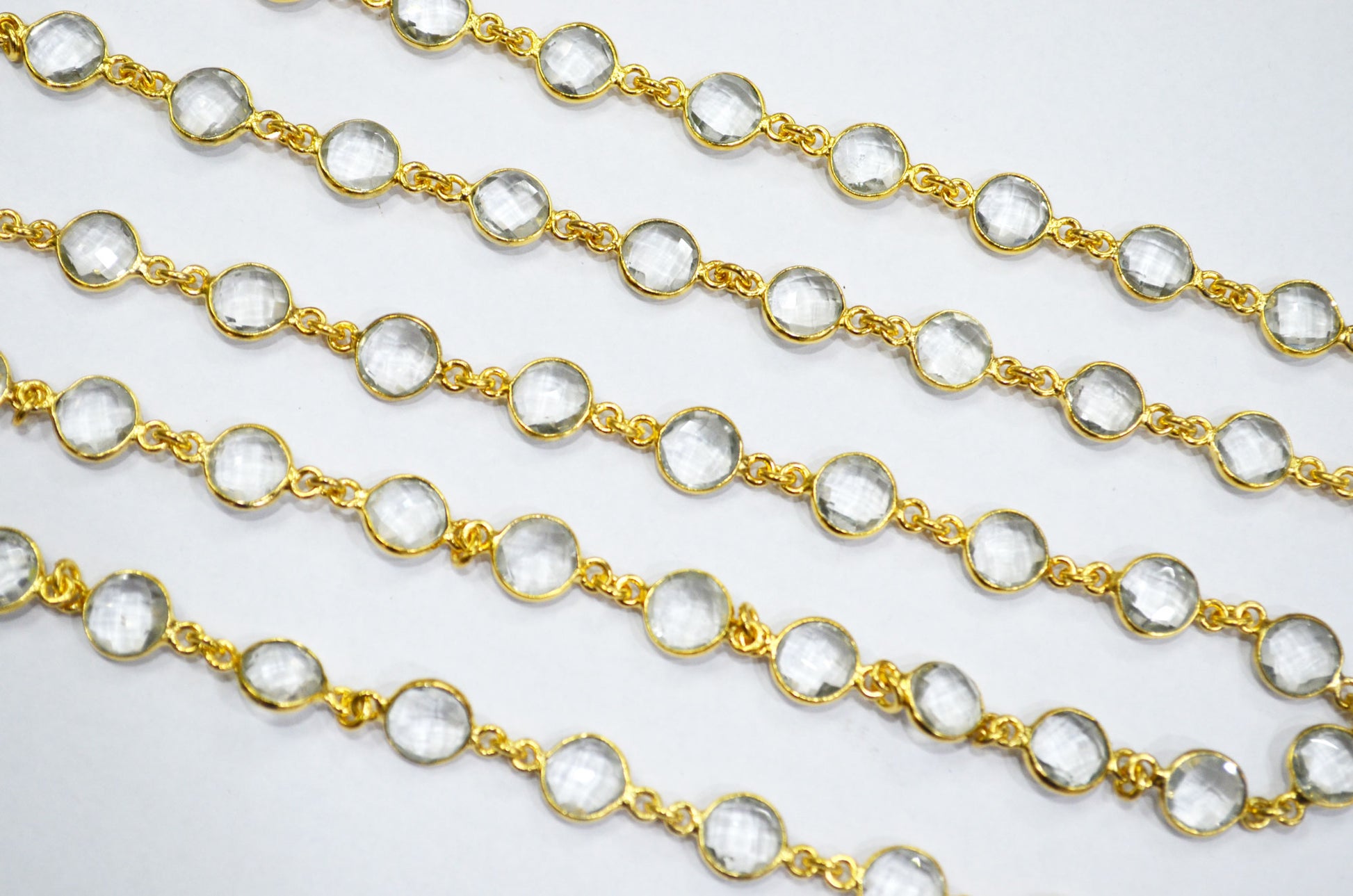 Crystal Faceted Coin Shape Connector Chain , Crystal Coin Shape Bezel Link Chain , 8 mm , RB-6592