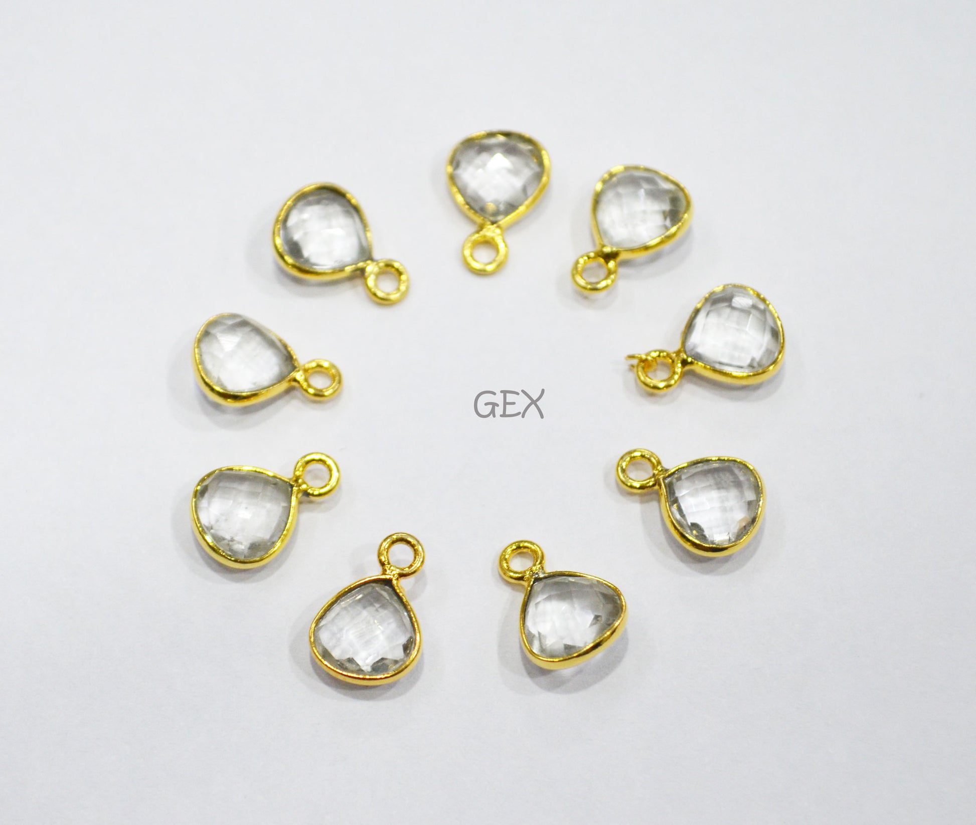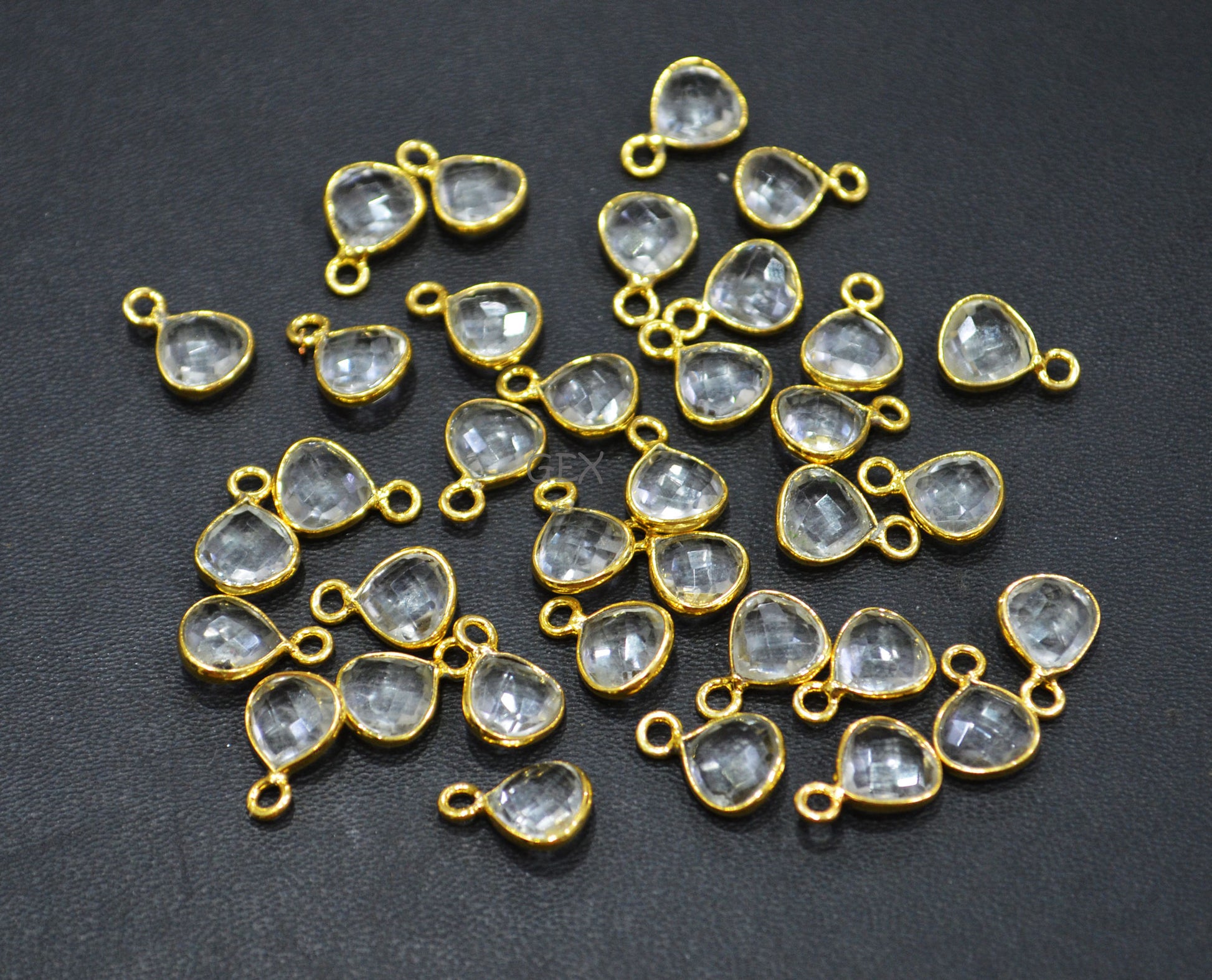 Rock Crystal Faceted Heart Shape Connector , Rock Crystal Heart Shape Single Bail Bezel Connector , Sold By Piece , 8 mm , RB-7232