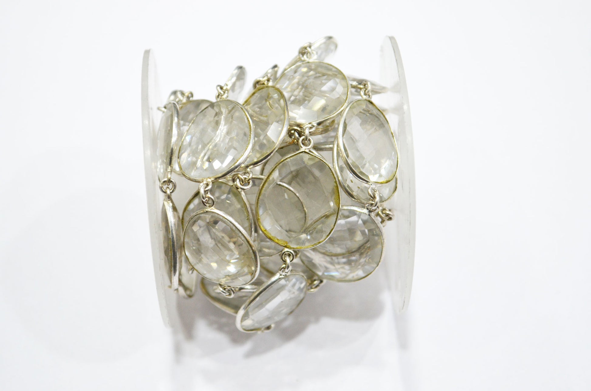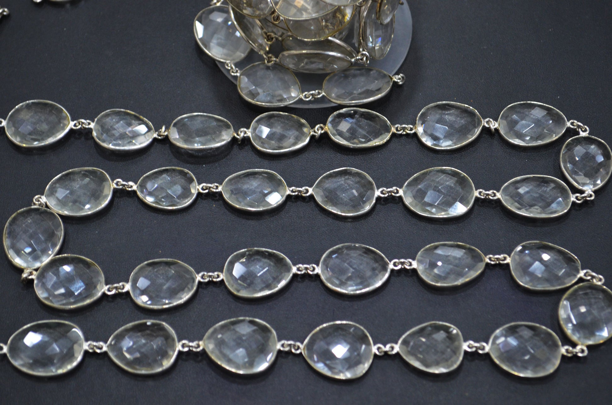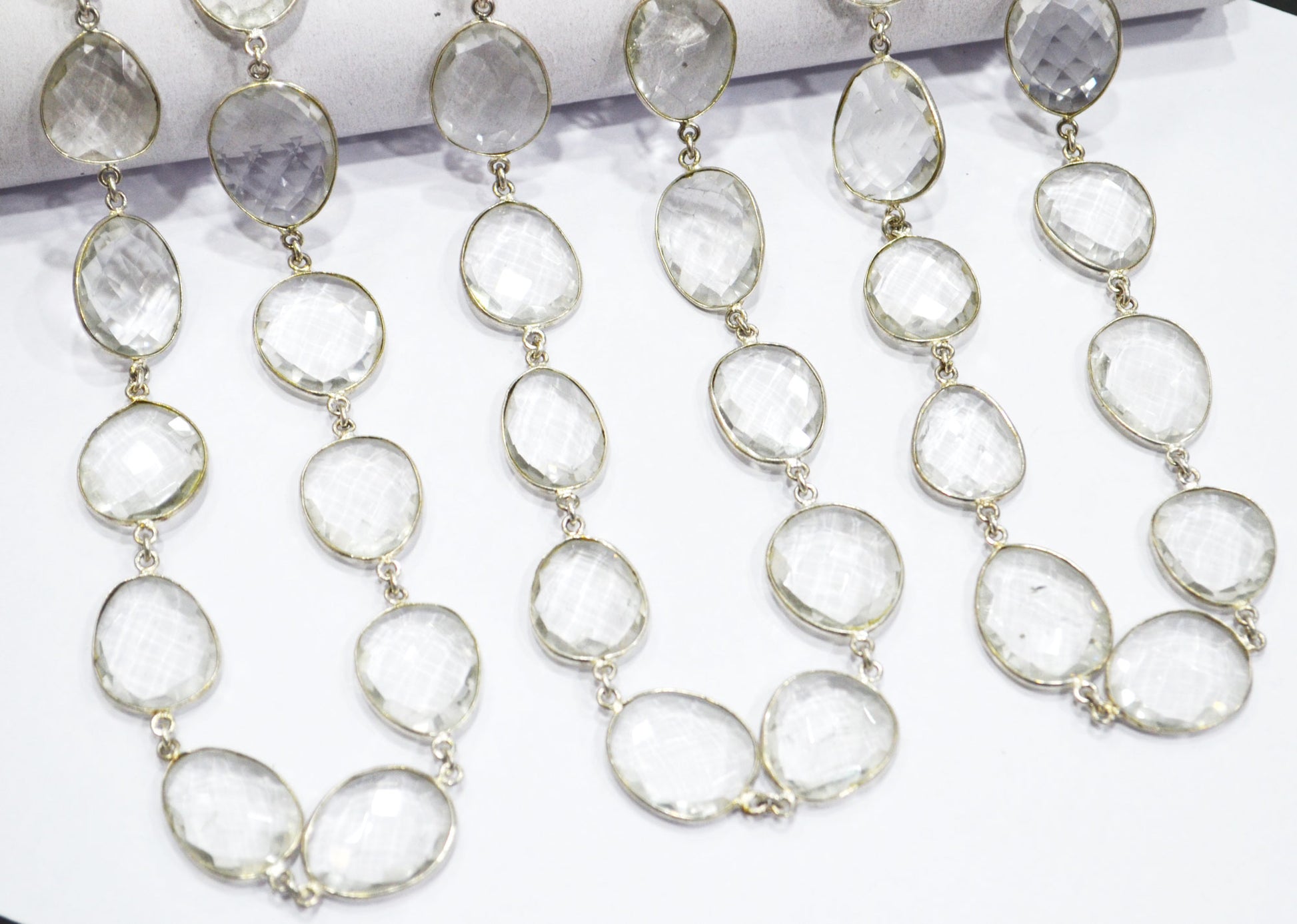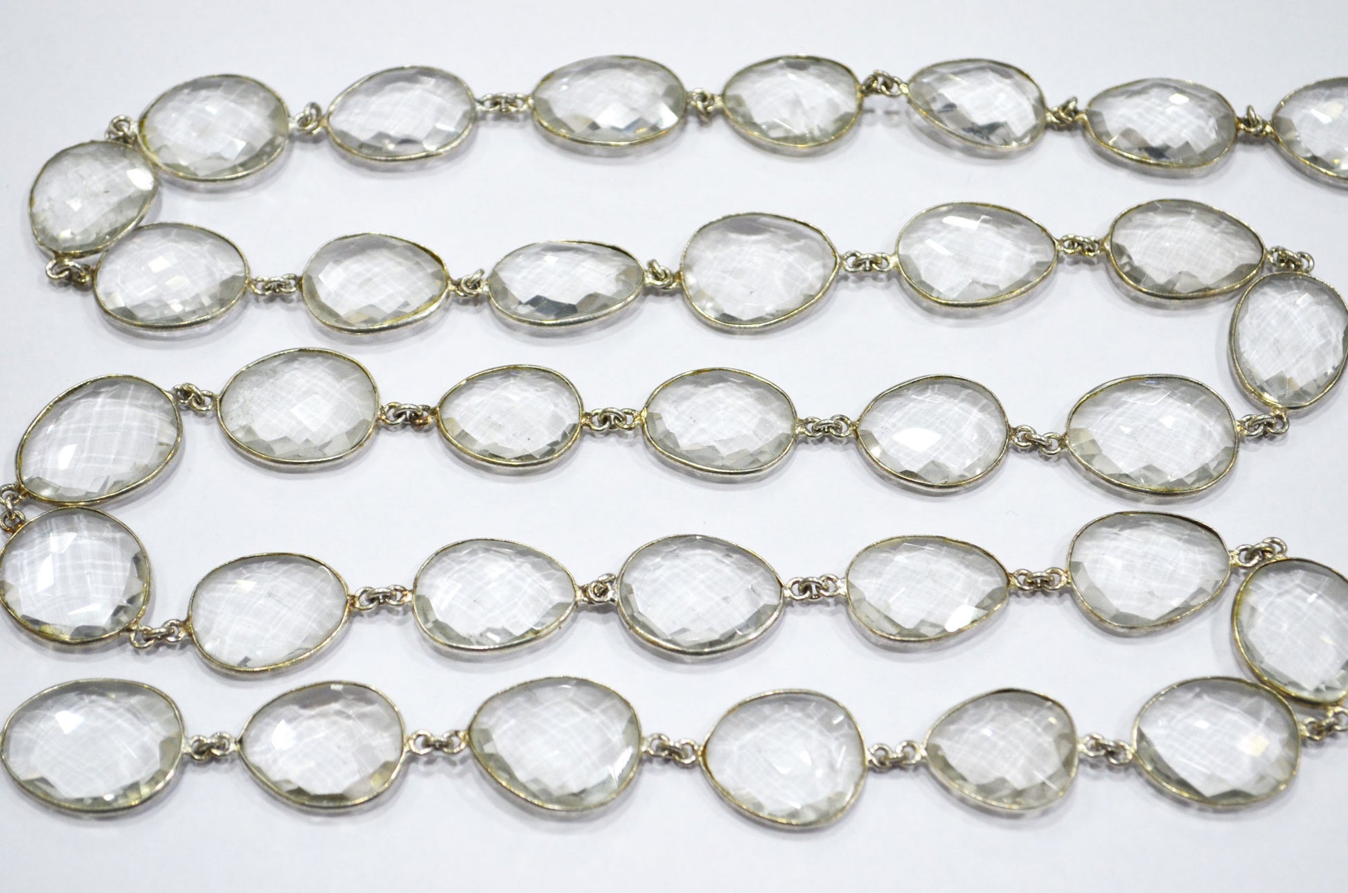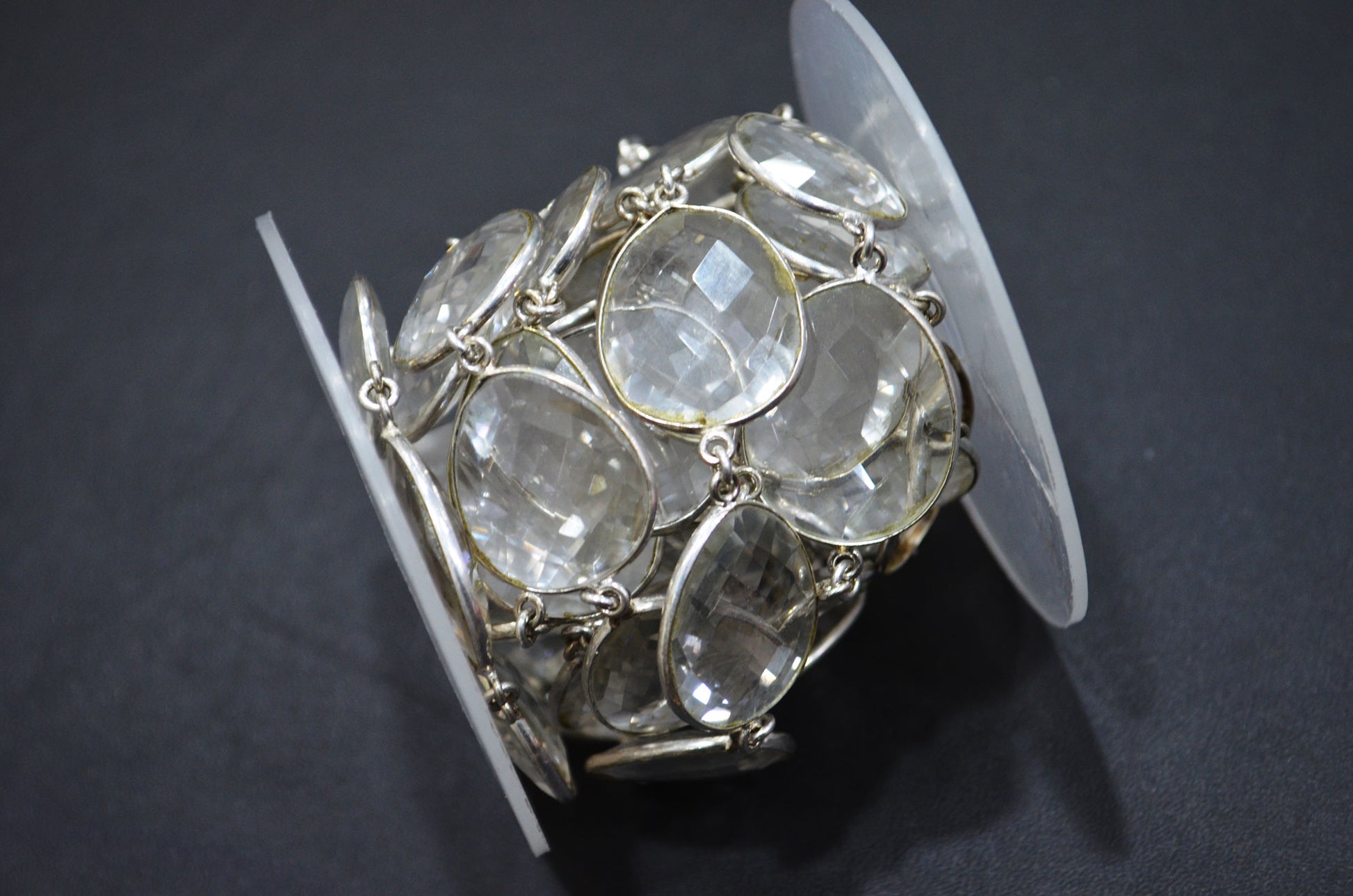 Rock Crystal Faceted Slice Shape Connector Chain , Rock Crystal Free Form Shape Bezel Link Chain , 18 - 22 mm , RB-6095