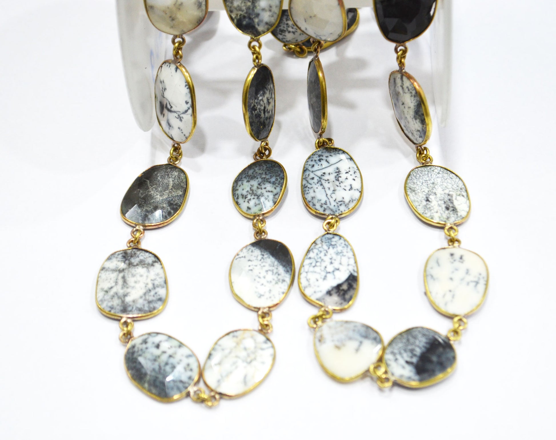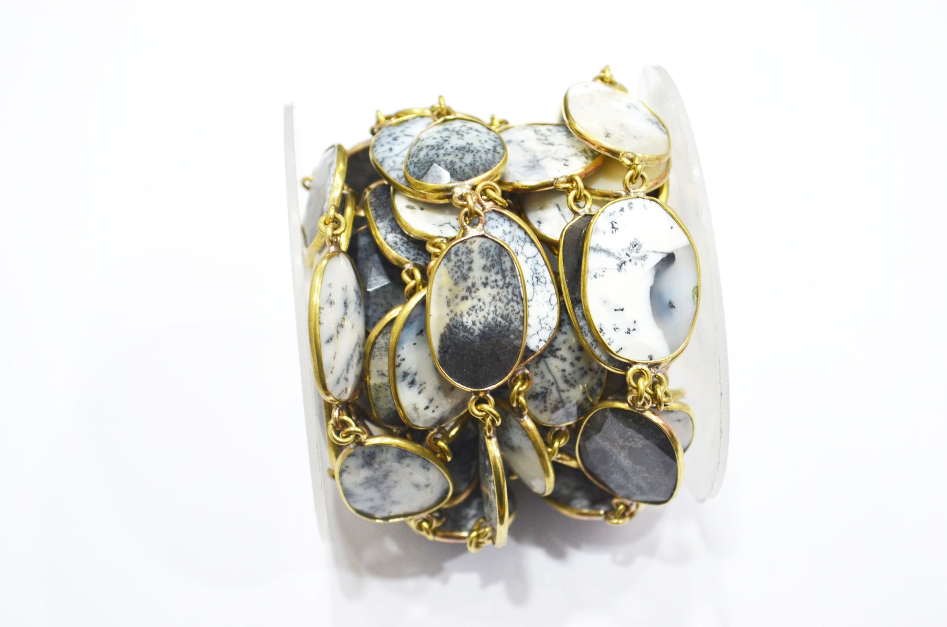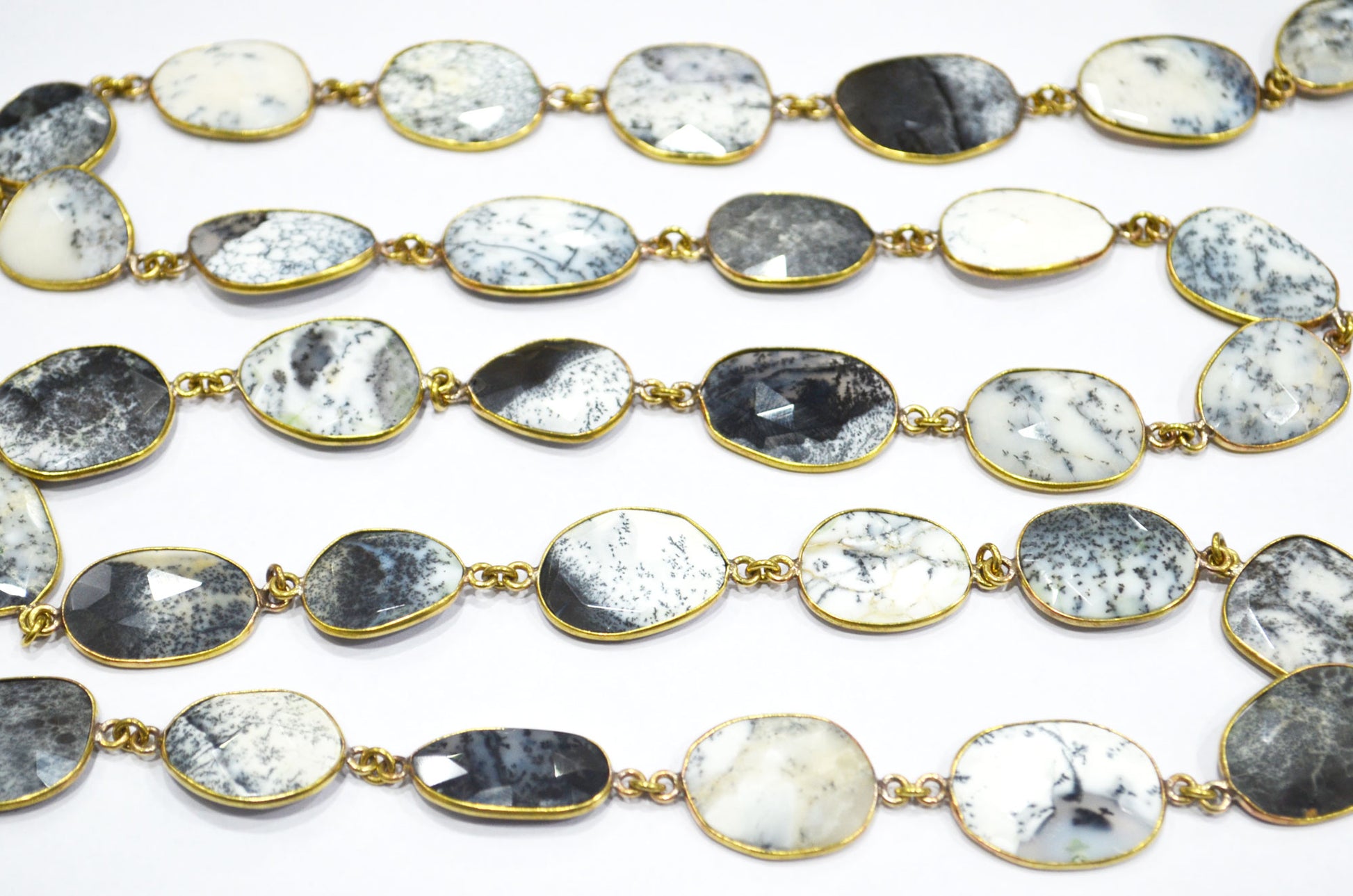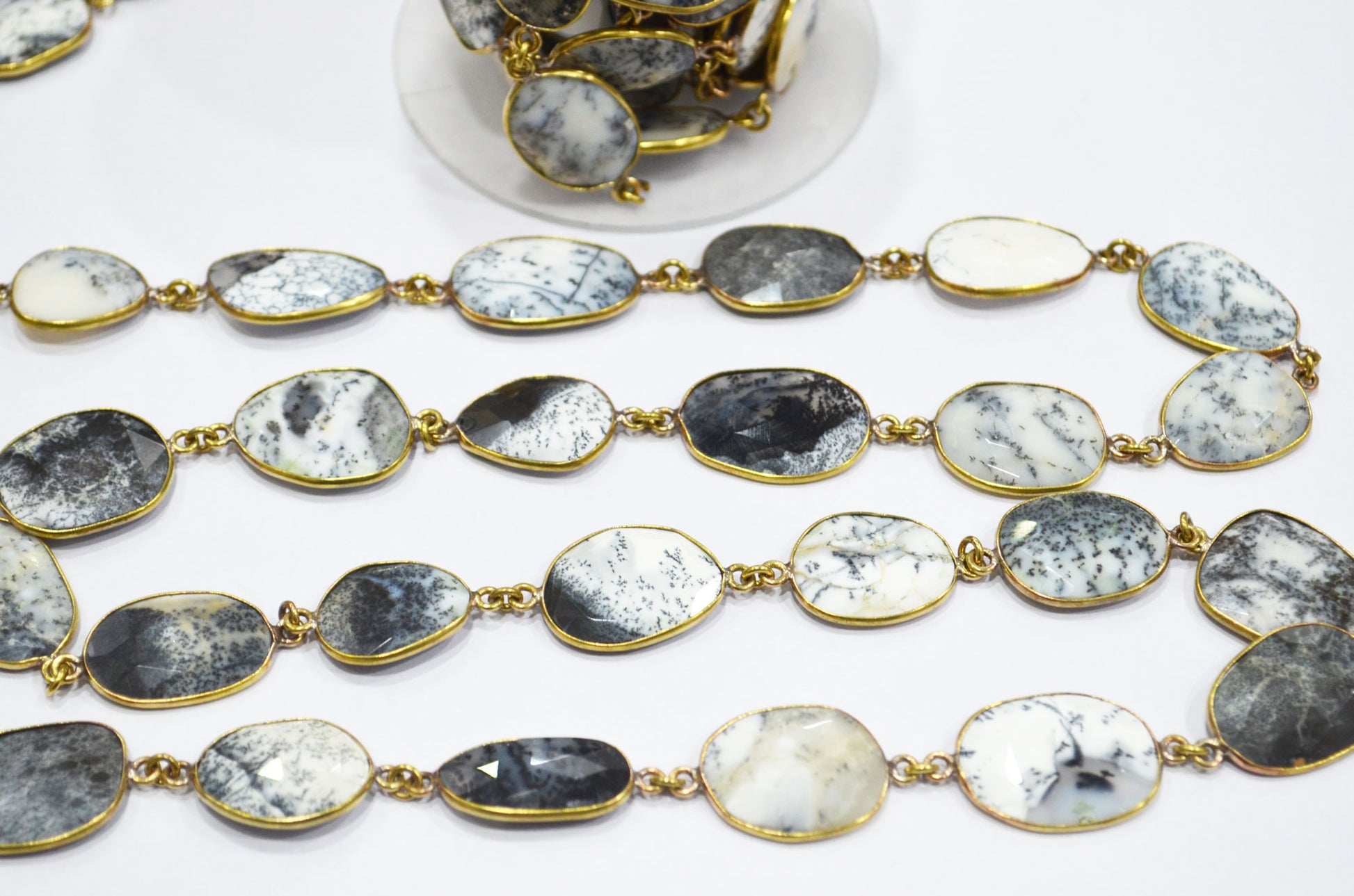 Dendrite Opal Slice Shape Connector Chain , Dendrite Opal Faceted Free Form Shape Bezel Link Chain , 18 - 25 mm , RB-6397
