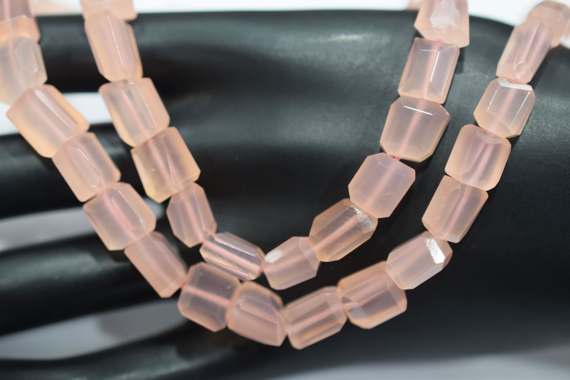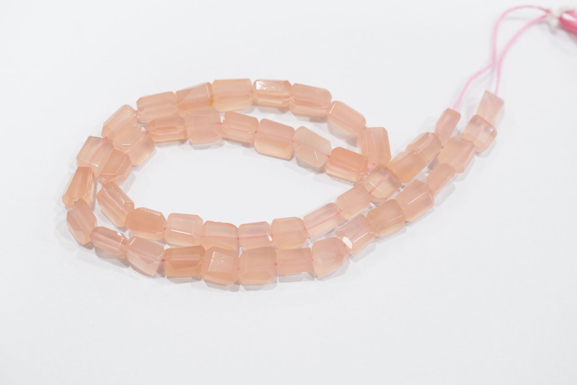 Rose Pink Chalcedony Step Cut Laser Nuggets Shape Beads , Rose Pink Chalcedony Laser Beads , Sold By Strand , 7x8 - 7.50x11 mm , 16", 32130