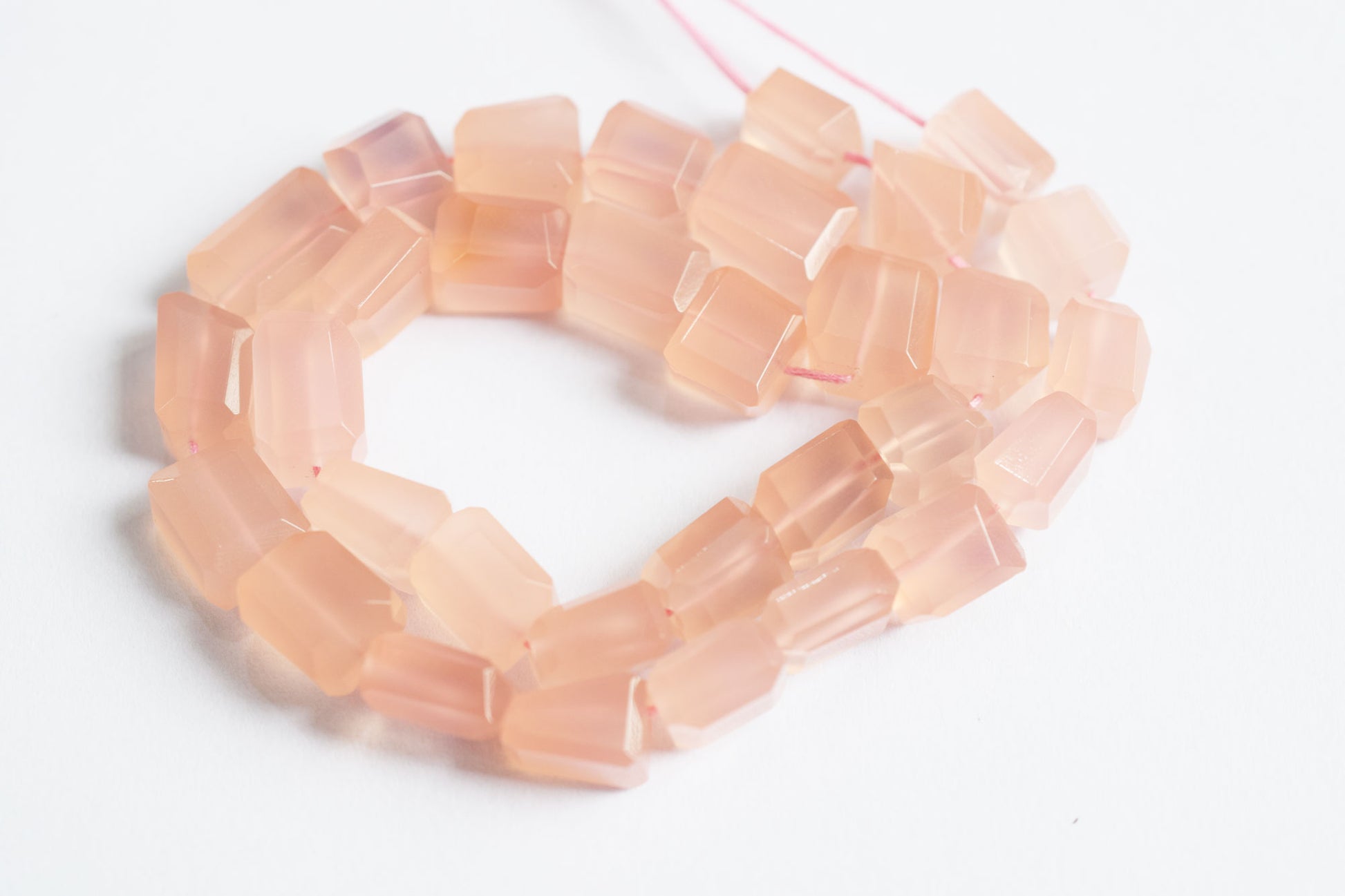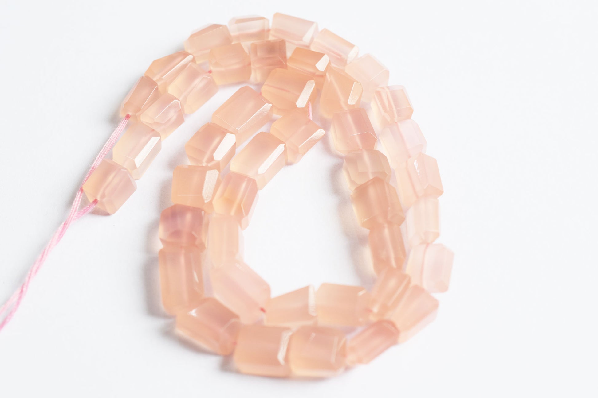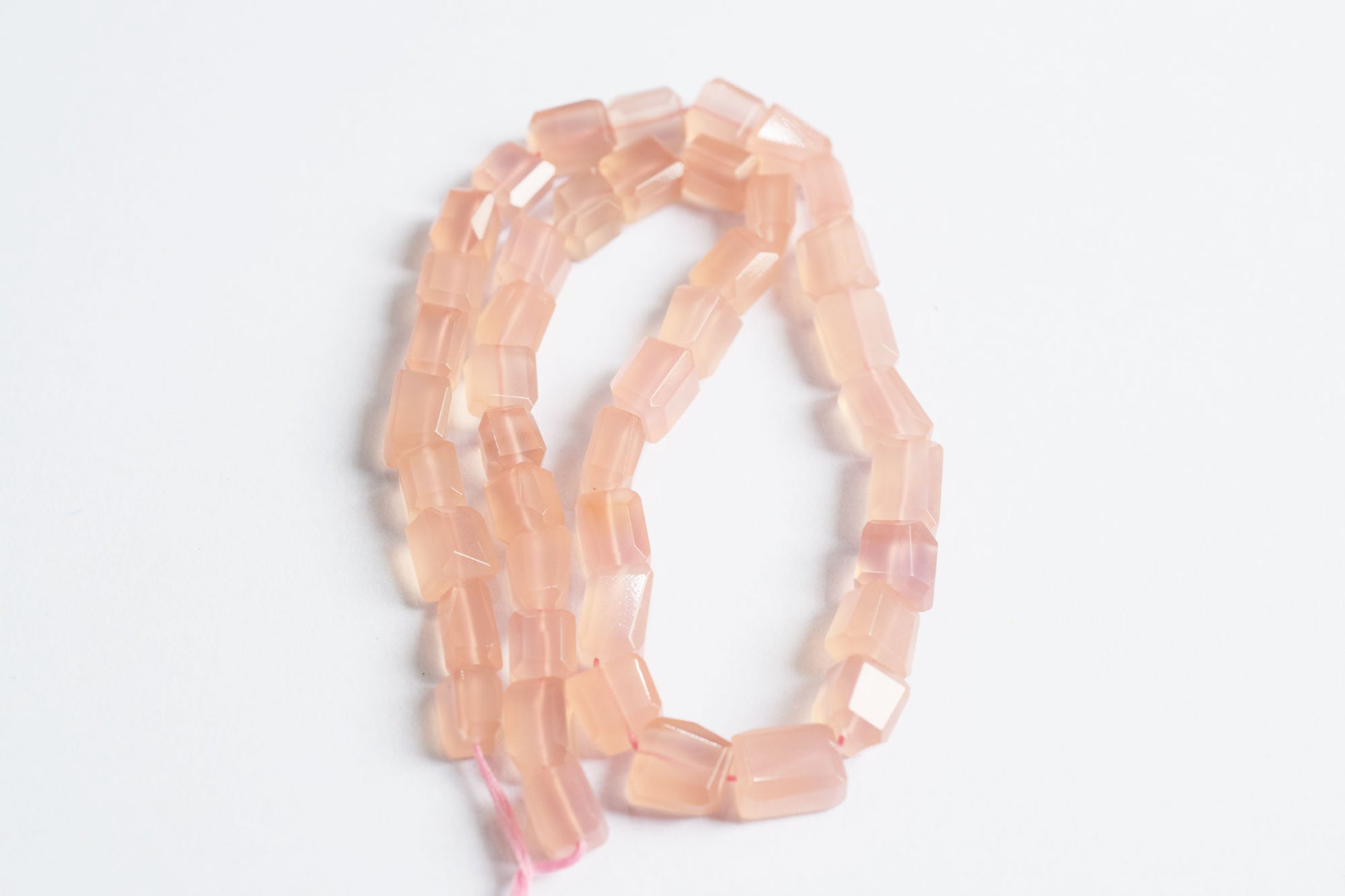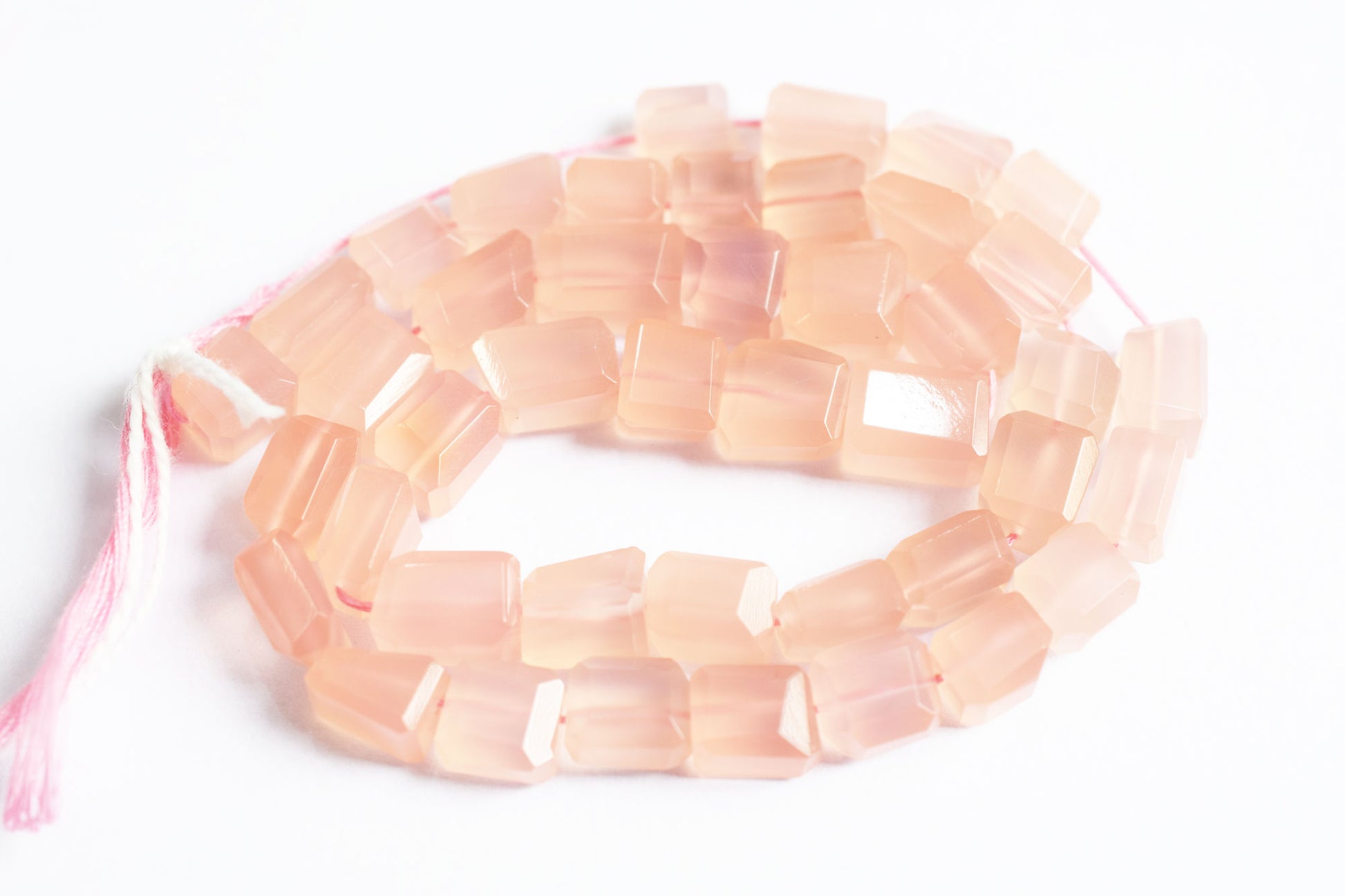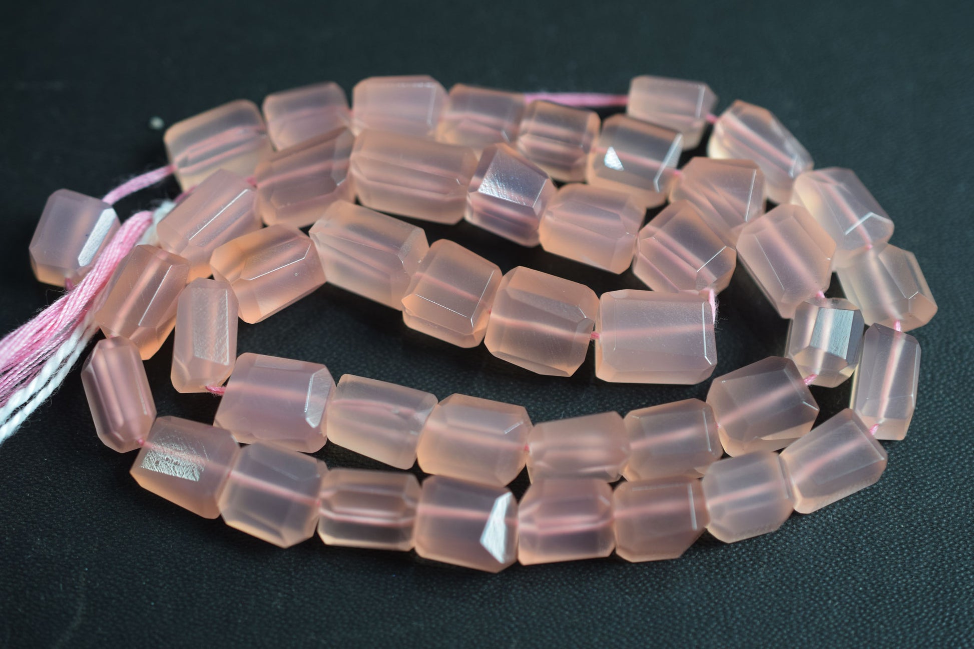 Rose Pink Chalcedony Step Cut Laser Nuggets Shape Beads , Rose Pink Chalcedony Laser Beads , Sold By Strand , 8x9 - 8.50x11.50 mm, 16", 32125