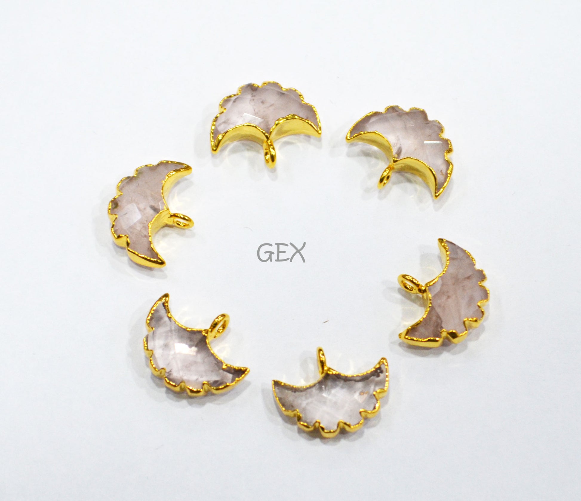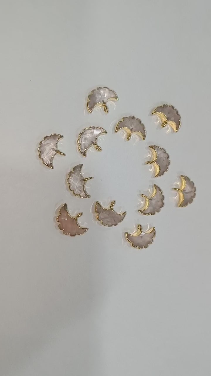 Rose Quartz Electroplated Half Moon Shape Connector , Rose Quartz Single Bail Faceted Connector Charm , Sold By Piece , 15 - 16 mm , 31923