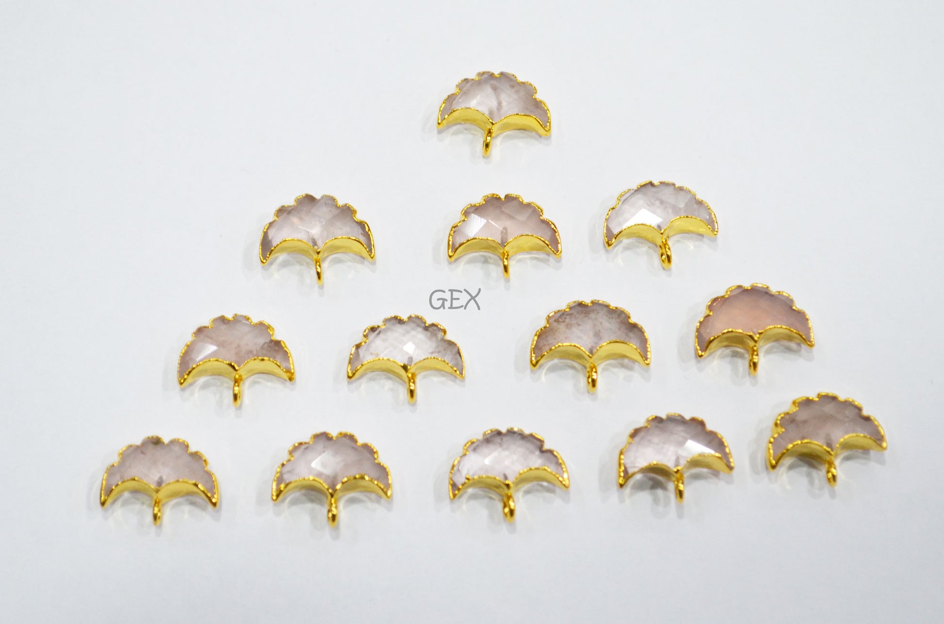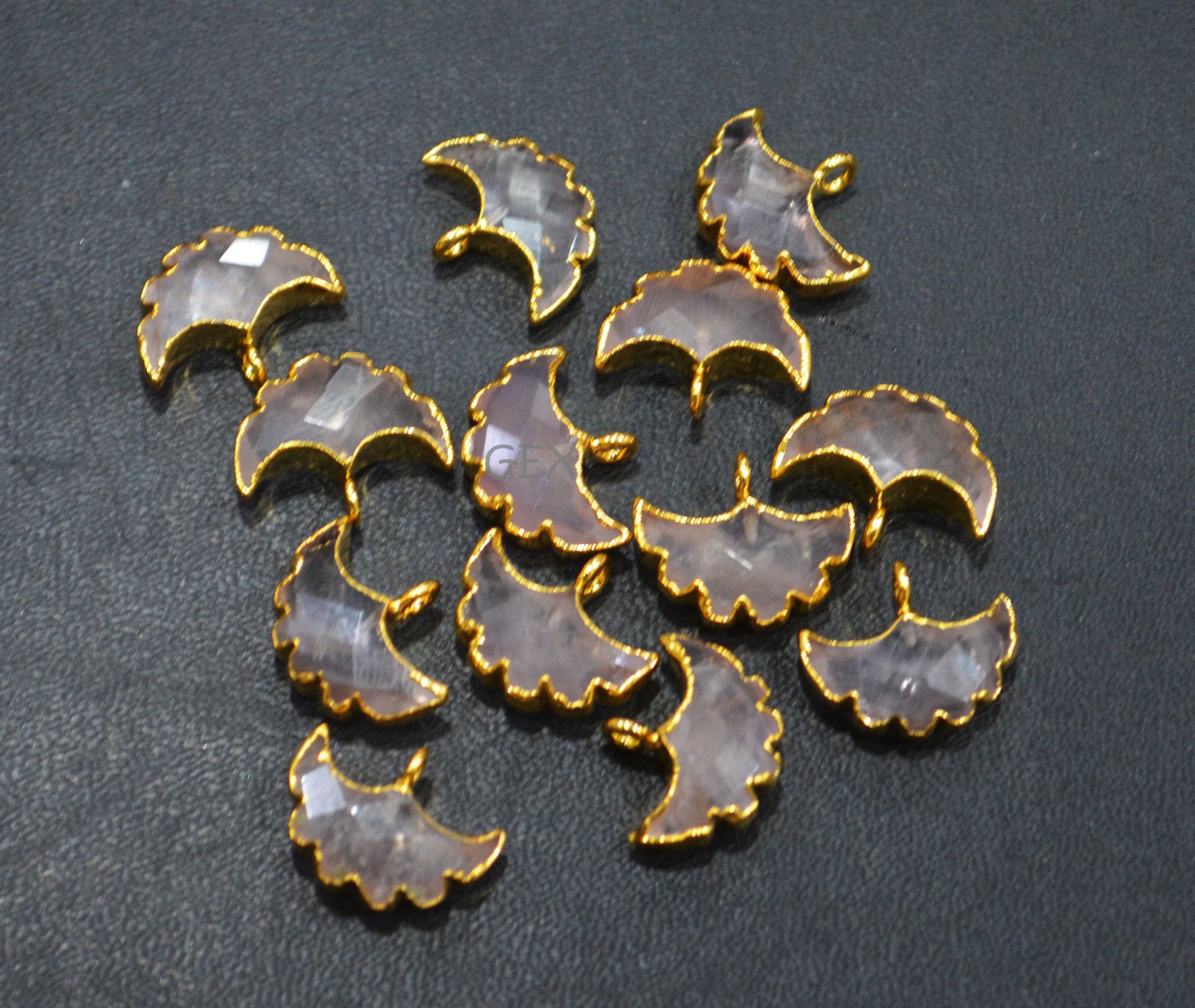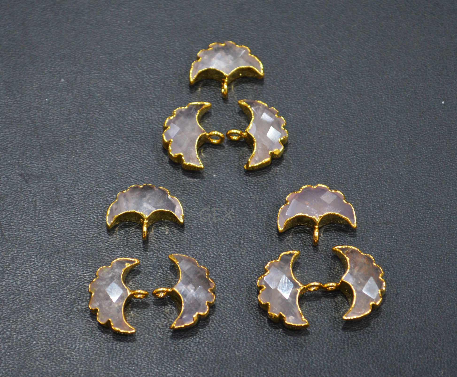Rose Quartz Electroplated Half Moon Shape Connector , Rose Quartz Single Bail Faceted Connector Charm Β , Sold By Piece , 15 - 16 mm , 31923