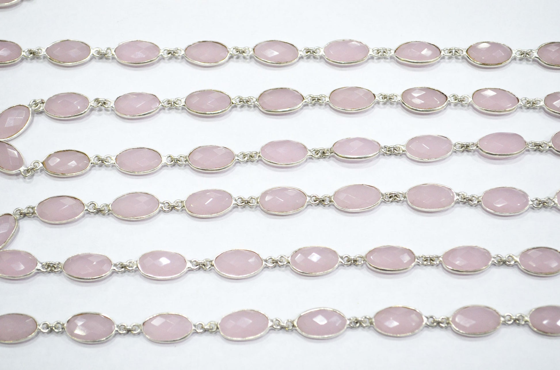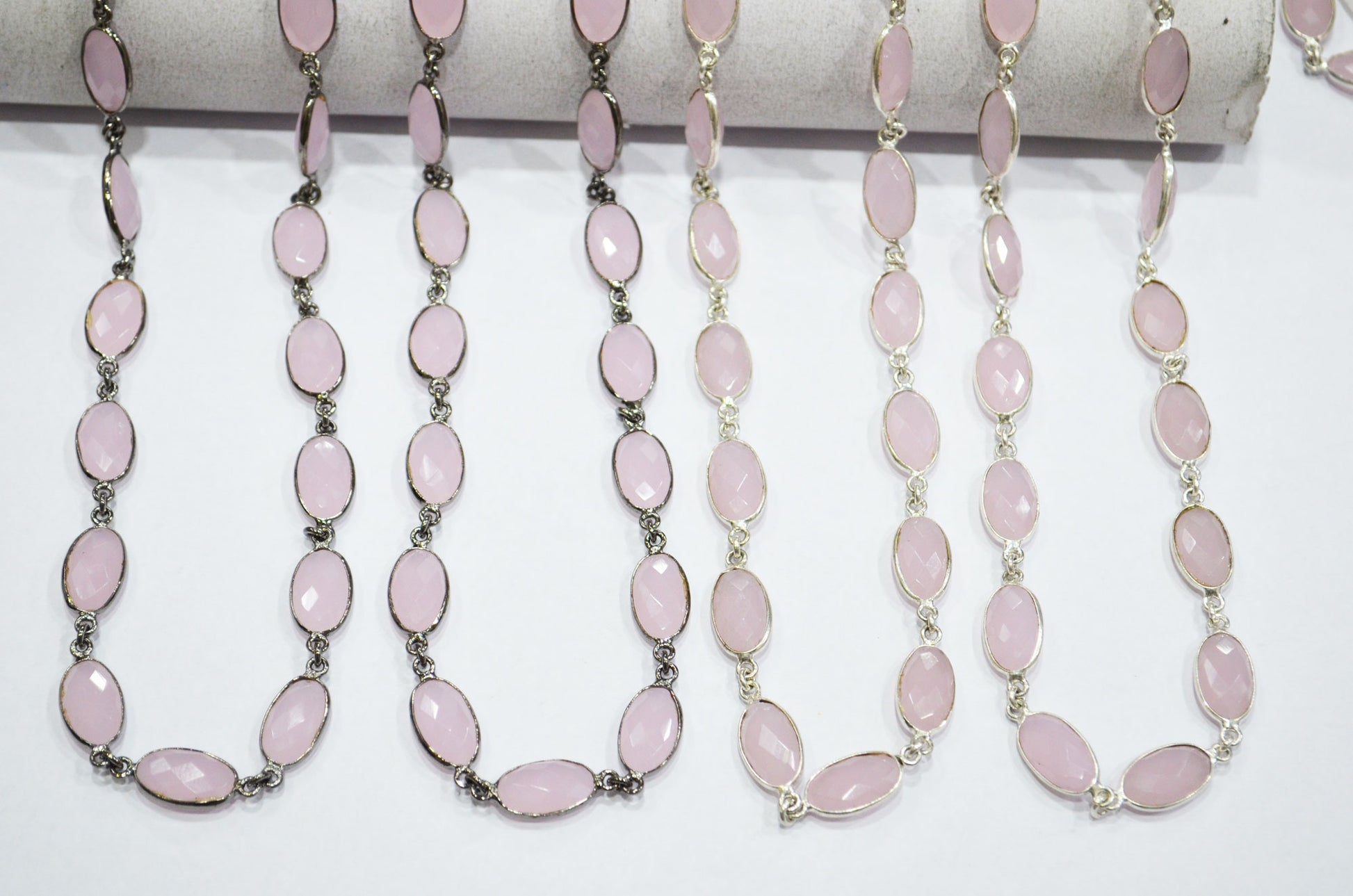 Rose Quartz Hydro Quartz Faceted Oval Shape Connector Chain , Rose Quartz Hydro Quartz Bezel Link Chain , 9x13 mm , RB-5701