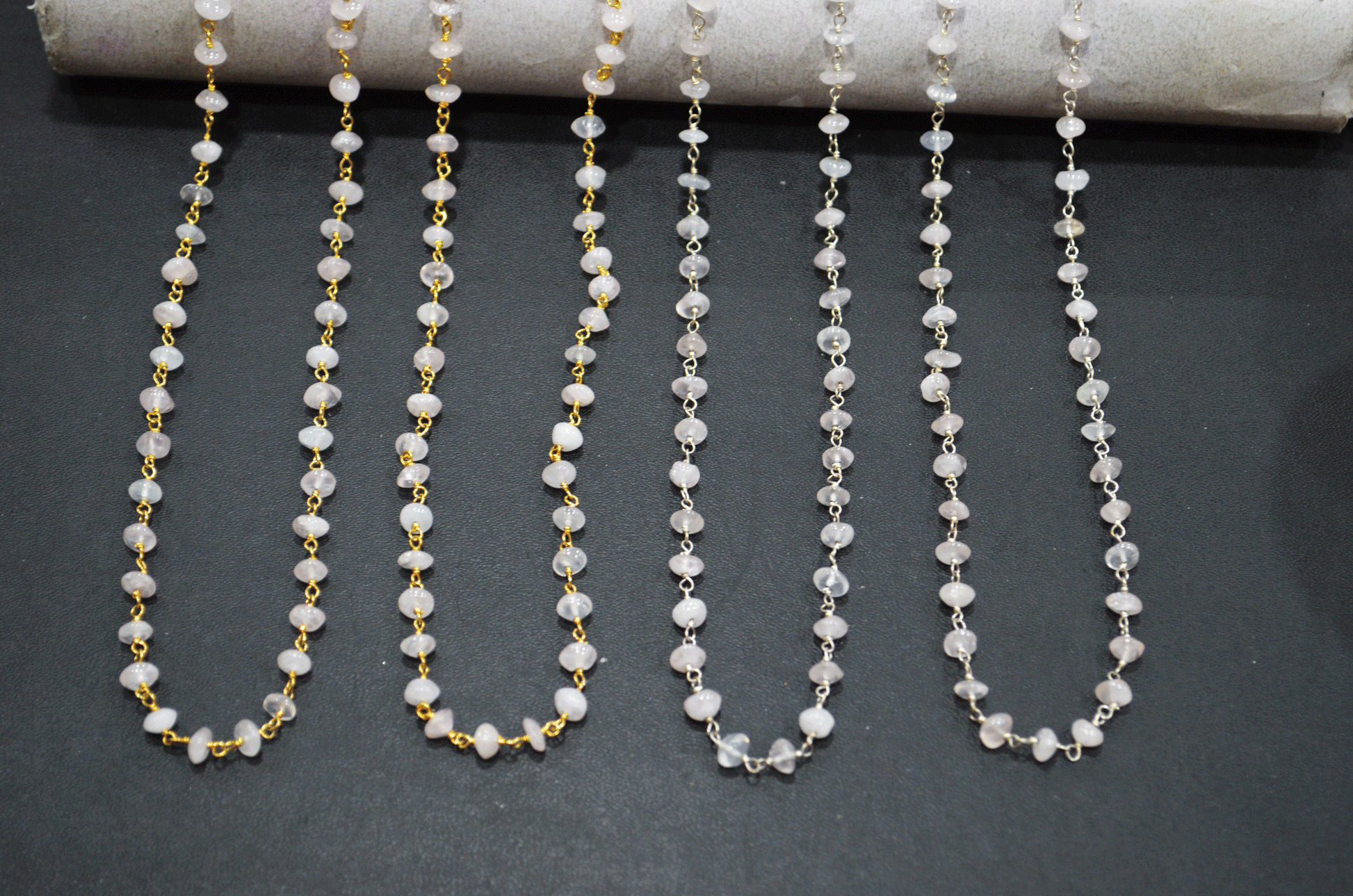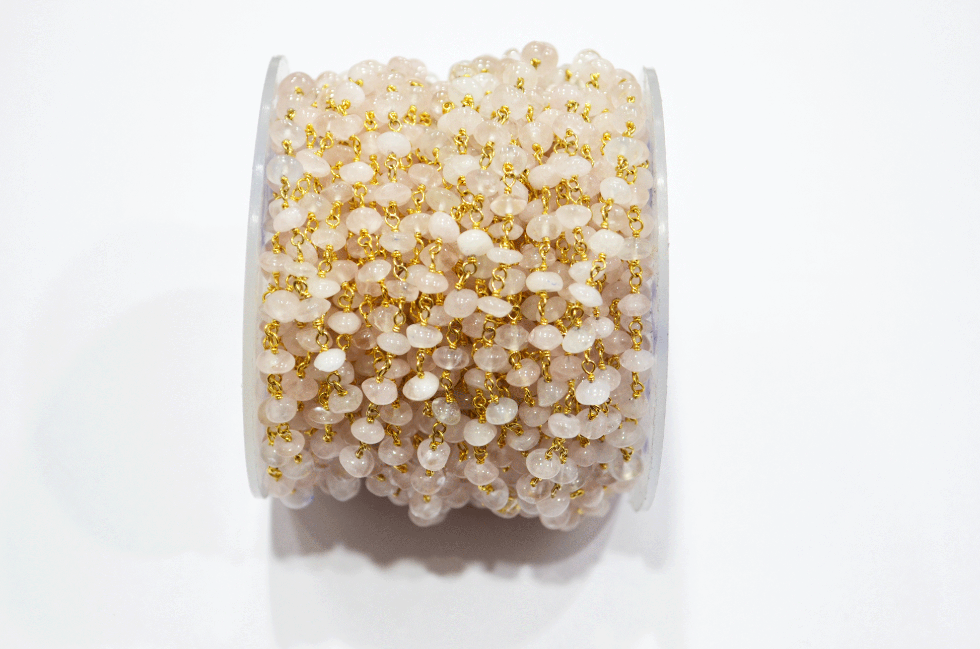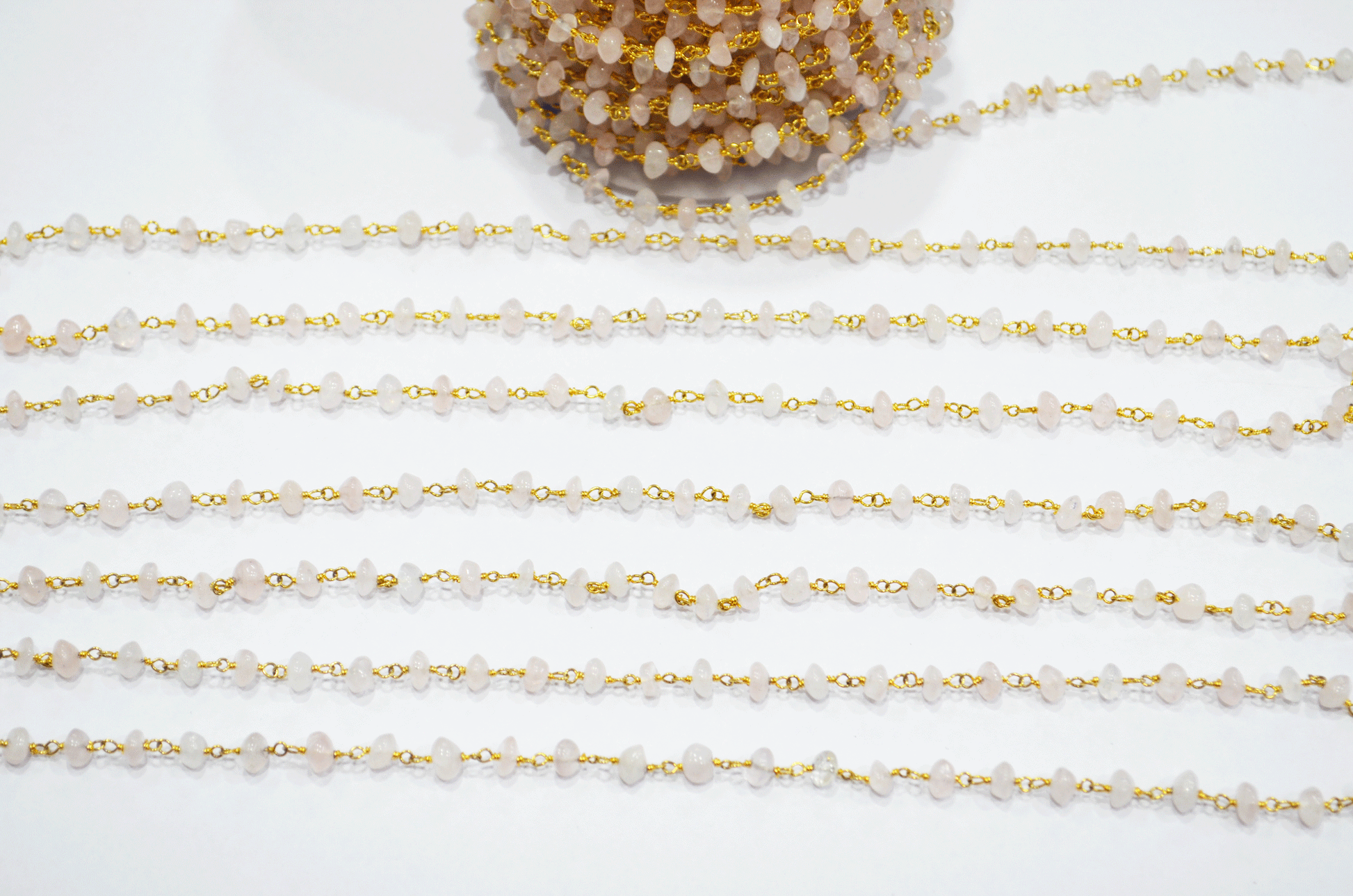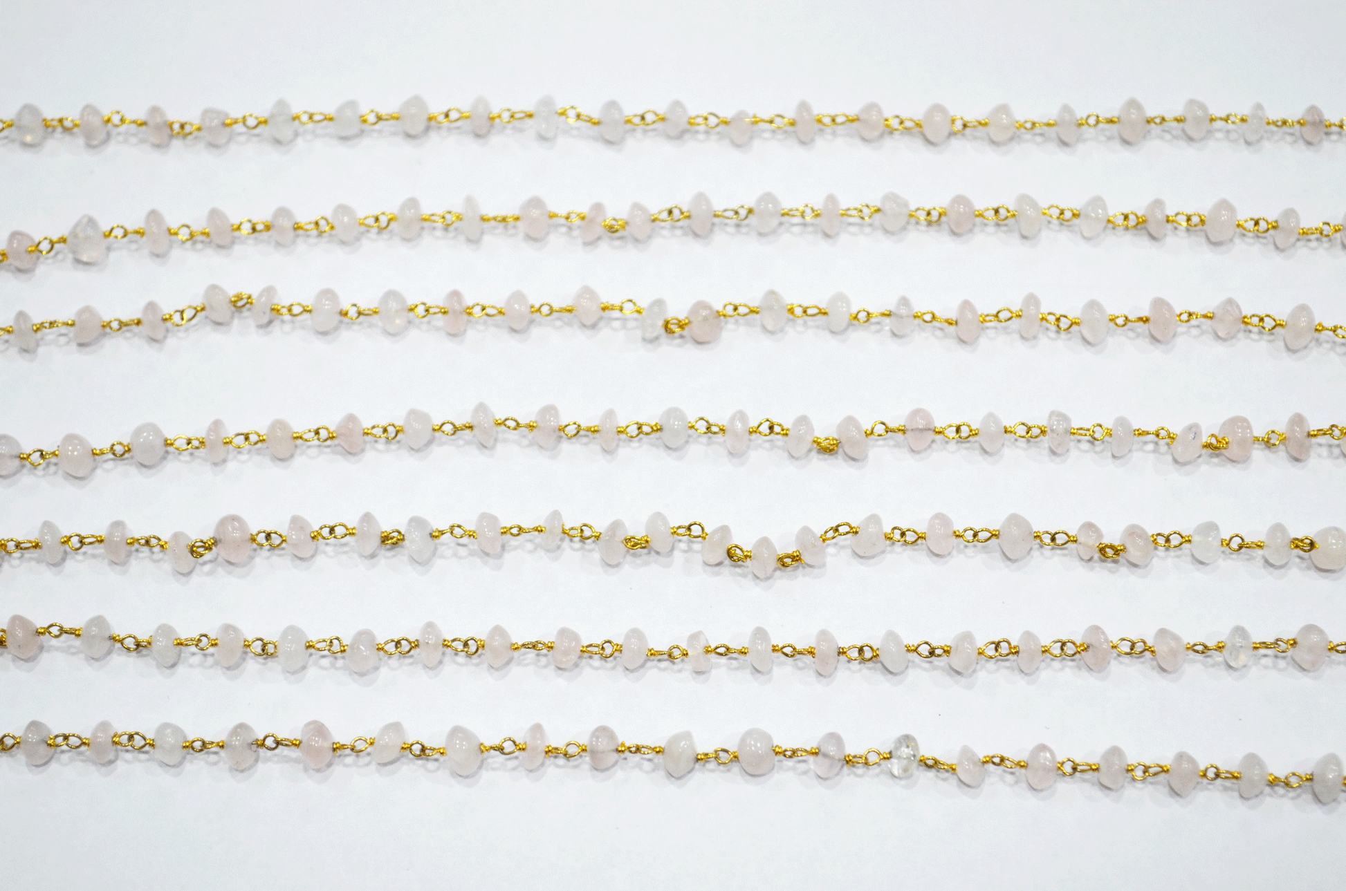 Rose Quartz Smooth Button Shape Rosary Beaded Chain , Rose Quartz Wire Wrapped Chain , 4.50 - 5 mm , RB-5109