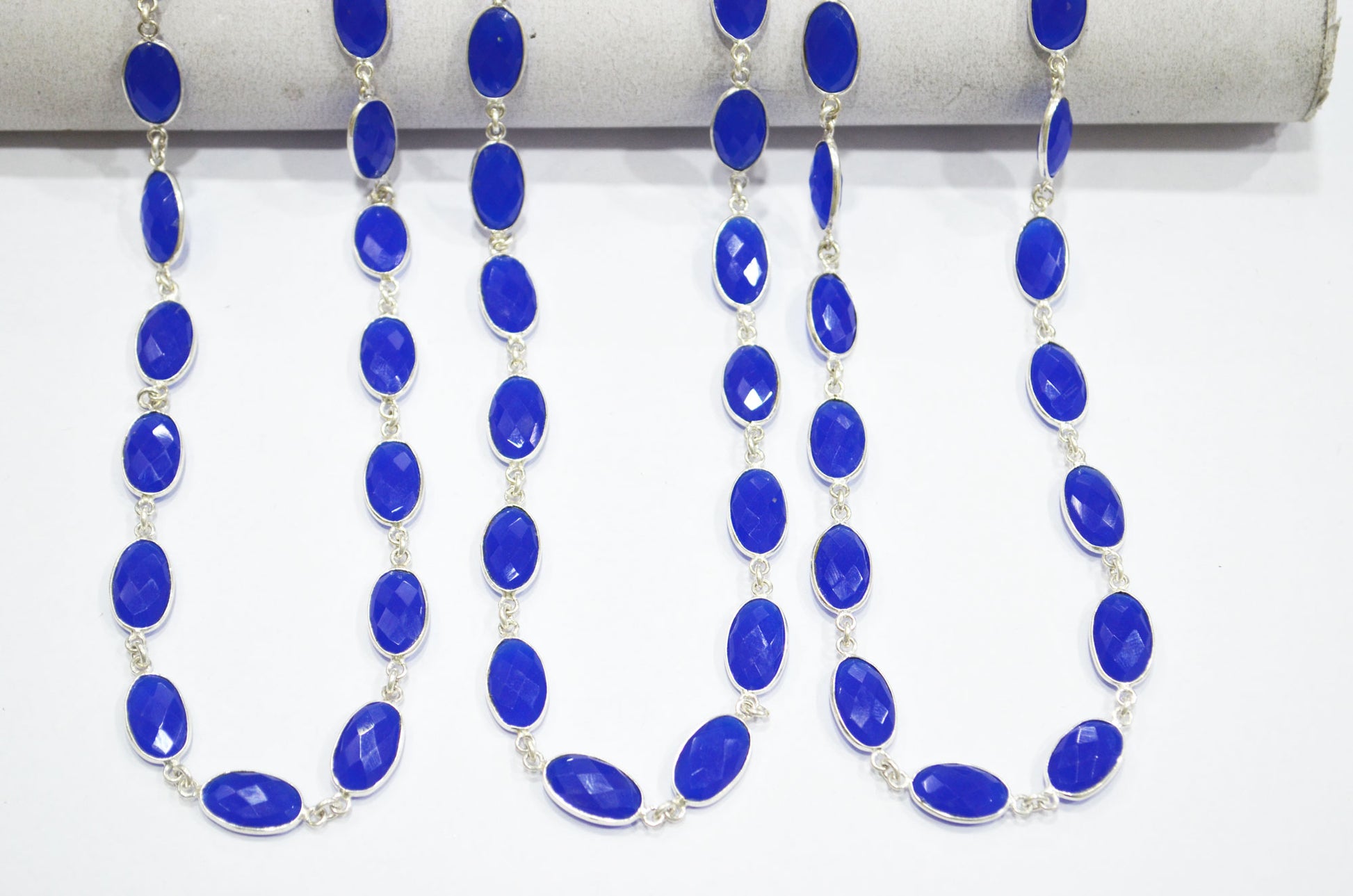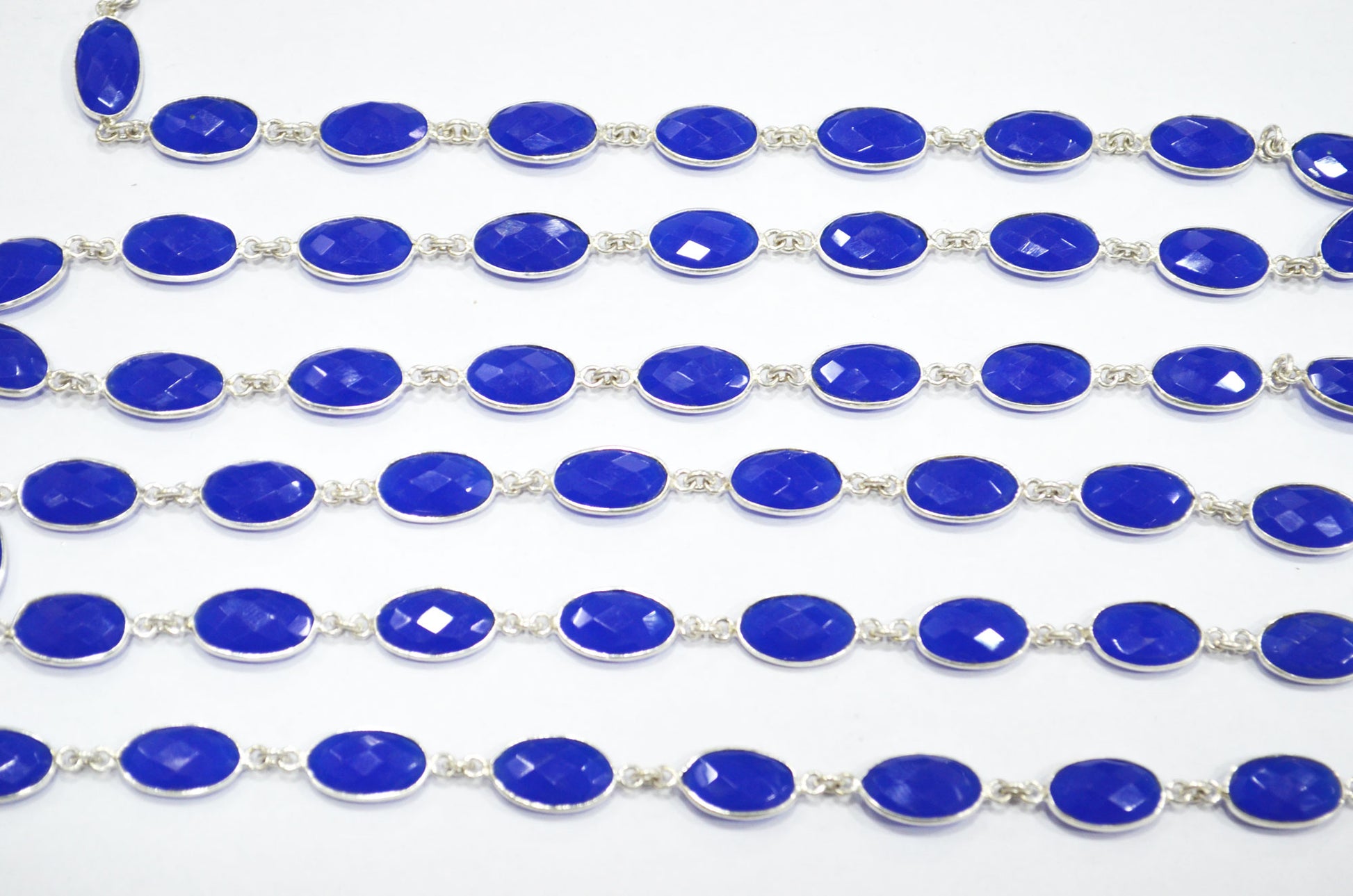 Royal Blue Hydro Quartz Faceted Oval Shape Connector Chain , Royal Blue Hydro Quartz Bezel Link Chain , 9x13 mm , RB-5712