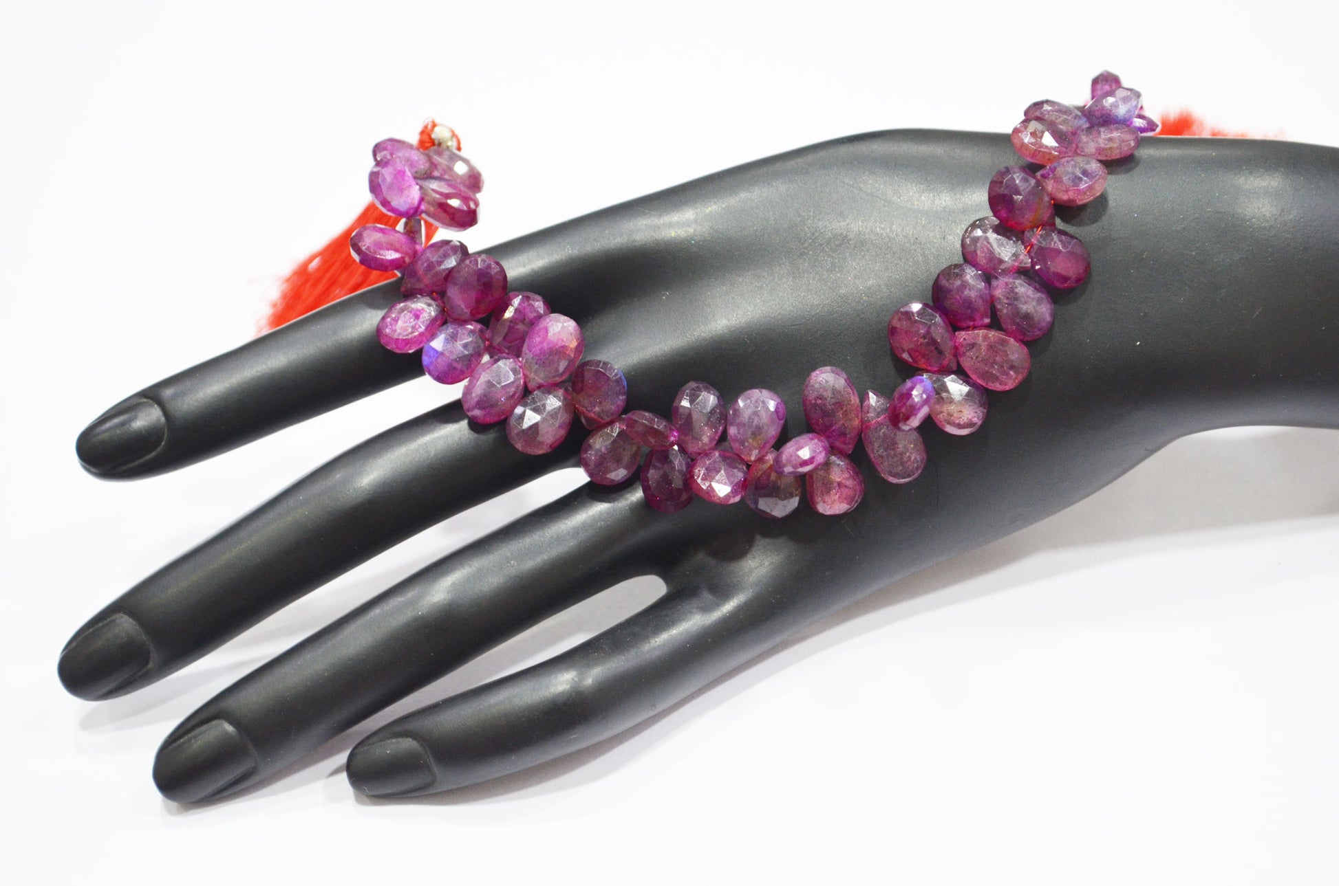 Ruby Color Coated Labradorite Pear Shape Beads , Ruby Color Coated Labradorite Faceted Briolettes , 7 Inches , 7.50x9 - 7.50x10 mm , 32261