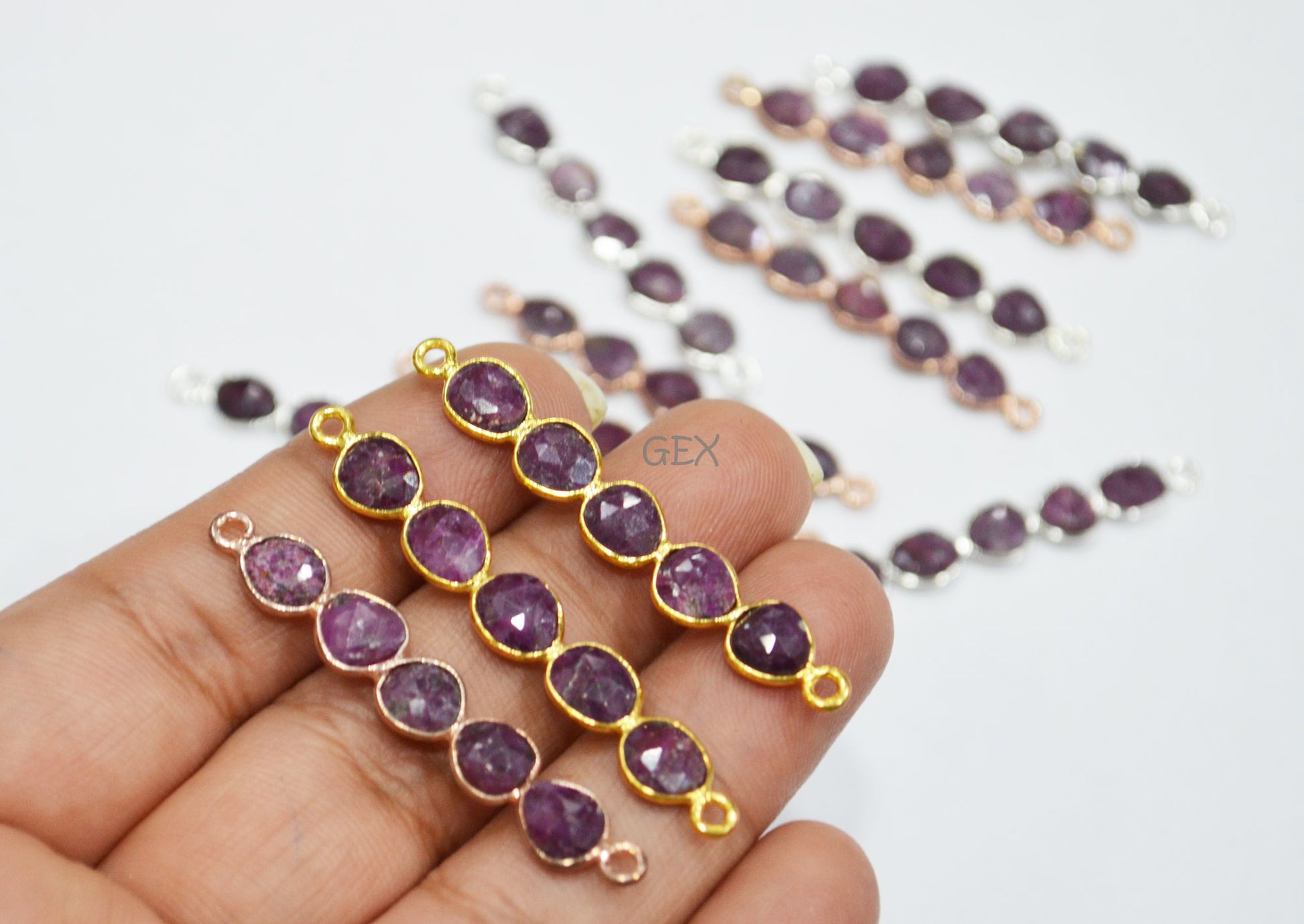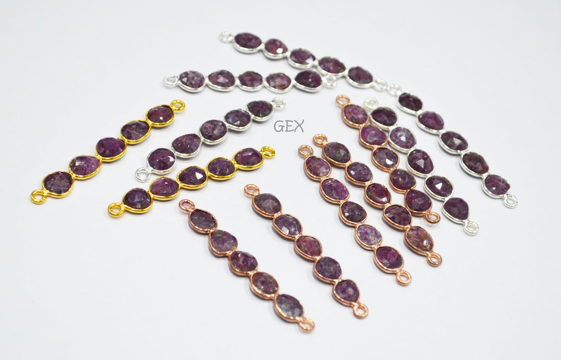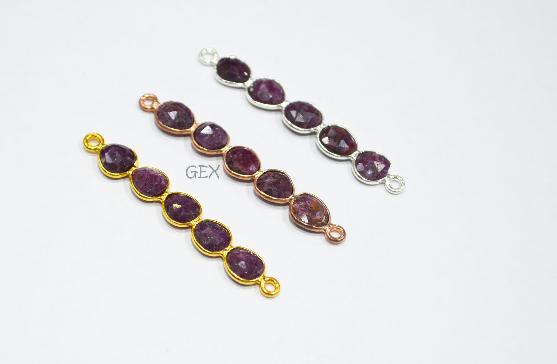 Ruby Faceted Bar Connector , Ruby Double Bail Bezel Charm Connector , Sold By Piece , 45 - 50 mm , R-018