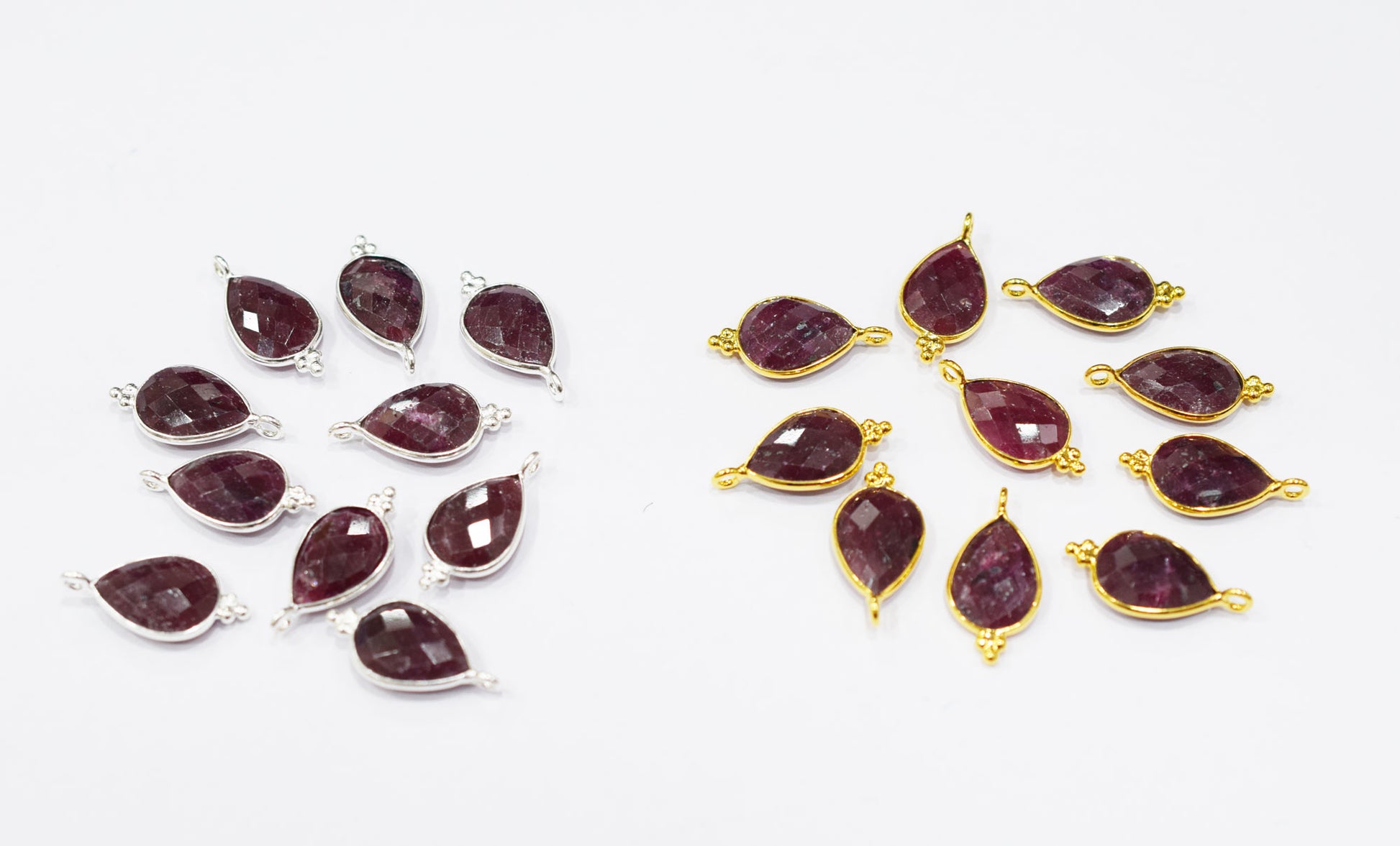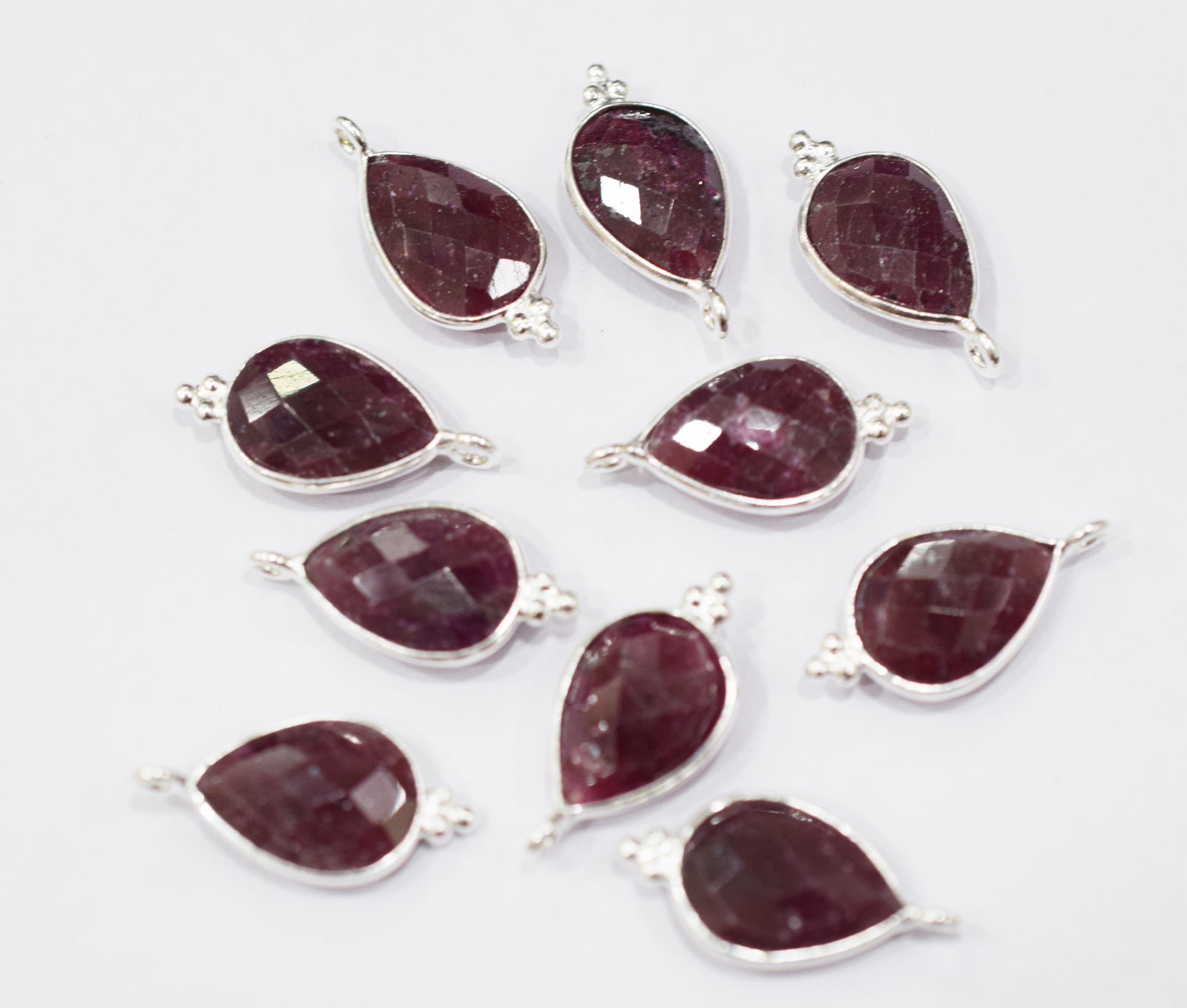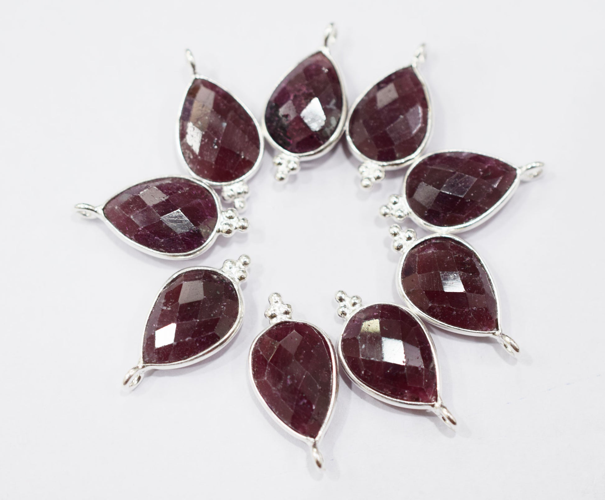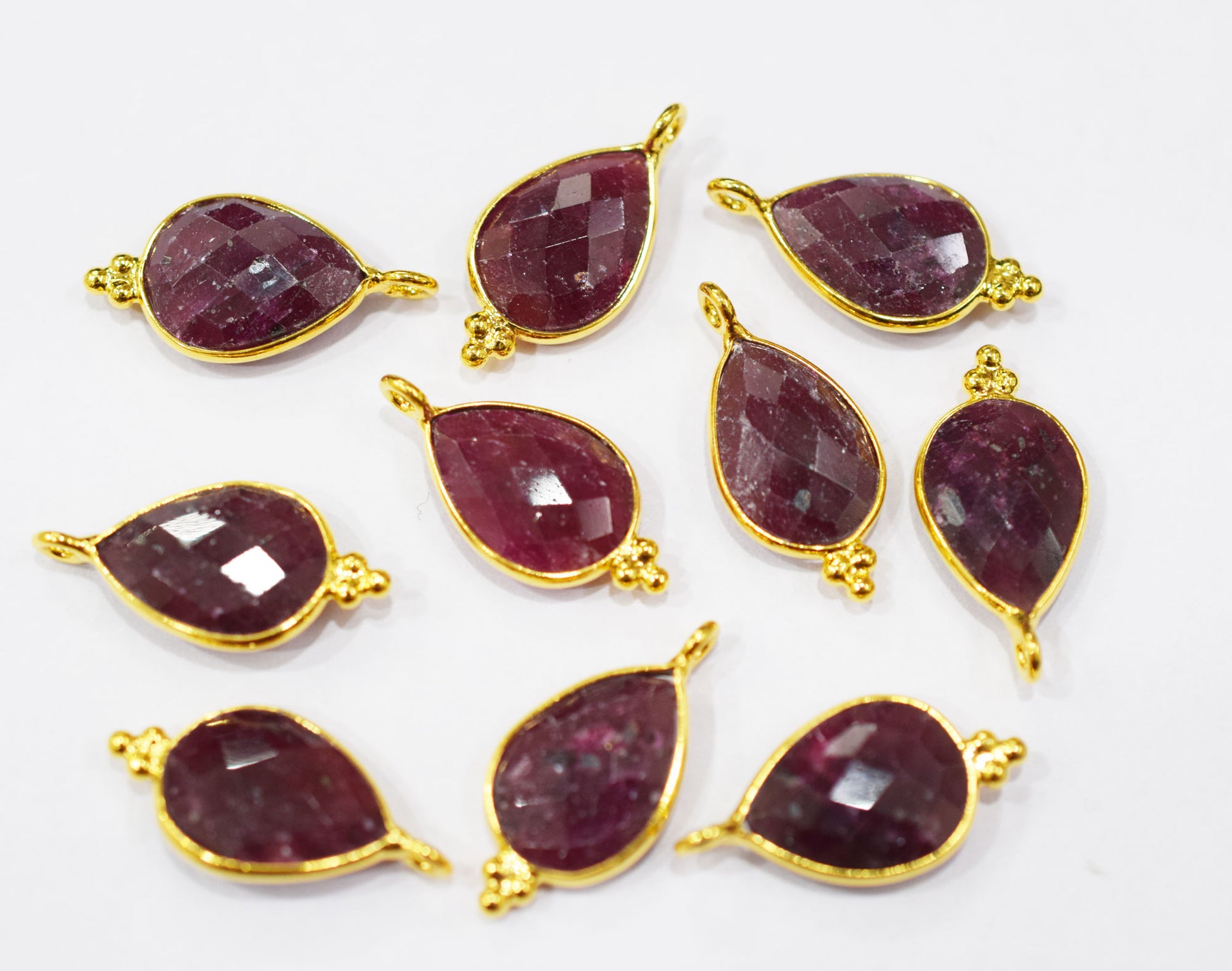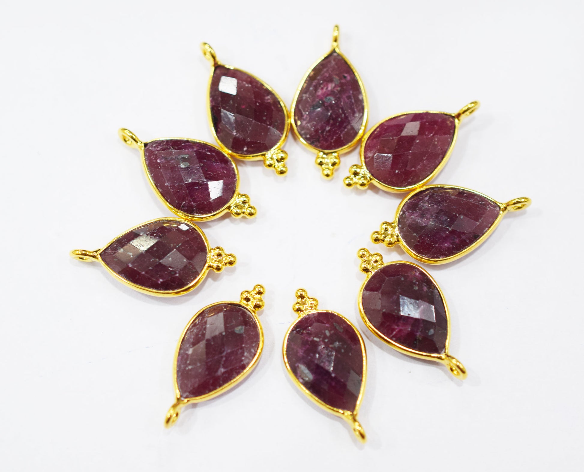 Ruby Faceted Pear Shape Slightly Tilted Single Bail Connector , Ruby Bezel Connector , Sold By Piece , 11x14 mm , RB-6562