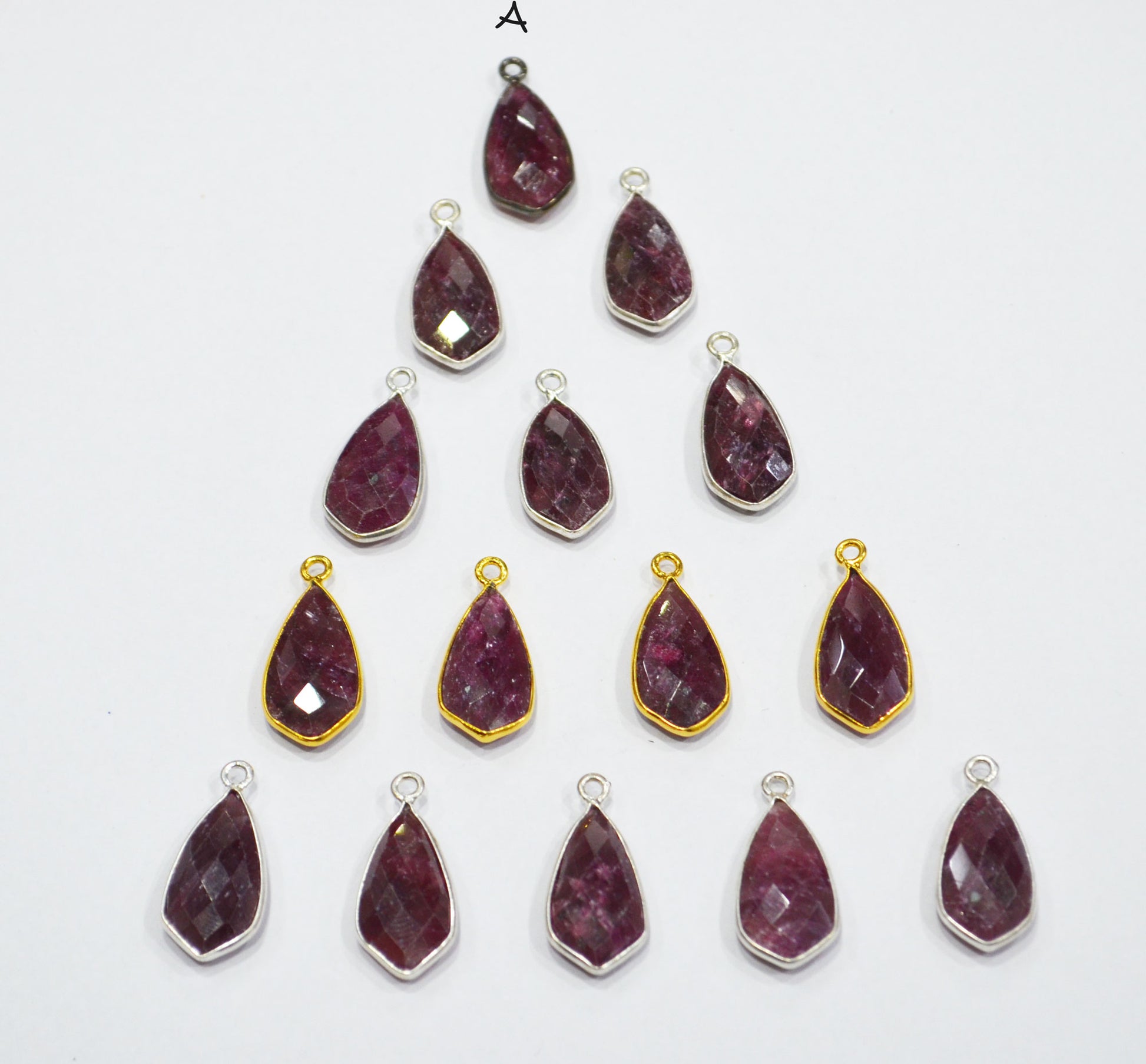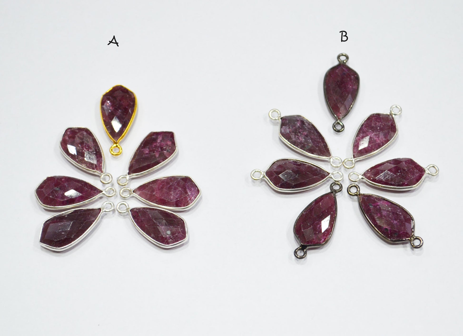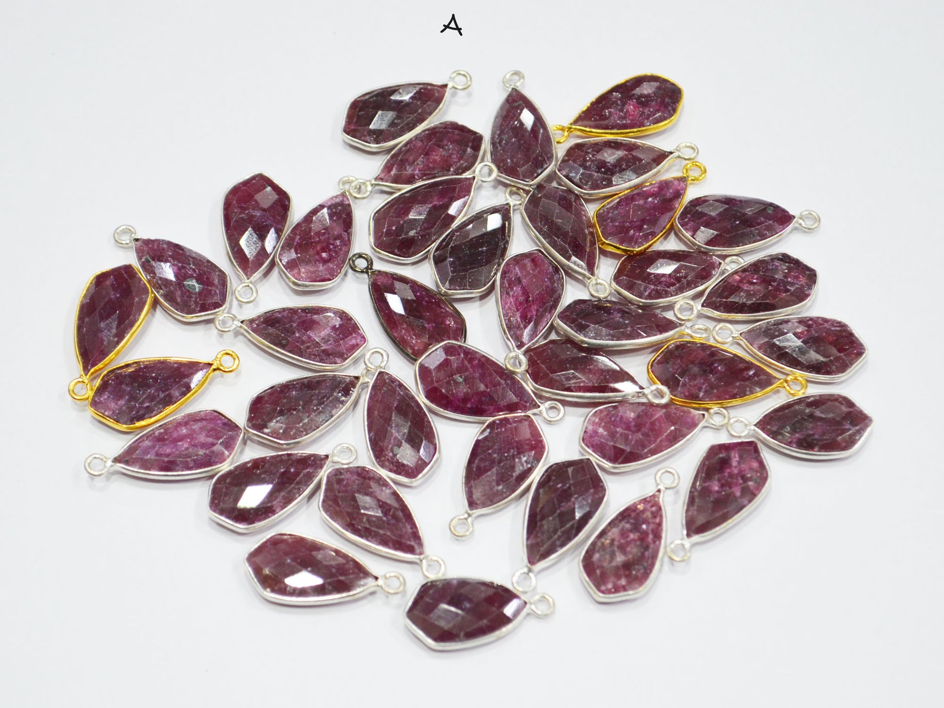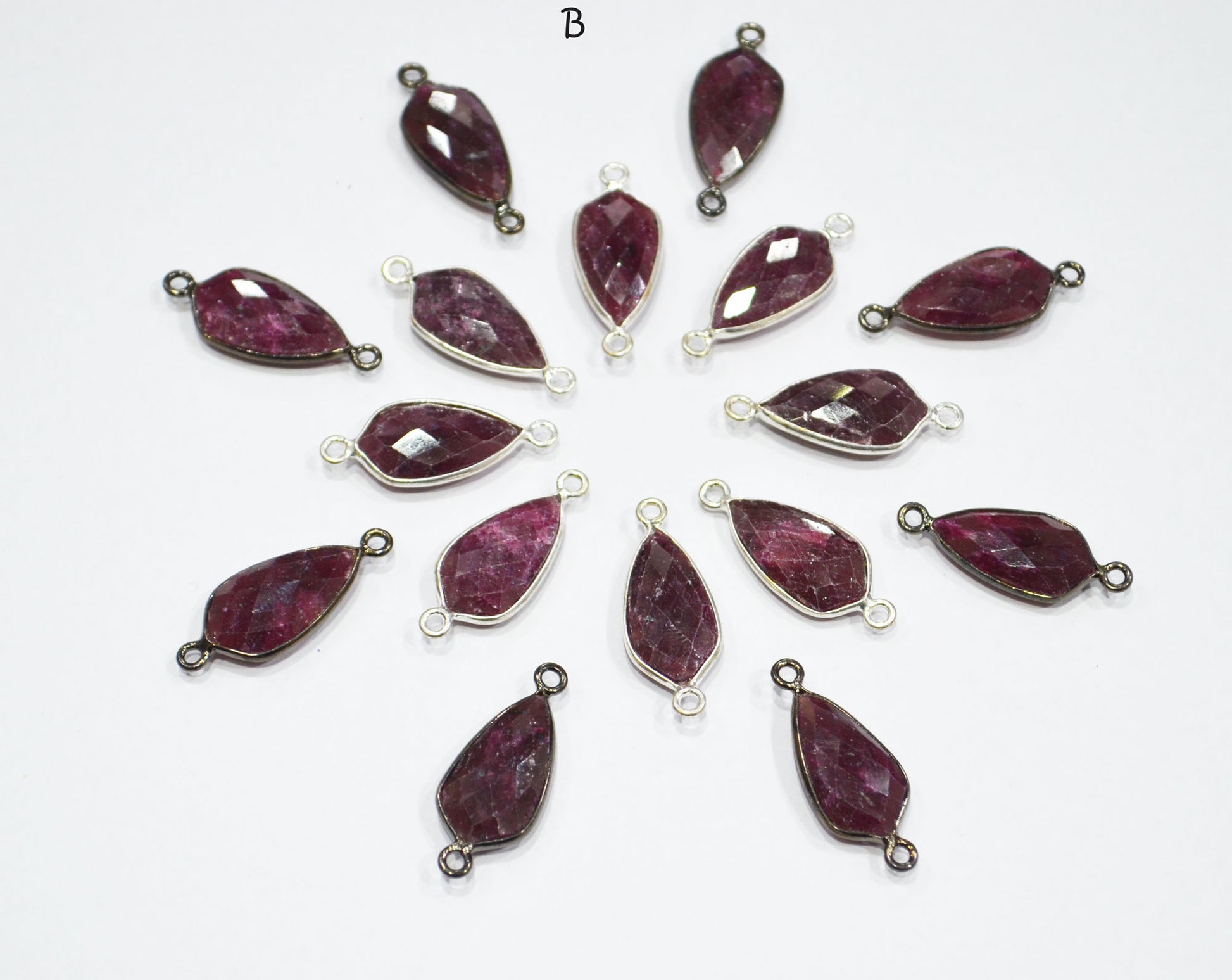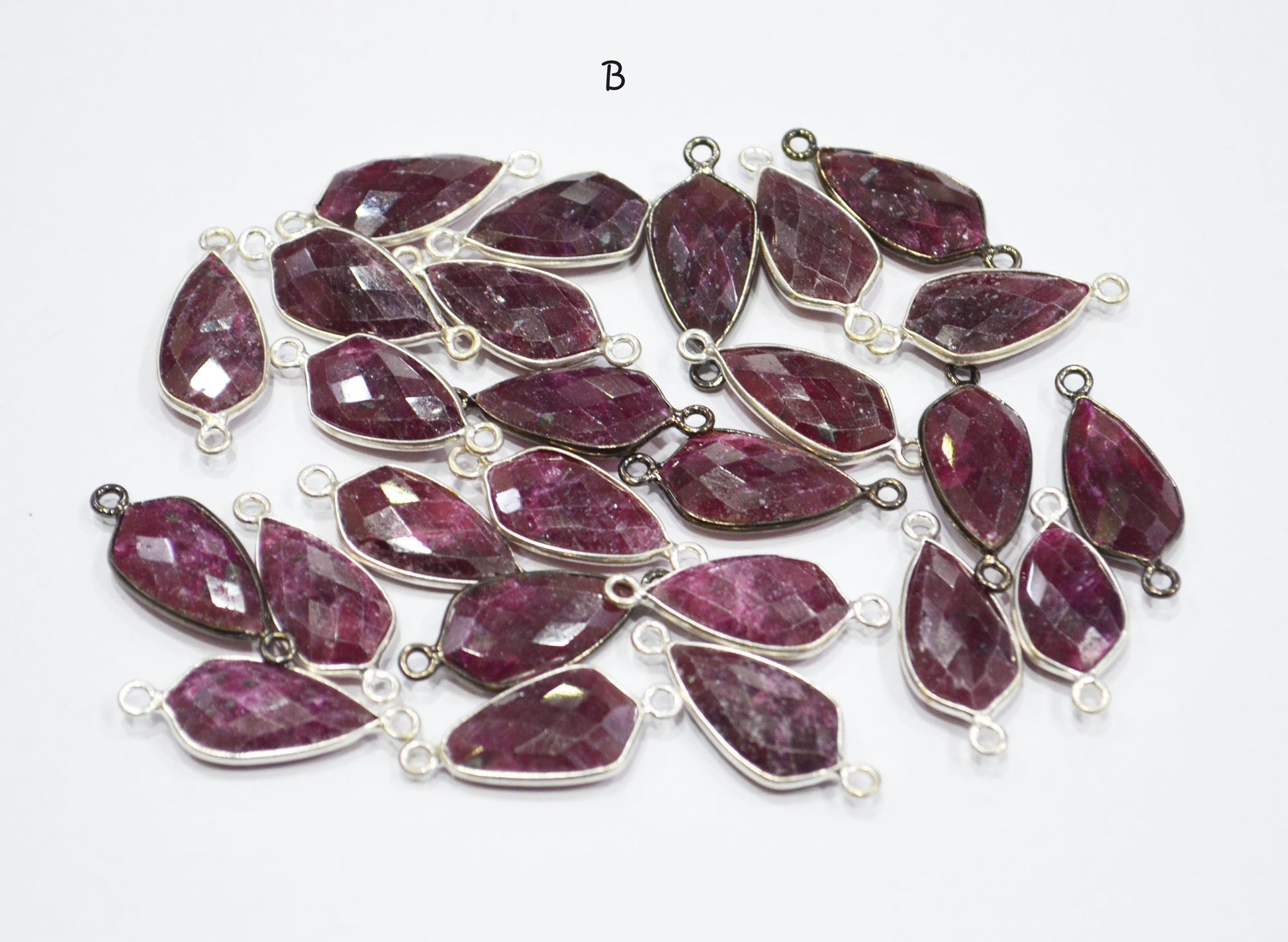 Ruby Faceted Tie Shape Single And Double Bail Connector , Ruby Bezel Connector , Sold By Piece , 19 mm , RB-6561
