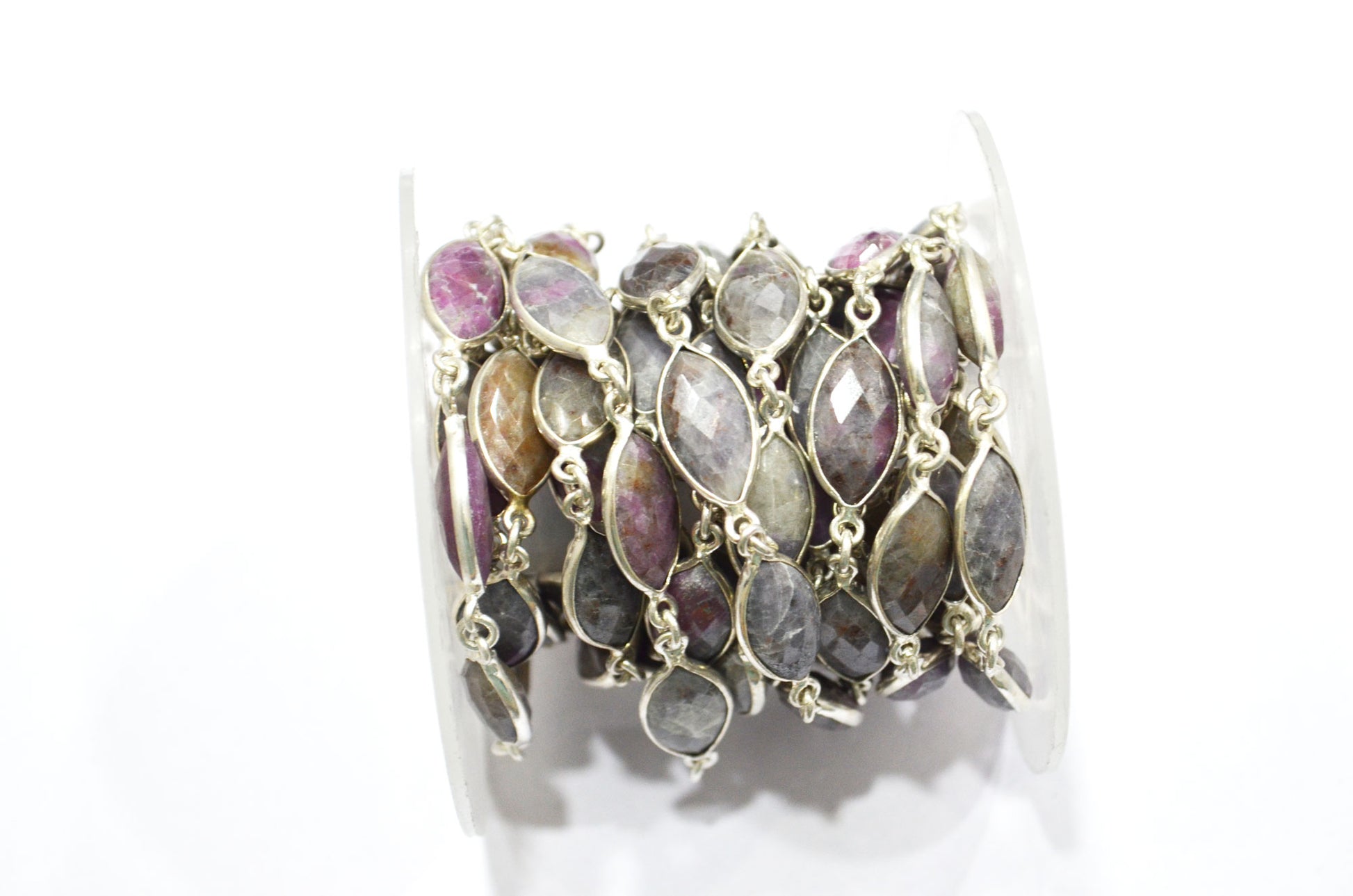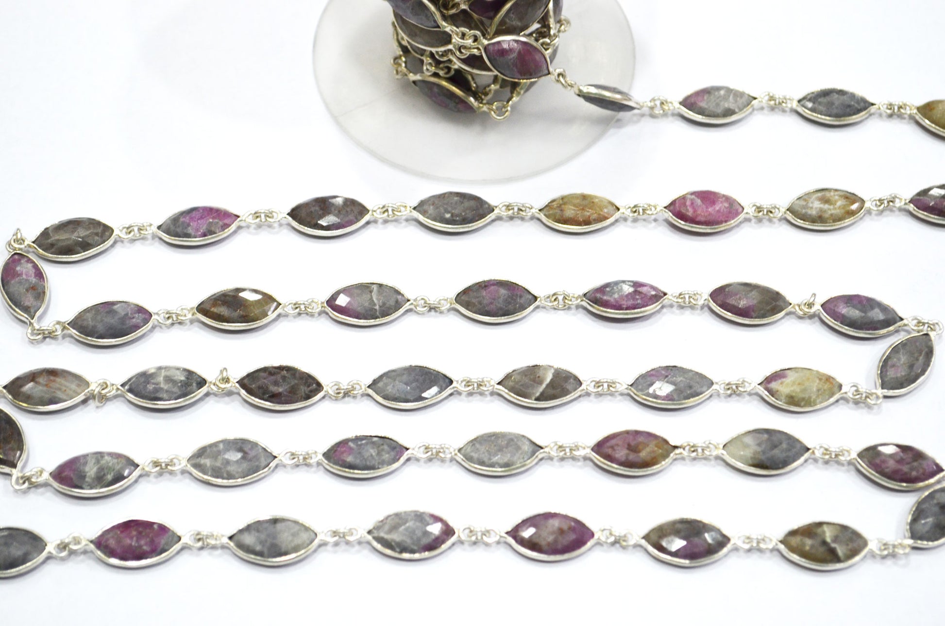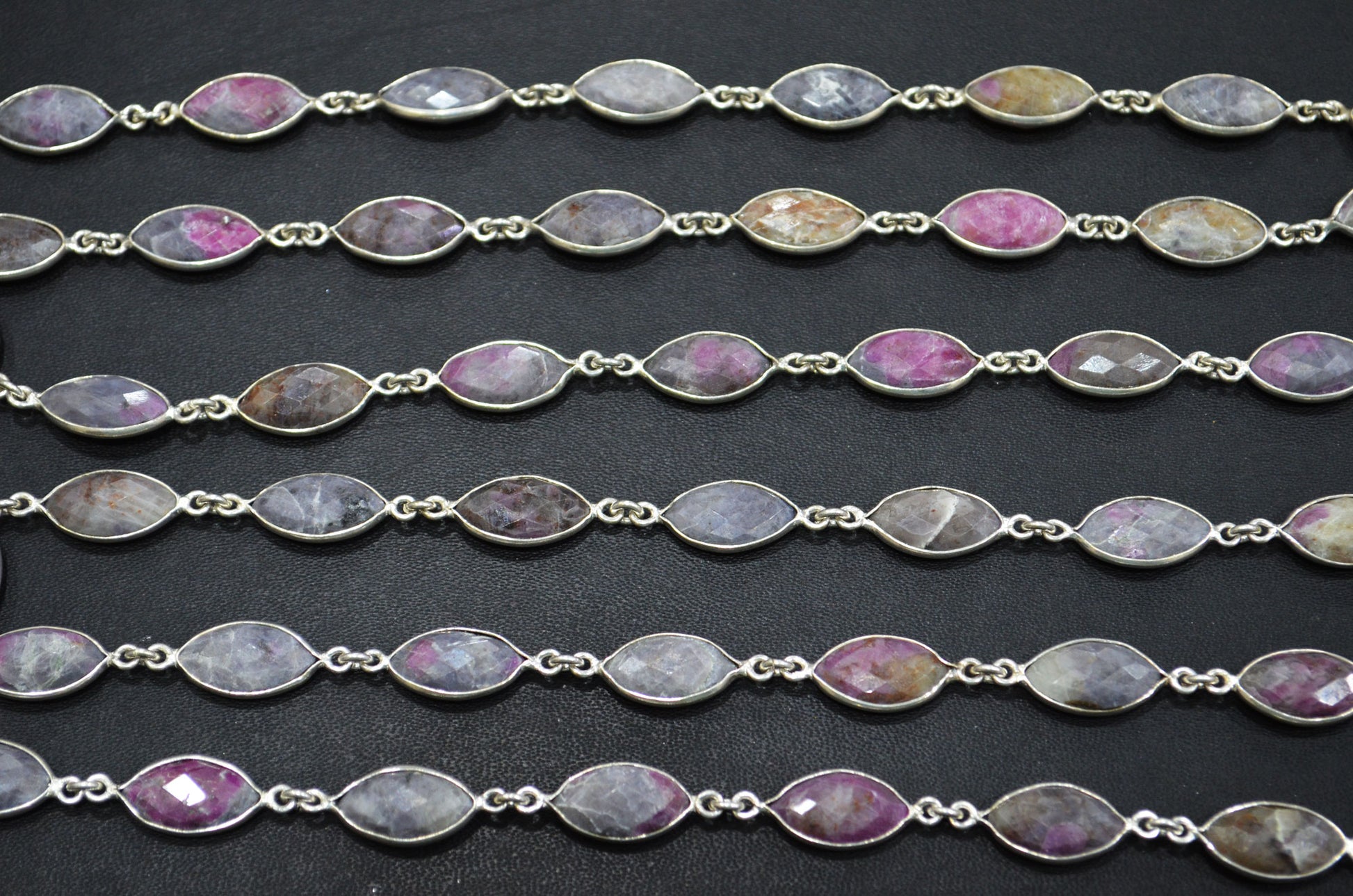 Ruby Rocks Faceted Marquise Shape Connector Chain , Ruby Rocks Bezel Link Chain , 8x15 mm , RB-5937