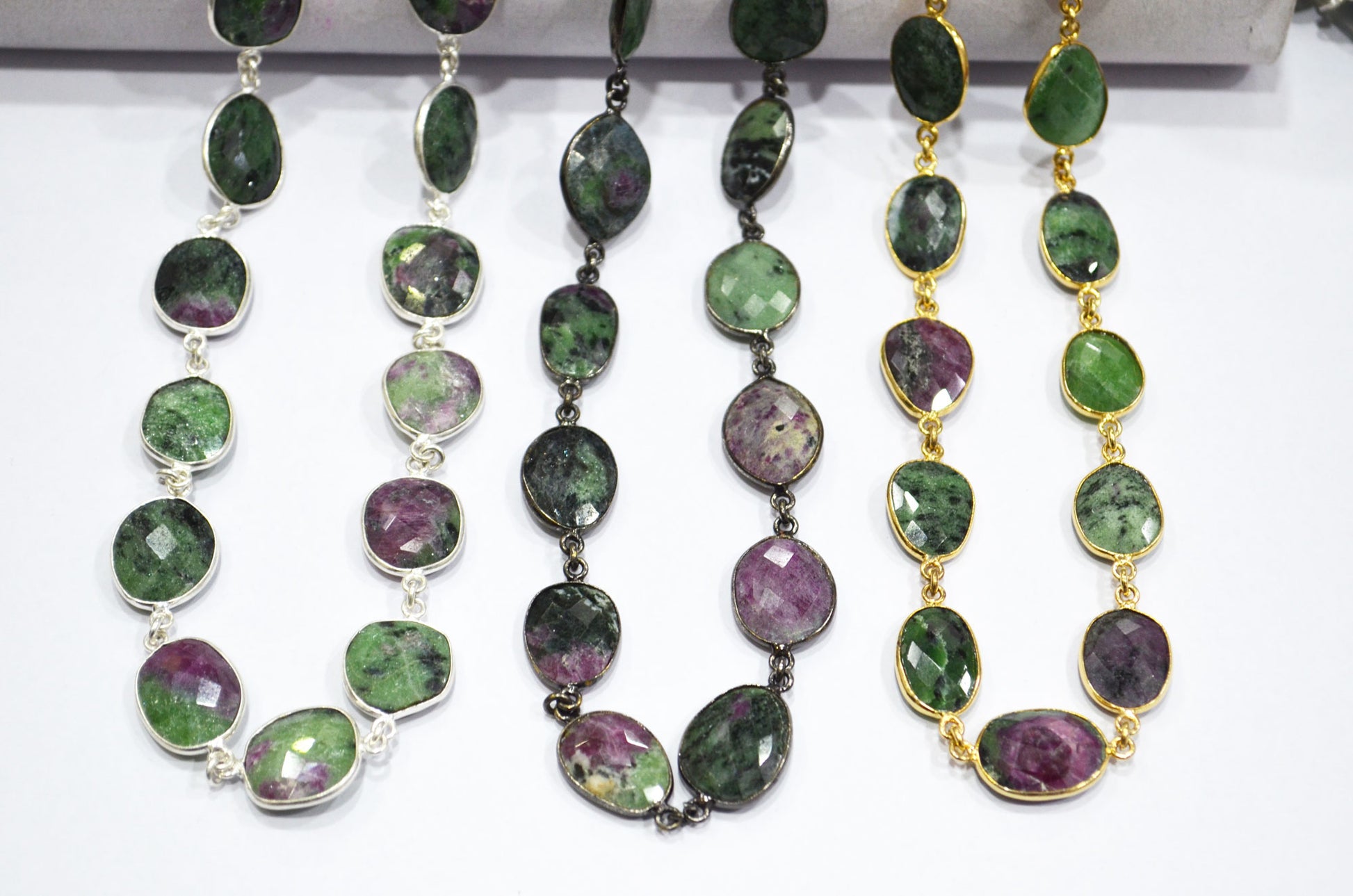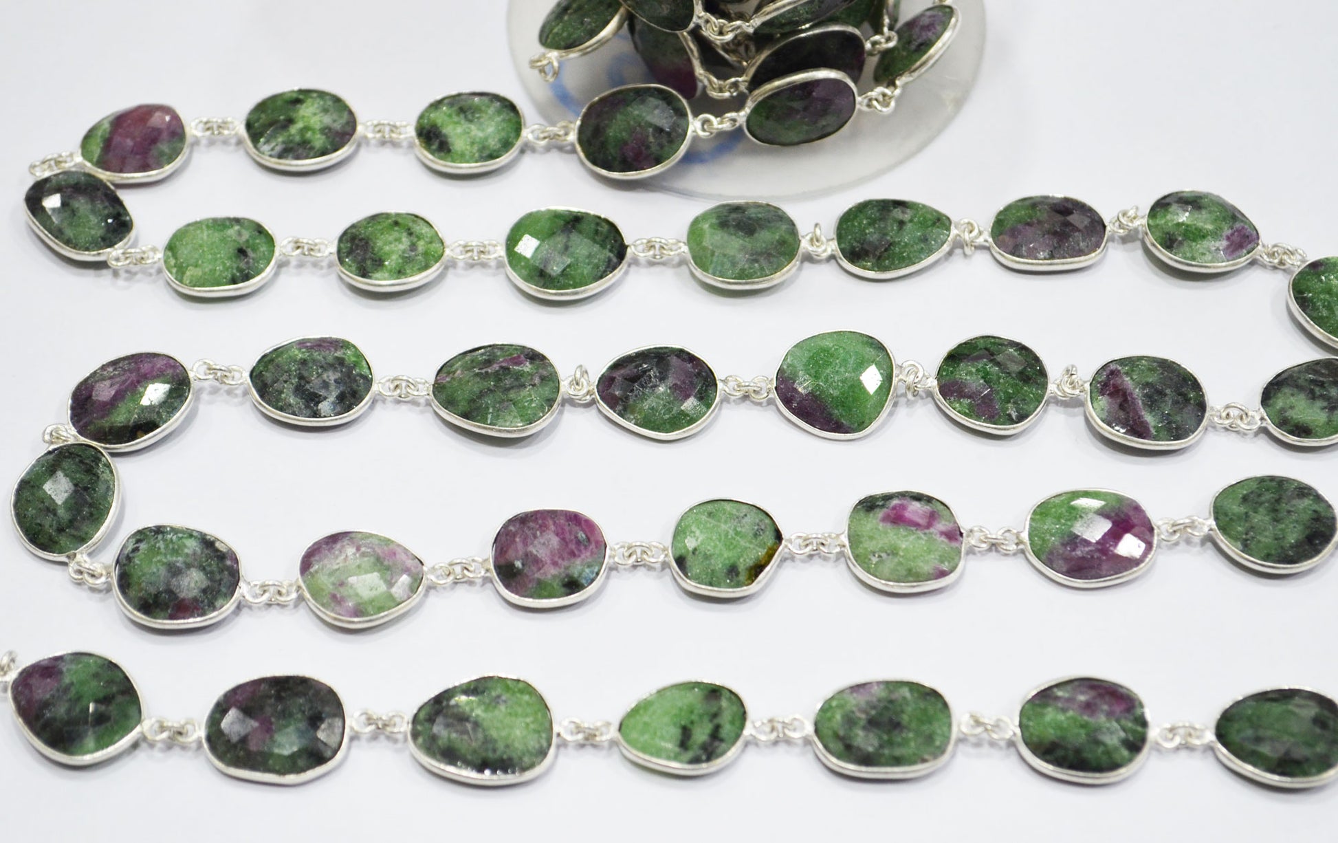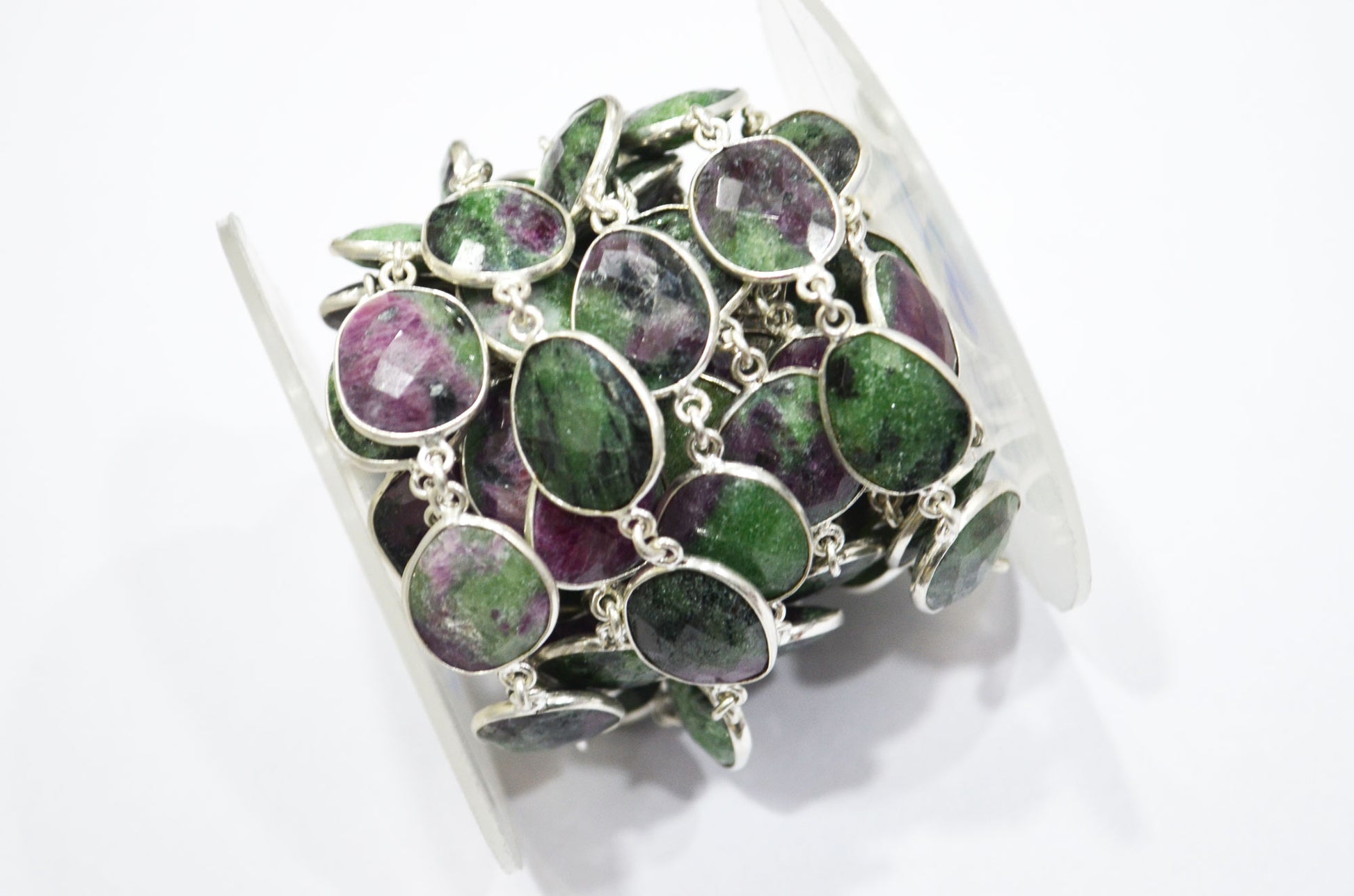 Ruby Zoisite Faceted Slice Shape Connector Chain , Ruby Zoisite Faceted Free Form Shape Bezel Link Chain , 13 - 16 mm , RB-6084