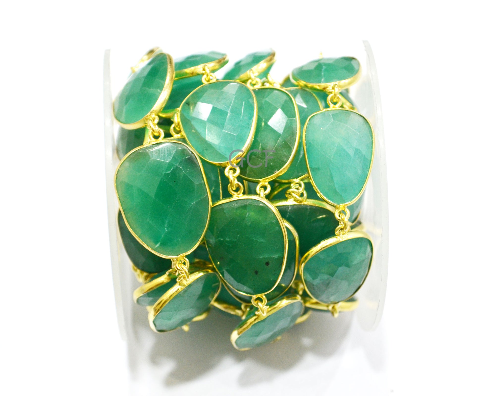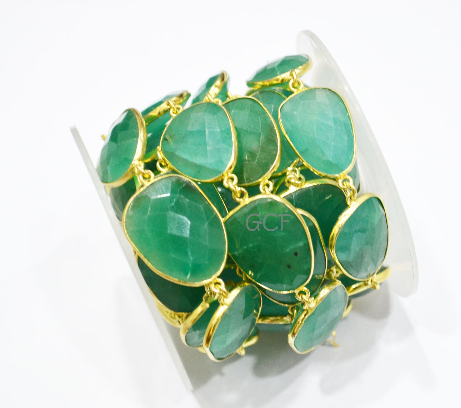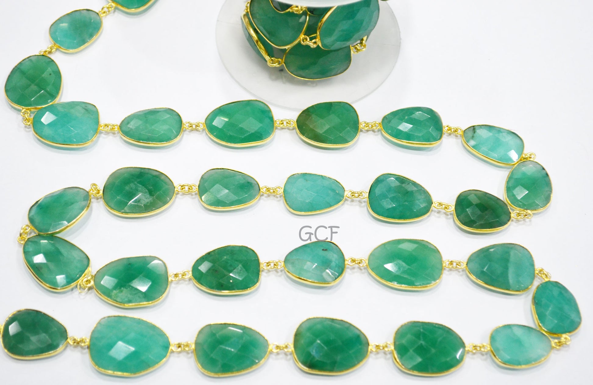 Russian Emerald Quartz Faceted Slice Shape Connector Chain ,Russian Emerald Quartz Bezel Link Chain ,Sold By Foot ,17x20 - 20x25 mm ,RB-7034
