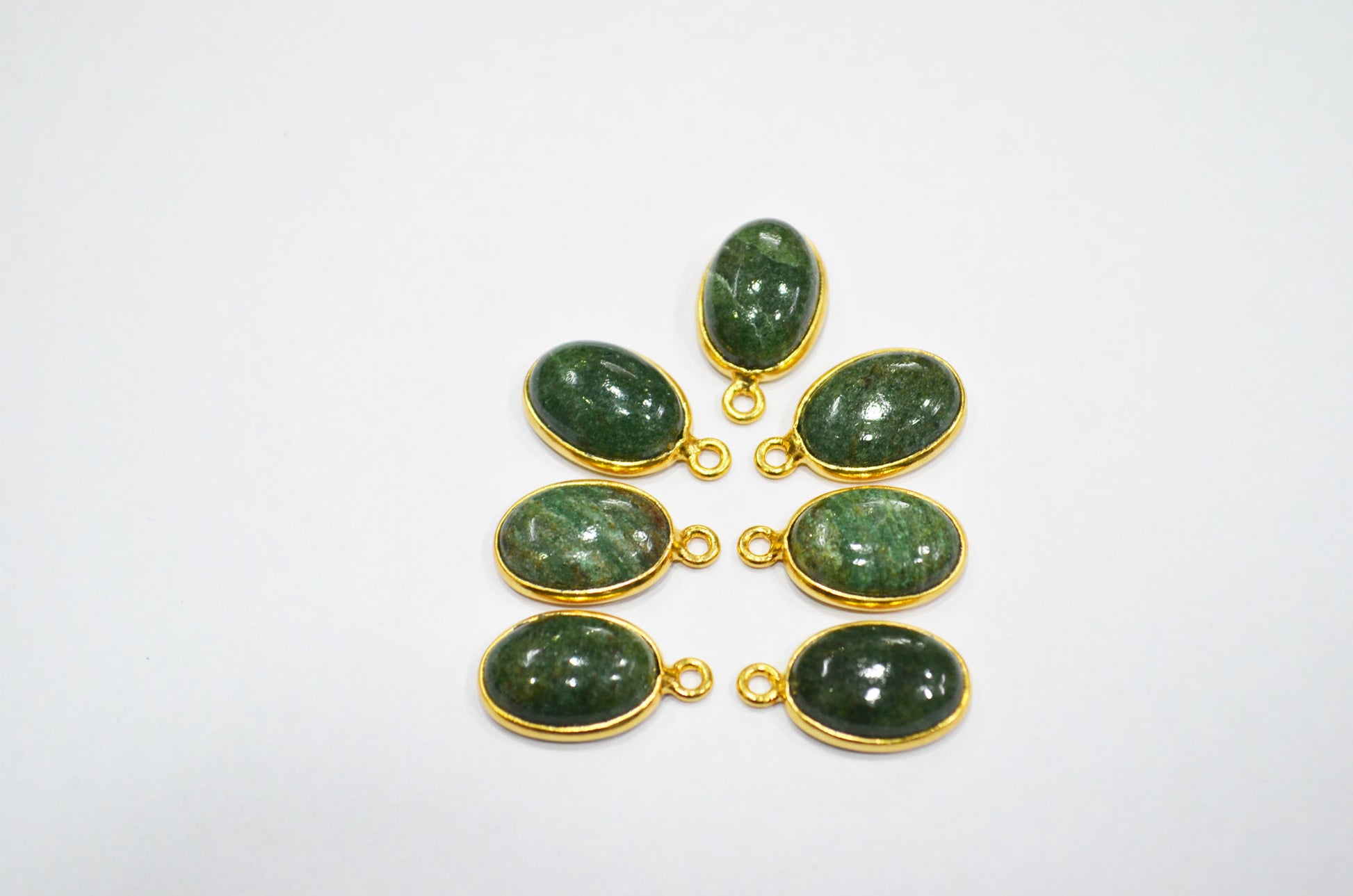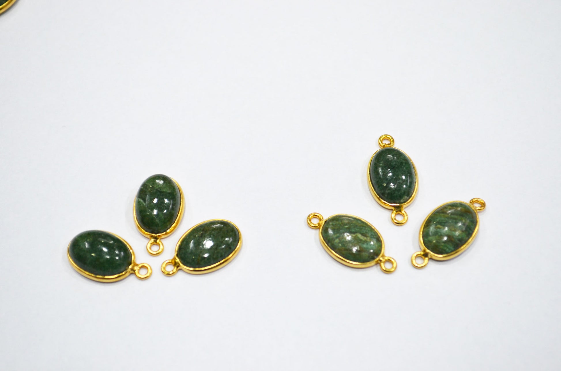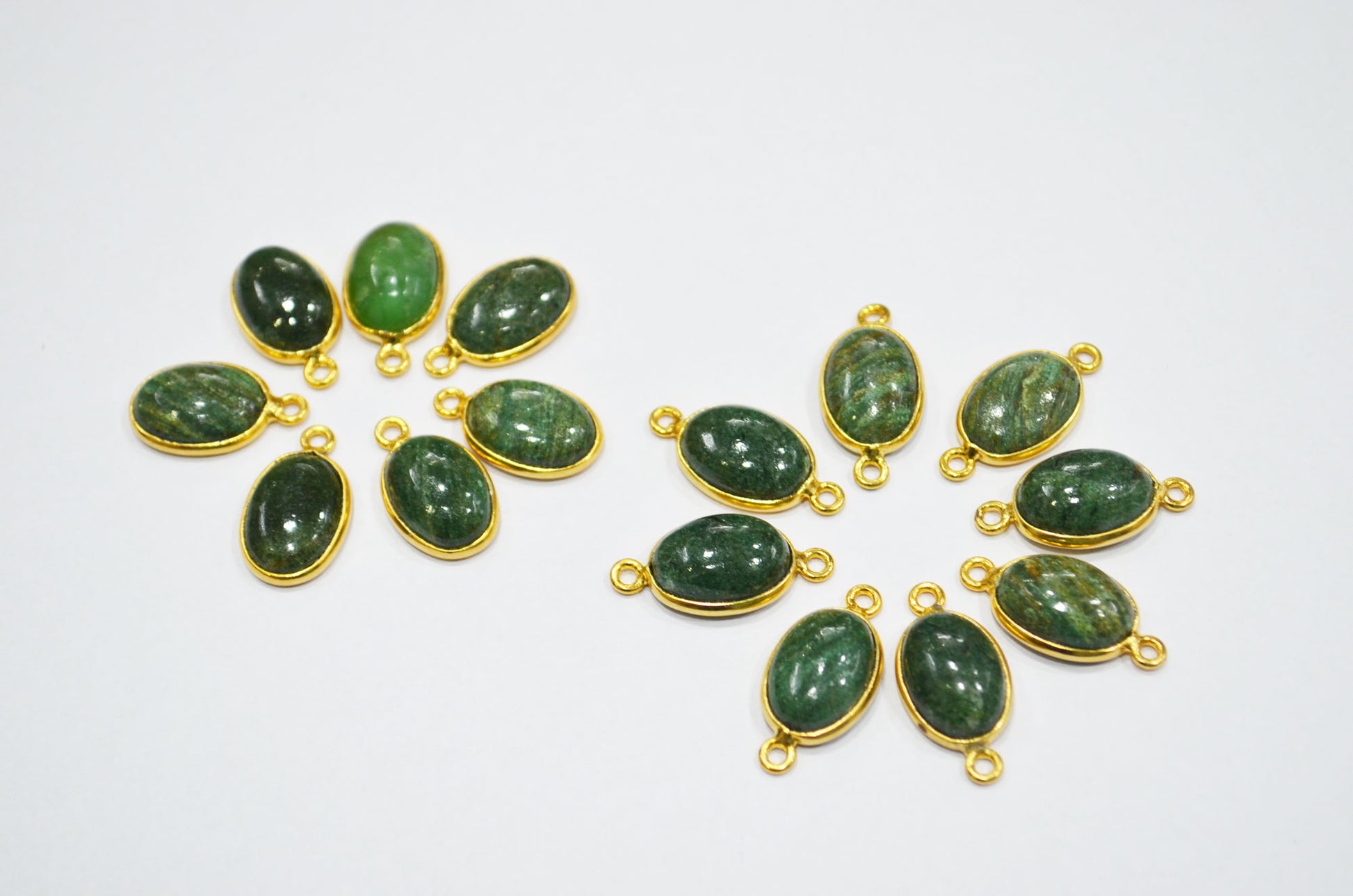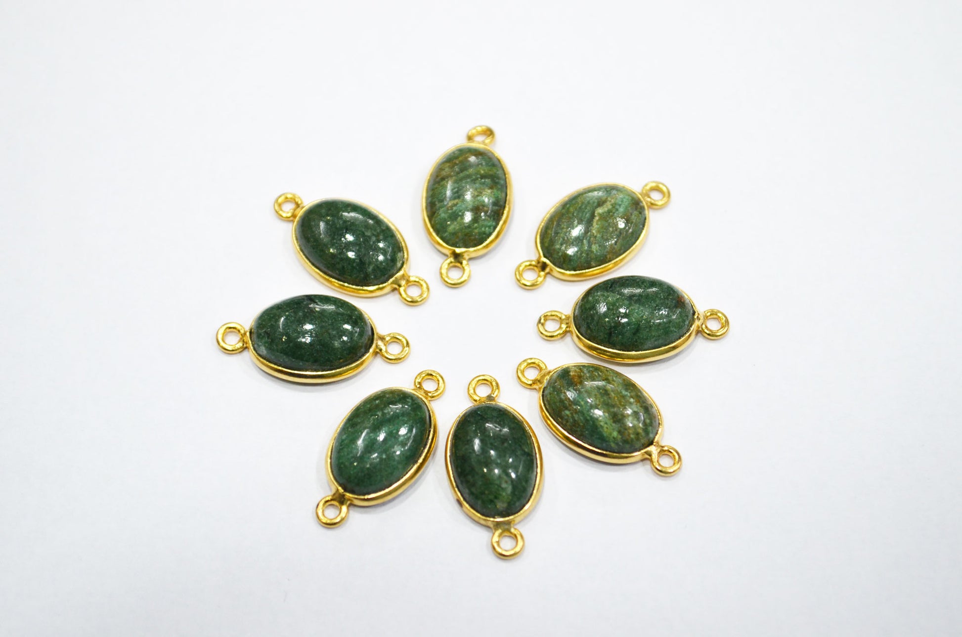 Russian Green Aventurine Smooth Oval Shape Single And Double Bail Connector , Russian Green Aventurine Cabochon Bezel Connector , Sold By Piece , 10x14 mm , RB-6233