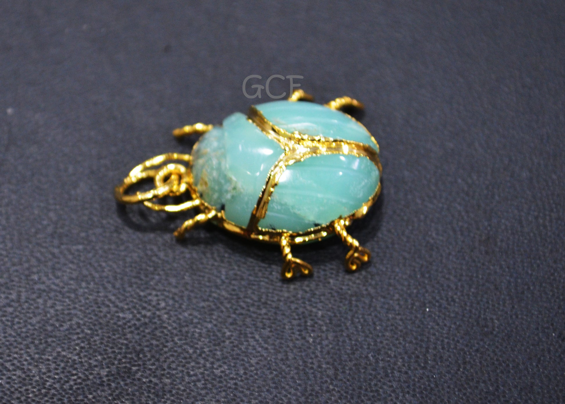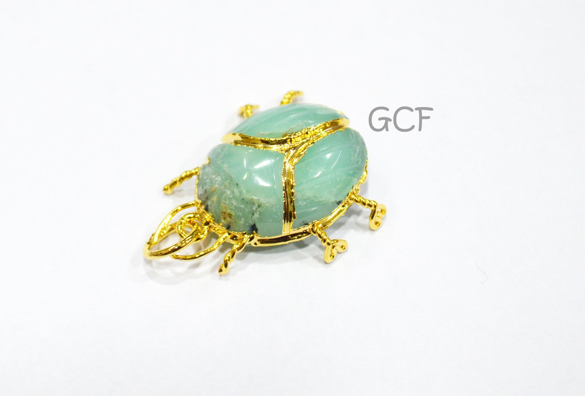Rustic Chrysoprase Electroplated Beetle Pendant , Egyptian Scarab Rustic Chrysoprase Charm , Sold By Piece , Use To Make Jewelry , 2.50 cm , 31341