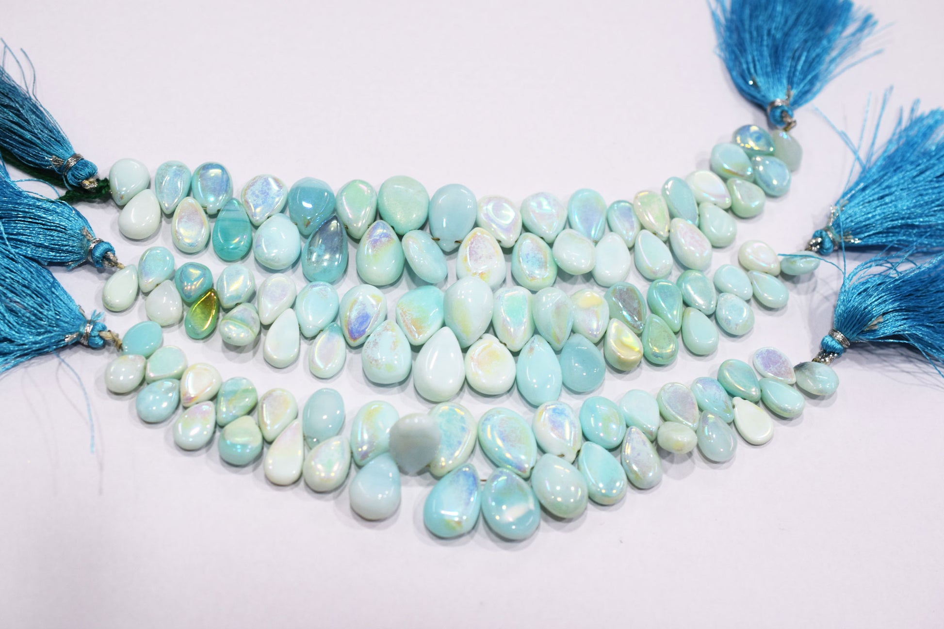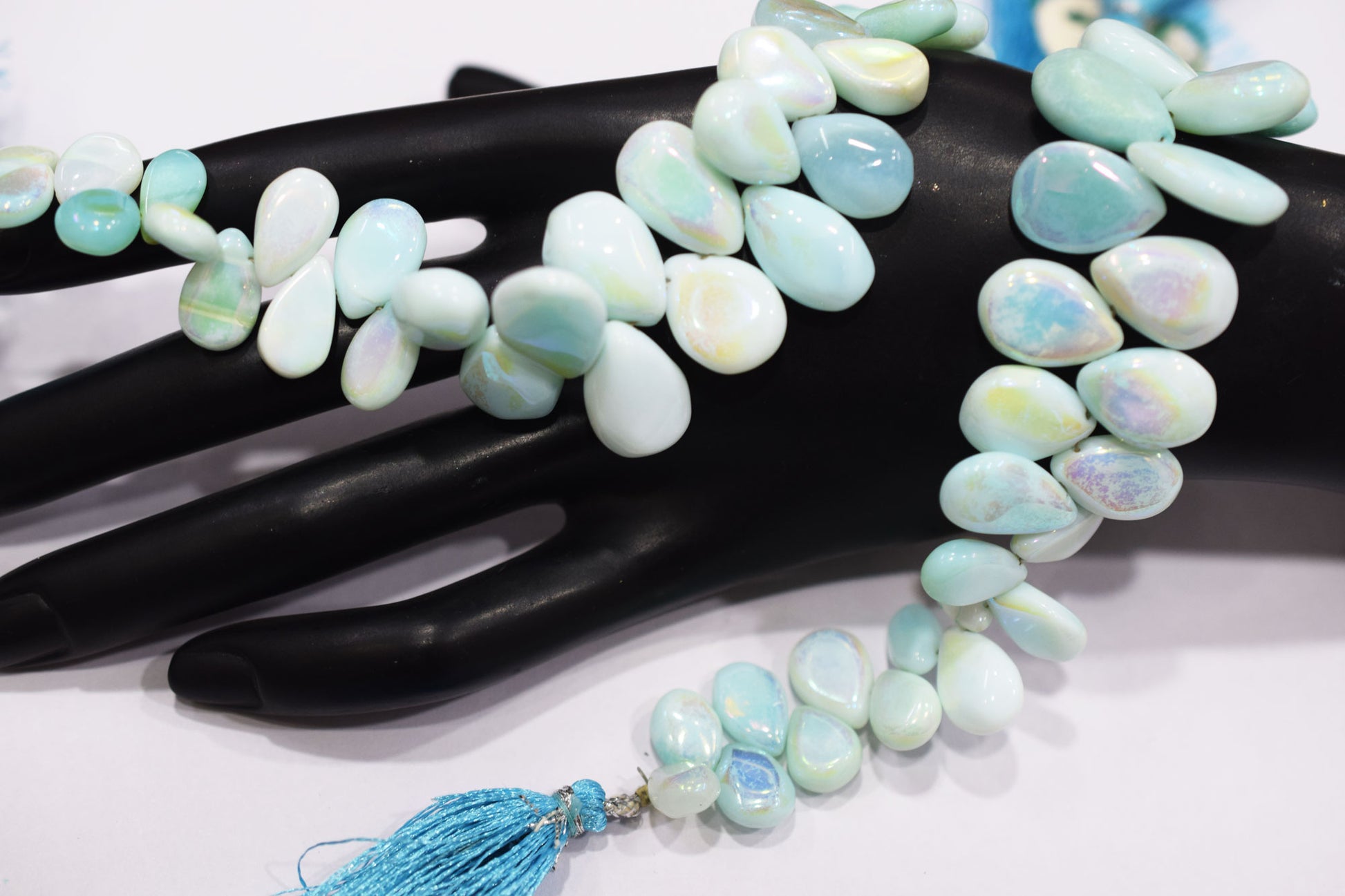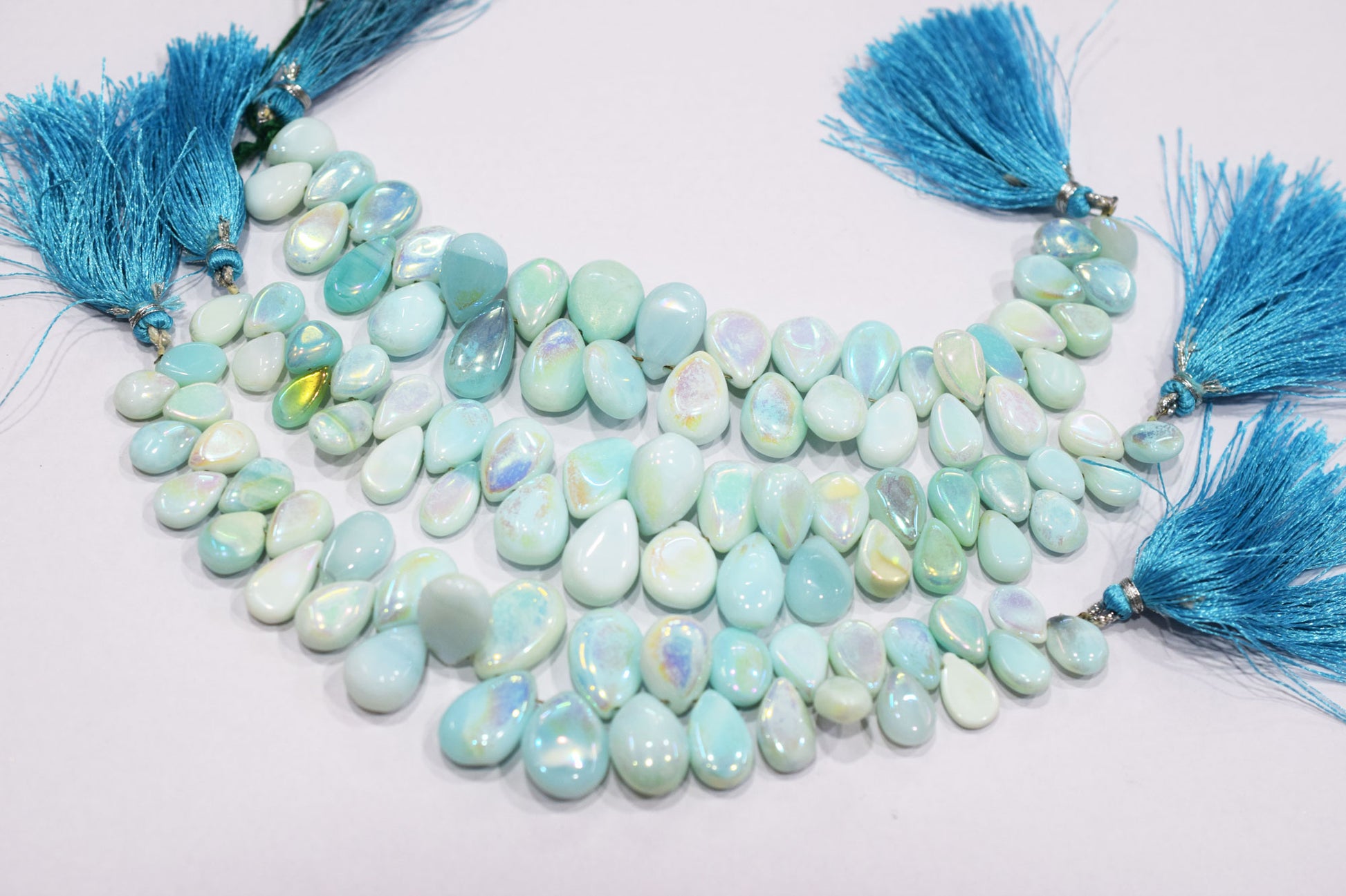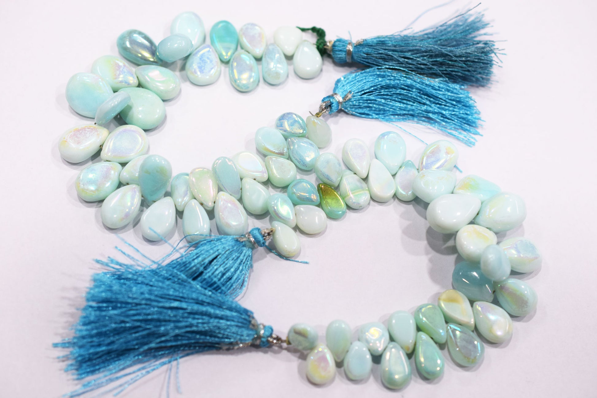 Rustic Metallic Coated Blue Opal Pear Shape Beads , Metallic Coated Blue Opal Smooth Briolettes , Sold By Strand , 7.50x11 - 12.50x18 mm , 7", 20424