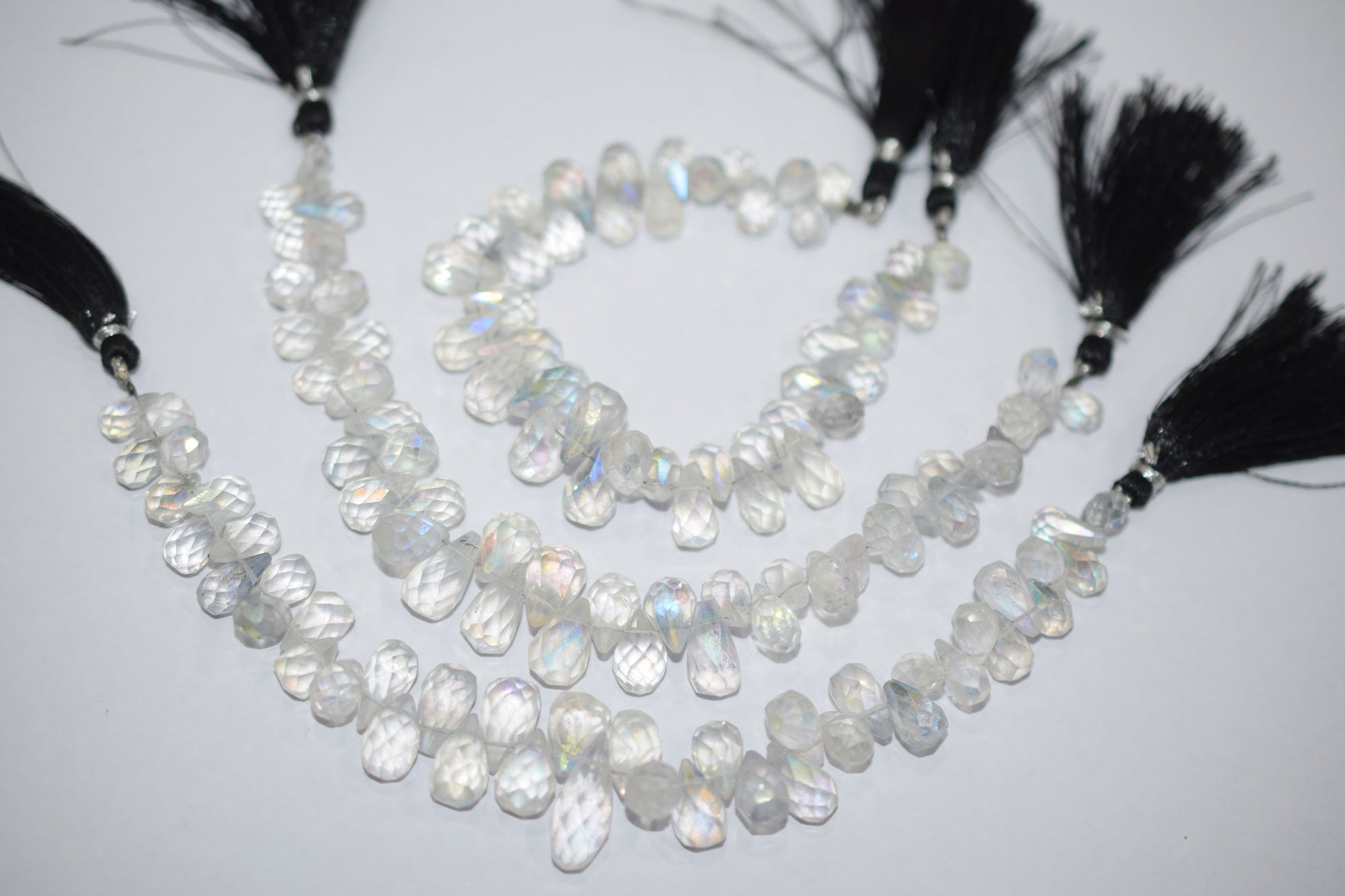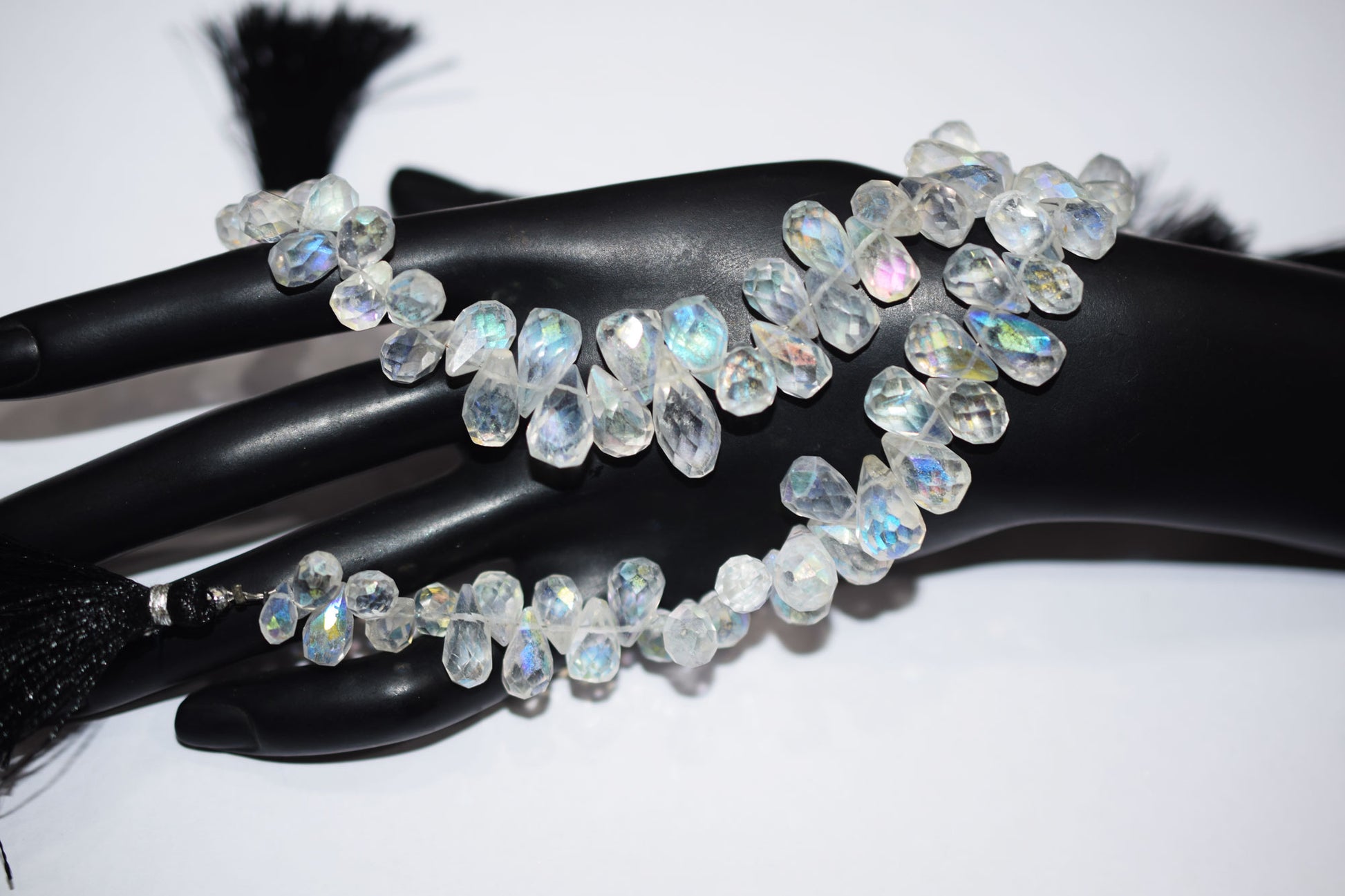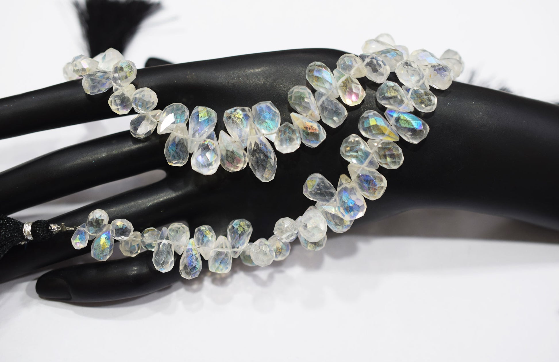 Rustic Metallic Coated Crystal Tear Drops Shape Briolettes , Natural Crystal Faceted Gemstone , Sold By Strand , 5x10 - 8x13 mm , 7" , 17901