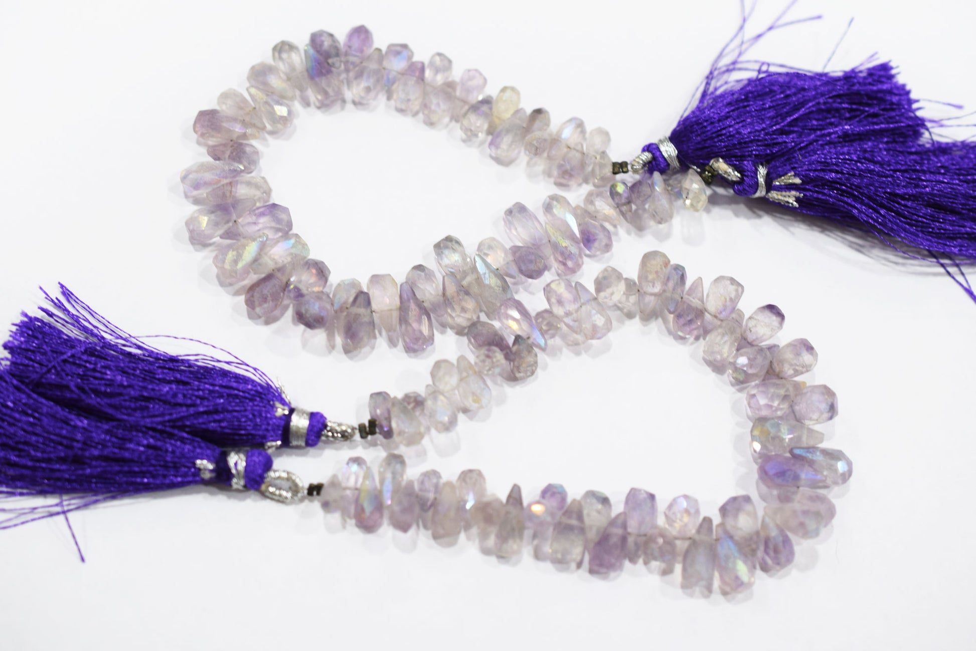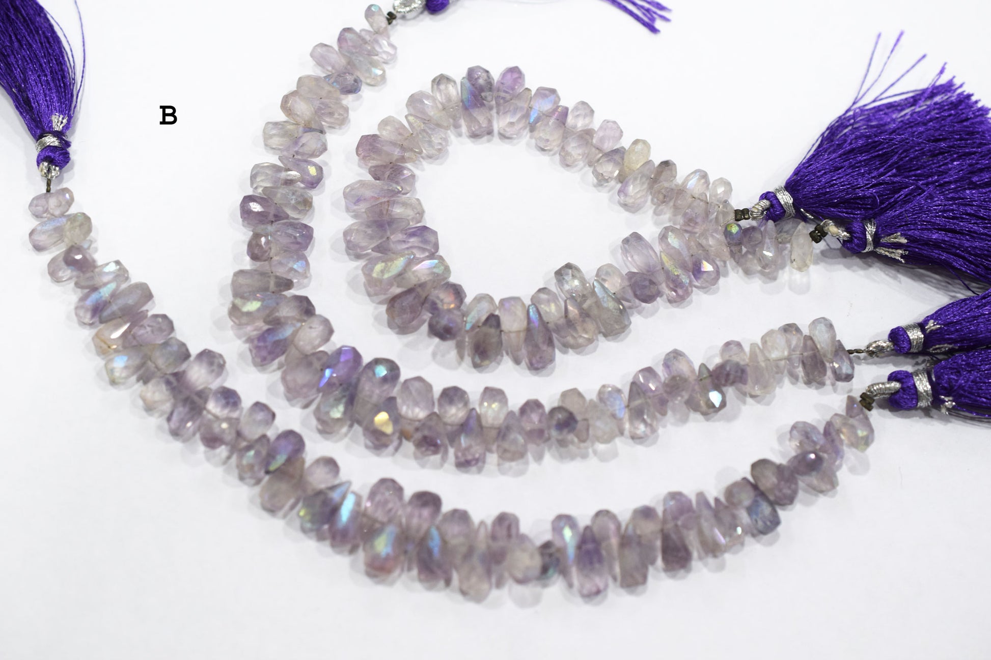 Rustic Metallic Coated Pink Amethyst Faceted Tear Drops Shape Briolettes , Sold By Strand , 4x6 - 6x12 mm , 7" , 17903B
