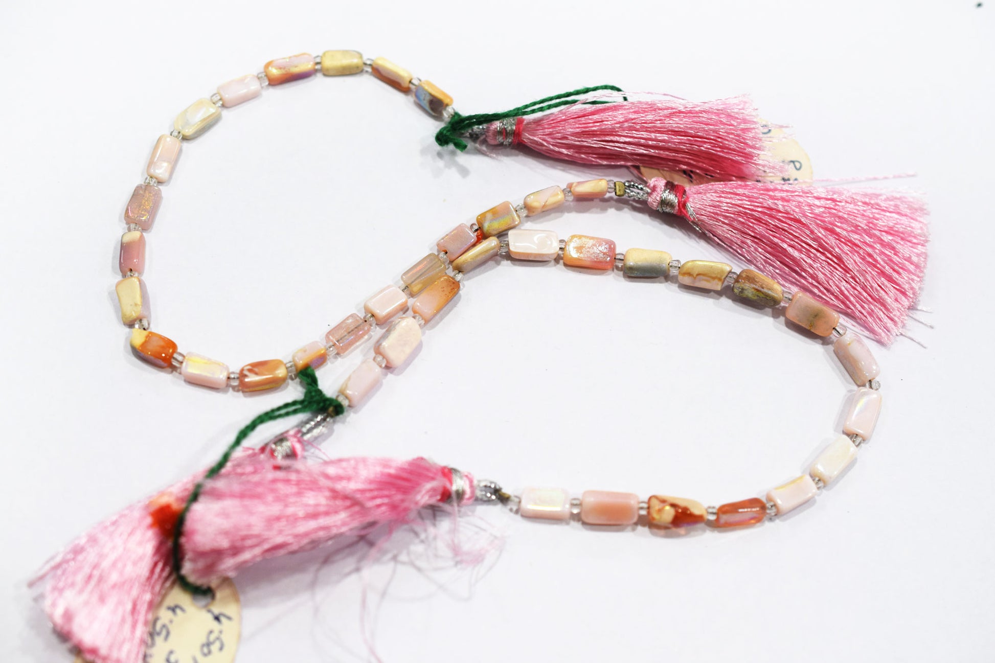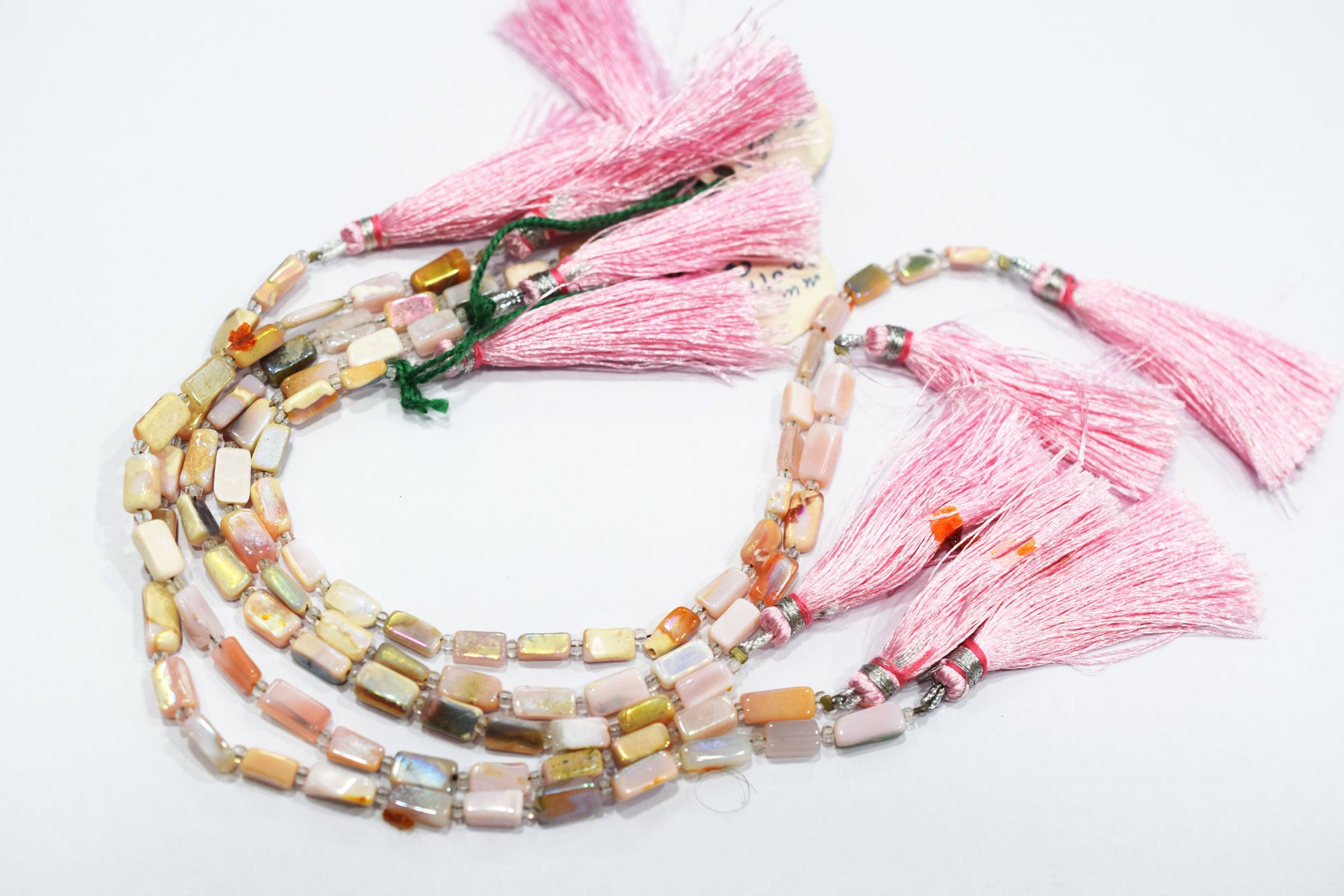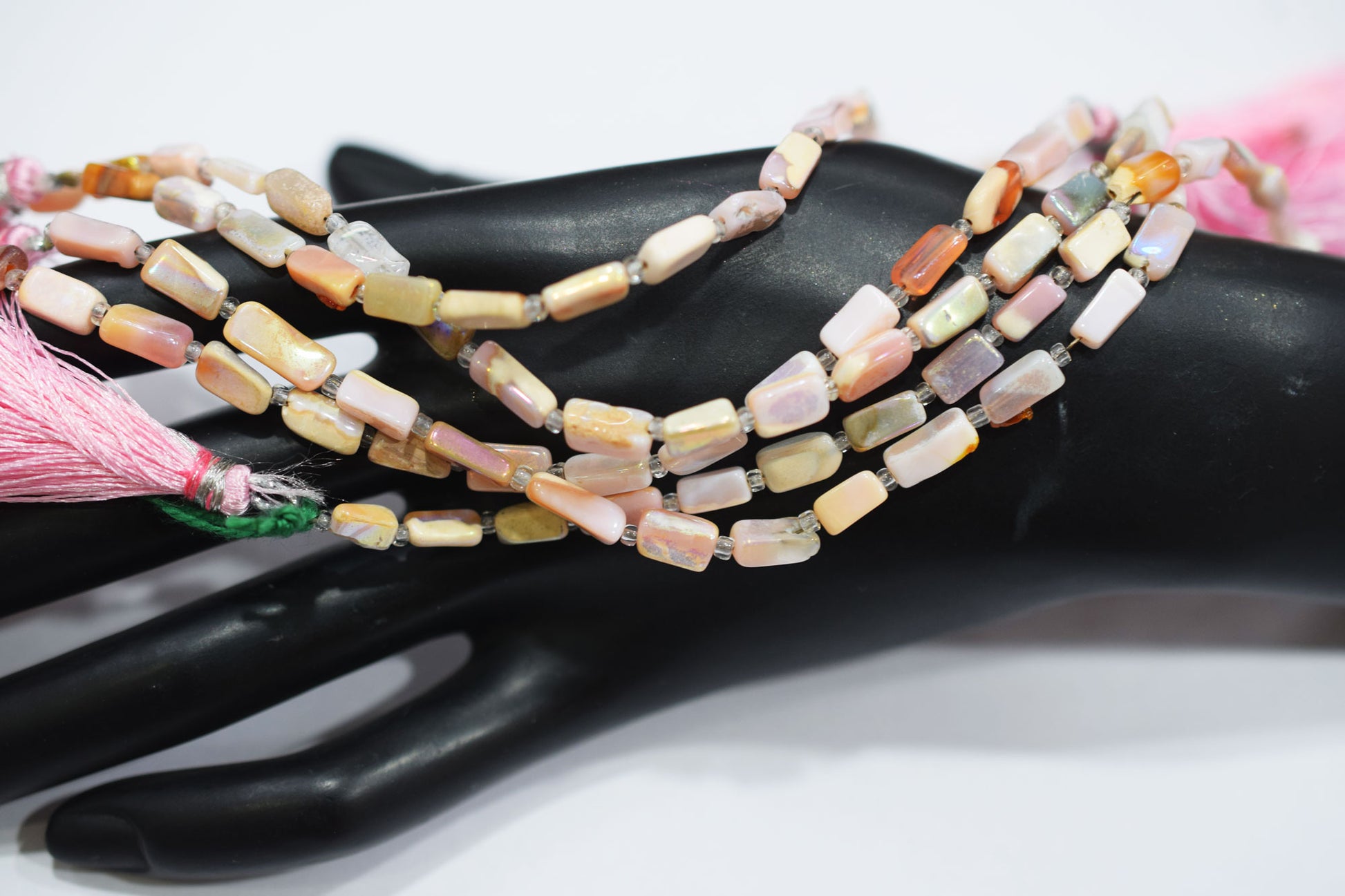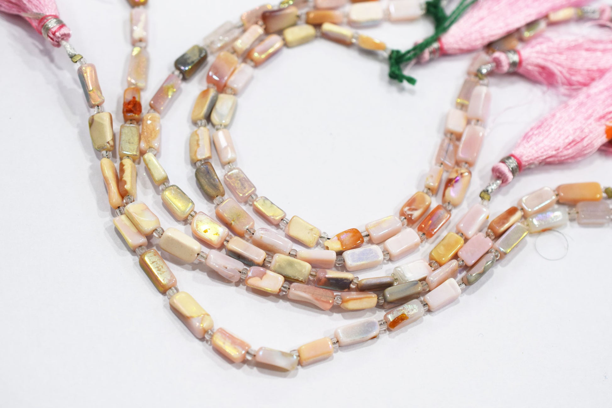 Rustic Metallic Coated Pink Opal Uneven Rectangle Shape Gemstone , Pink Opal Smooth Beads , Sold By Strand , 4x7 - 4.5x9.5 mm , 7", 20435