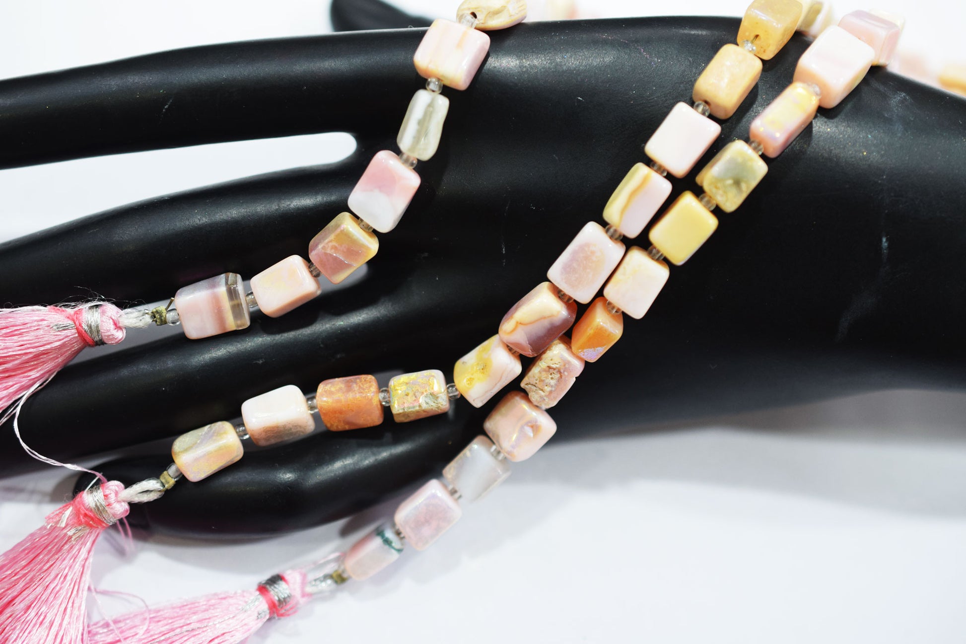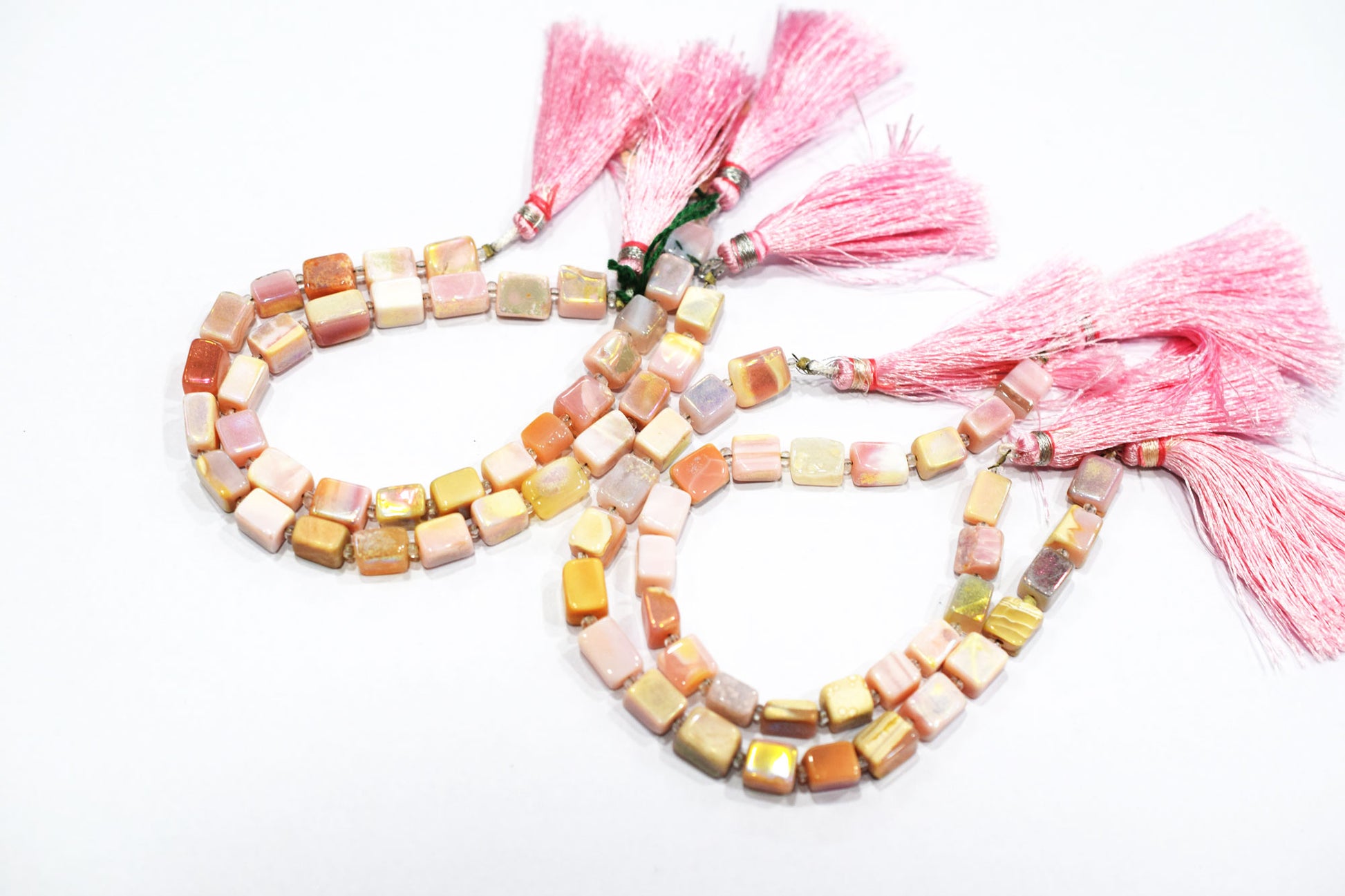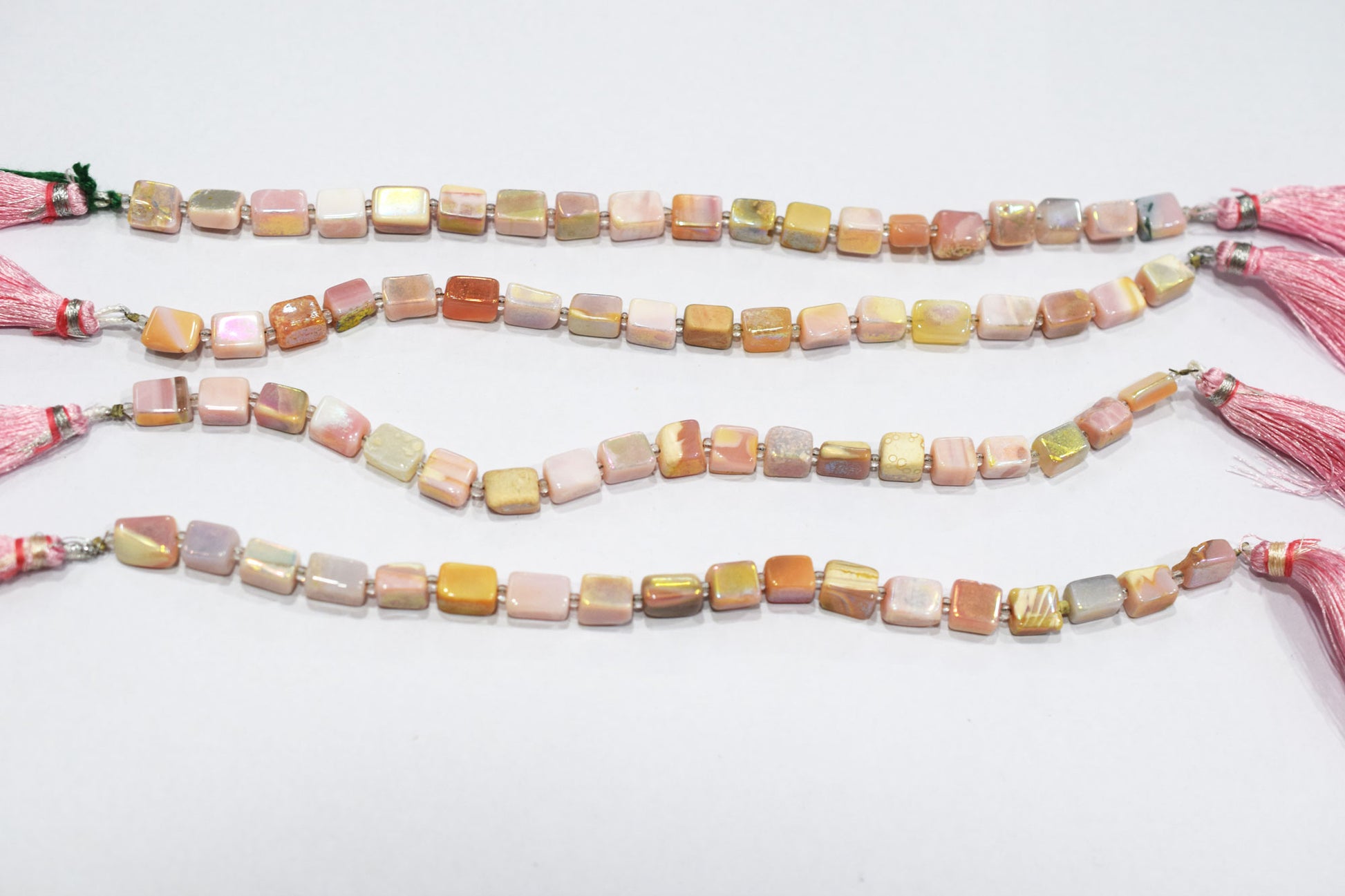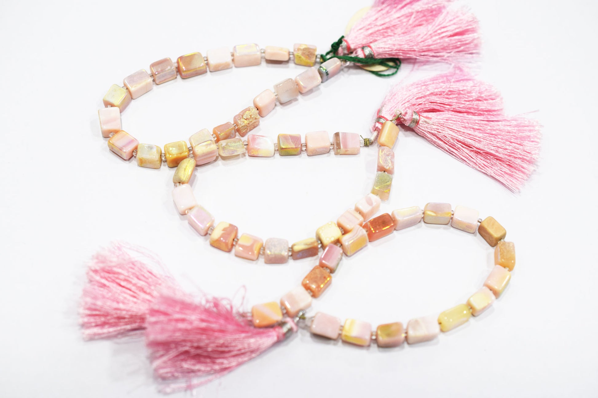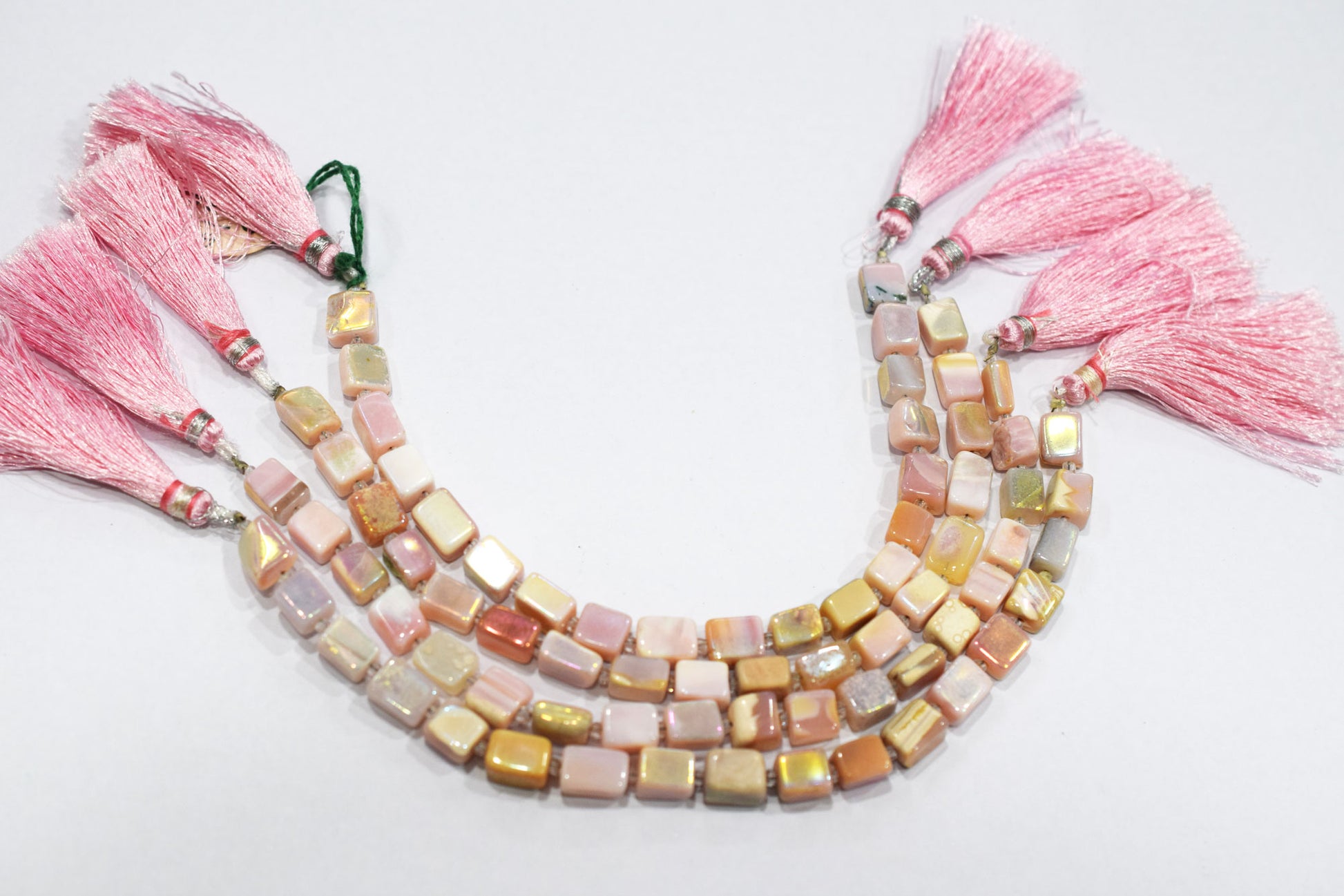Rustic Metallic Coated Pink Opal Uneven Rectangle Shape Gemstone , Pink Opal Smooth Beads , Sold By Strand , 6x7 - 7x9 mm , 7", 20434