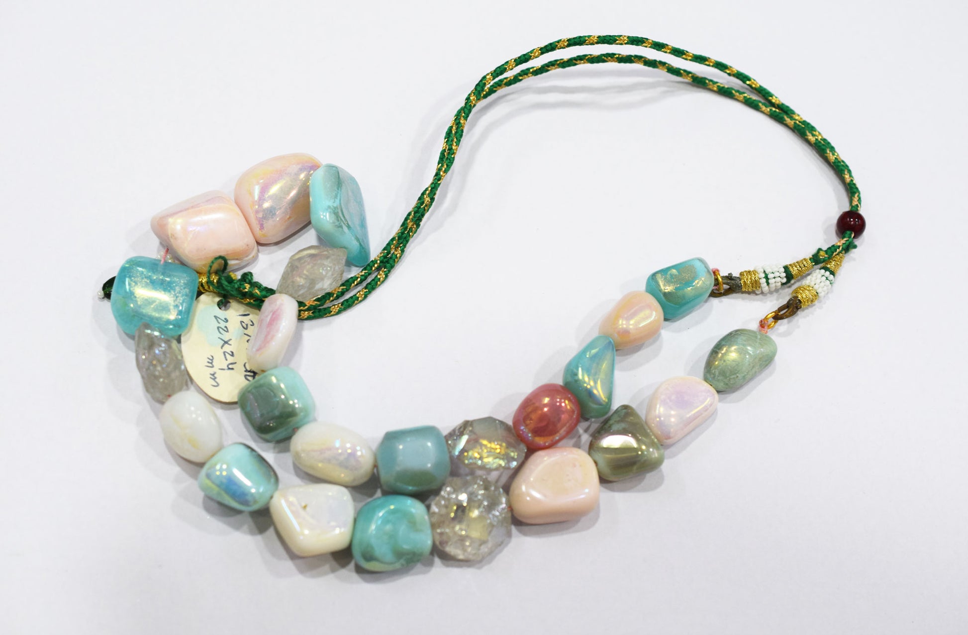 Rustic Metallic Coated Pink Opal With Blue Opal And Herkimer Diamond Necklace , Rustic Pink Opal With Blue Opal Beads With Adjustable Tussle , 13x16 - 22x24 mm , 18" , 20506