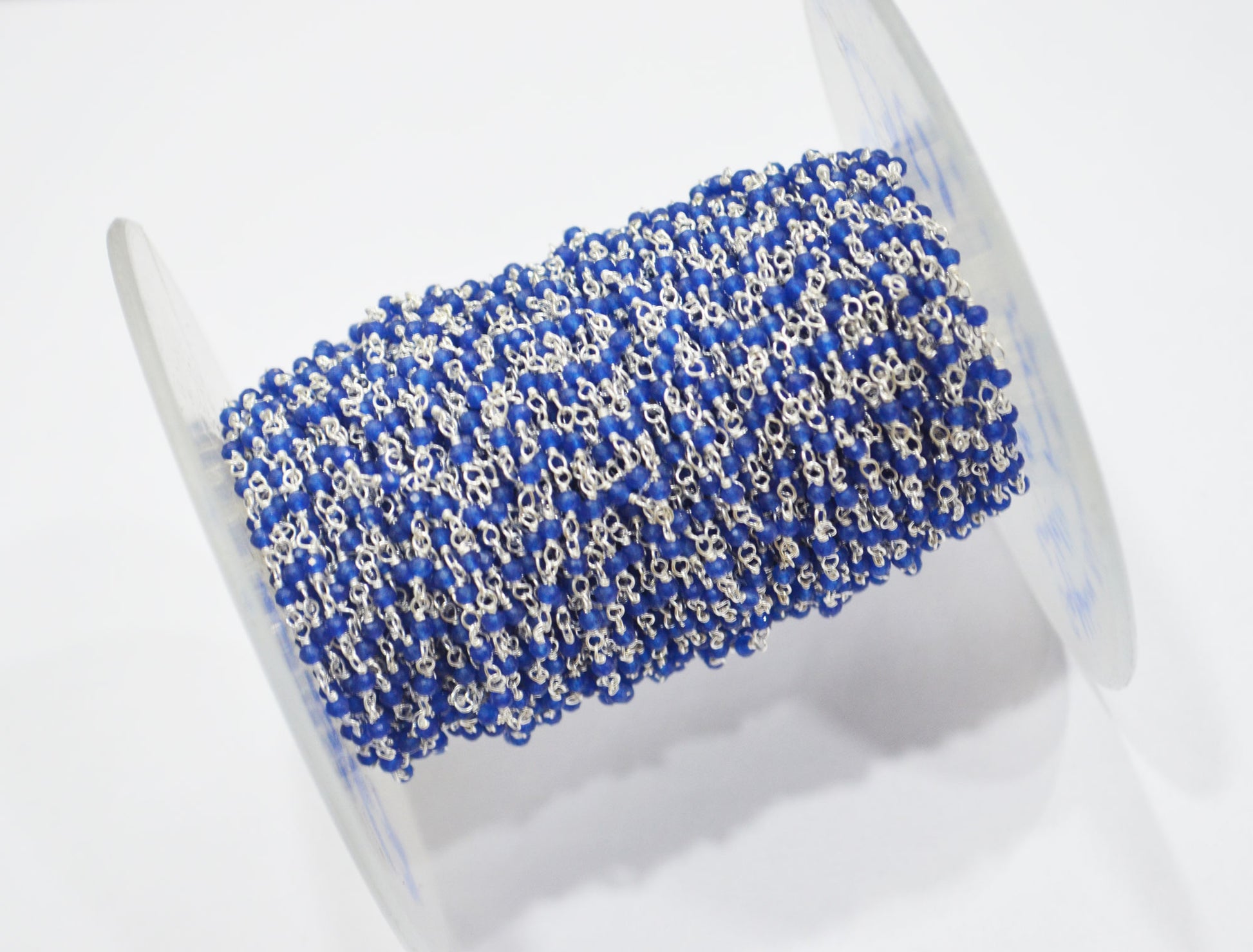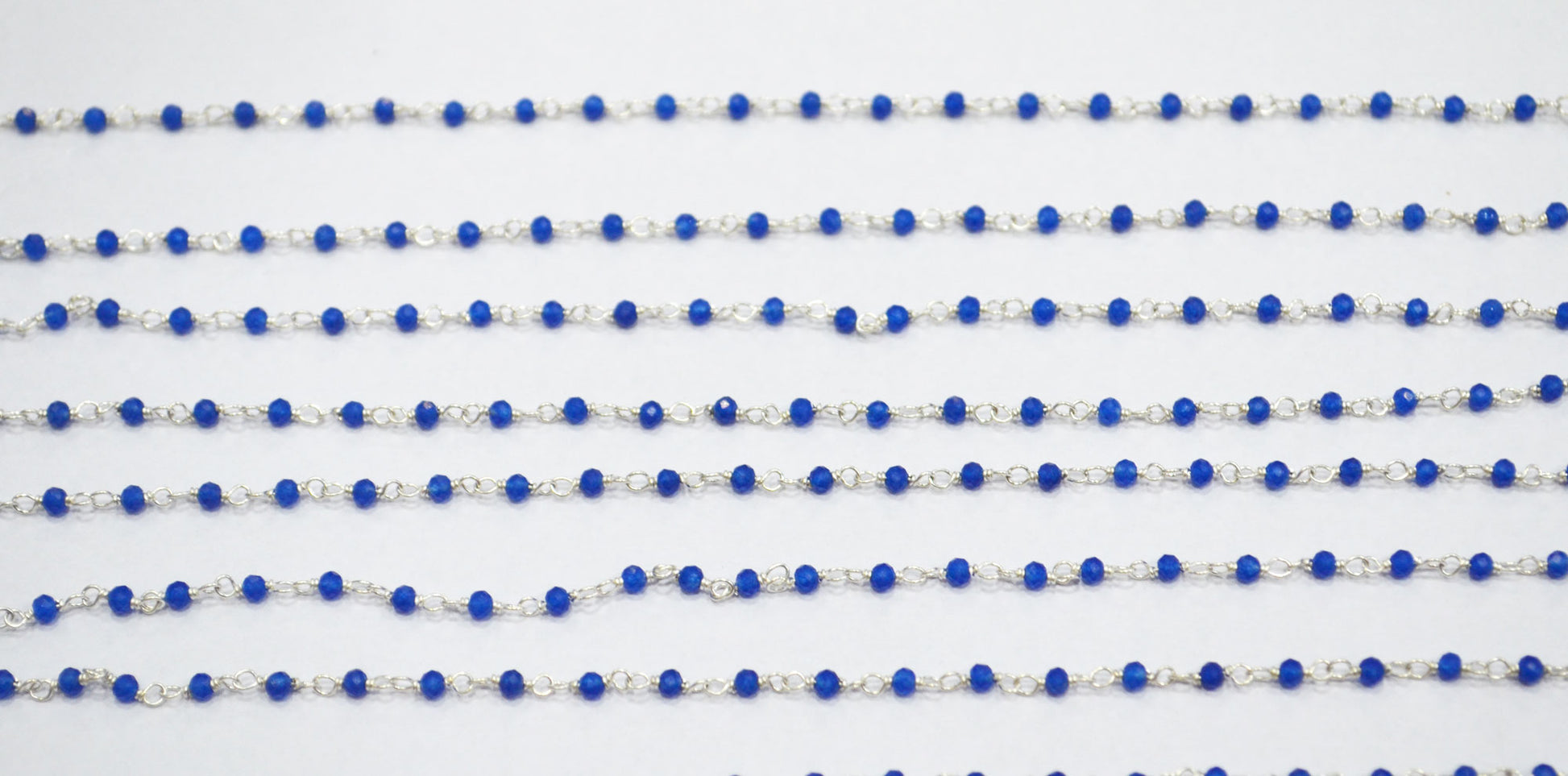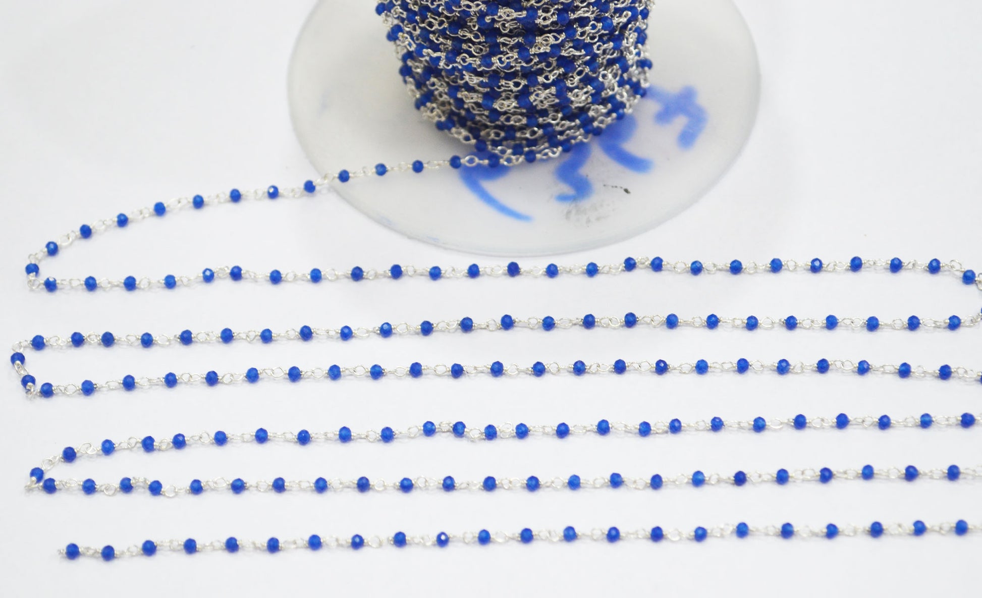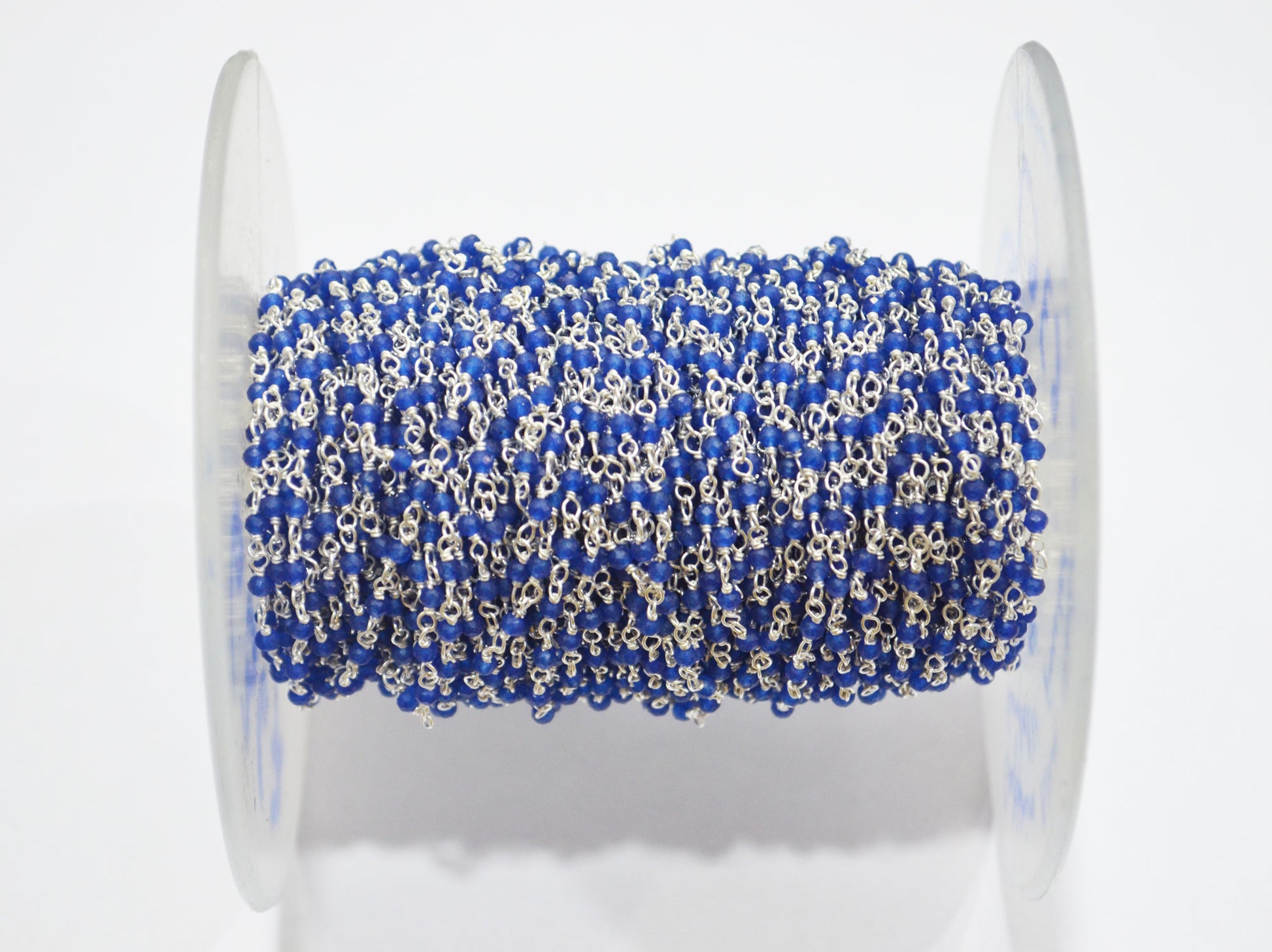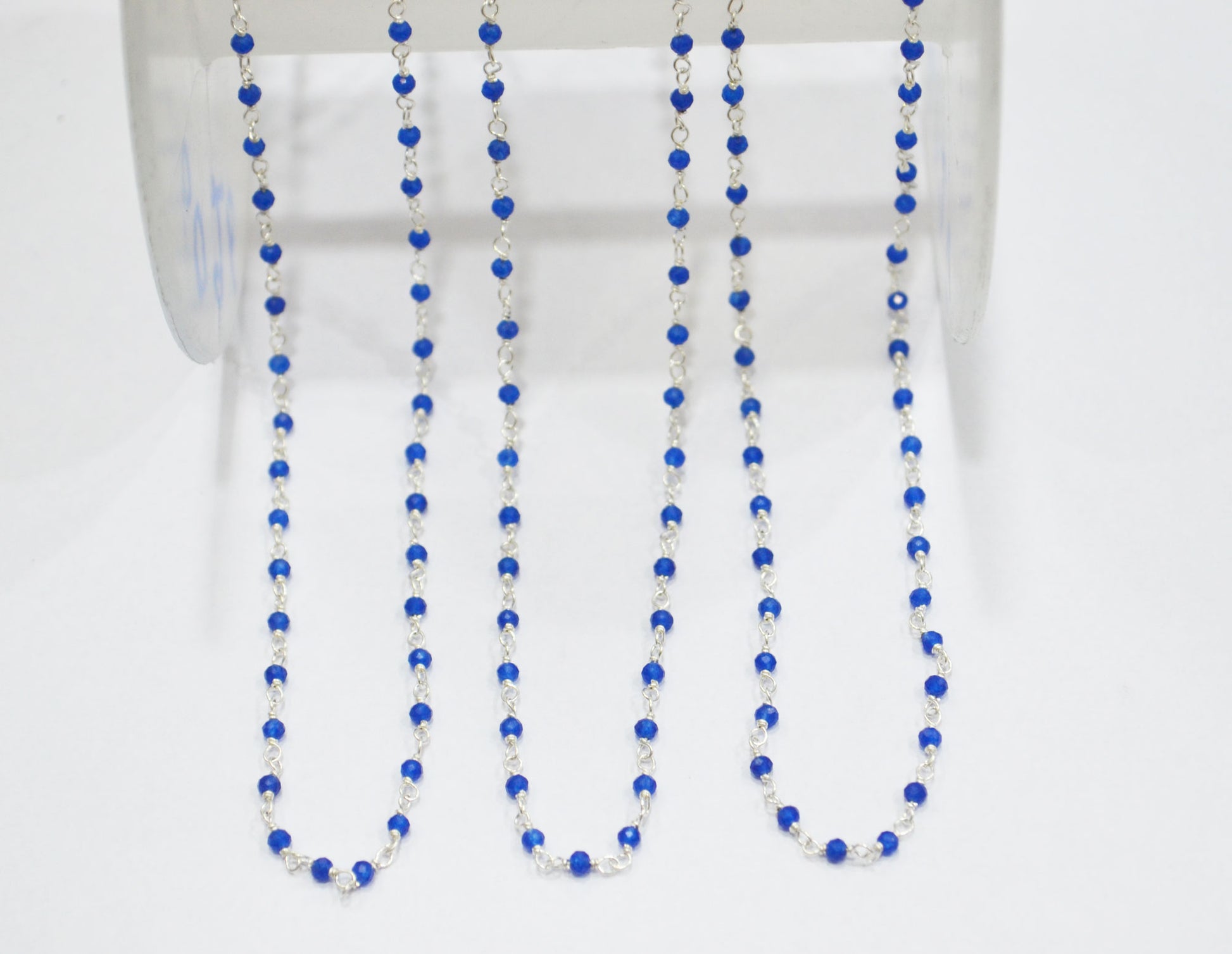 Sapphire Blue Jade Faceted Round Shape Rosary Beaded Chain , Sapphire Blue Jade Wire Wrapped Chain , 2.50 mm , RB-6367