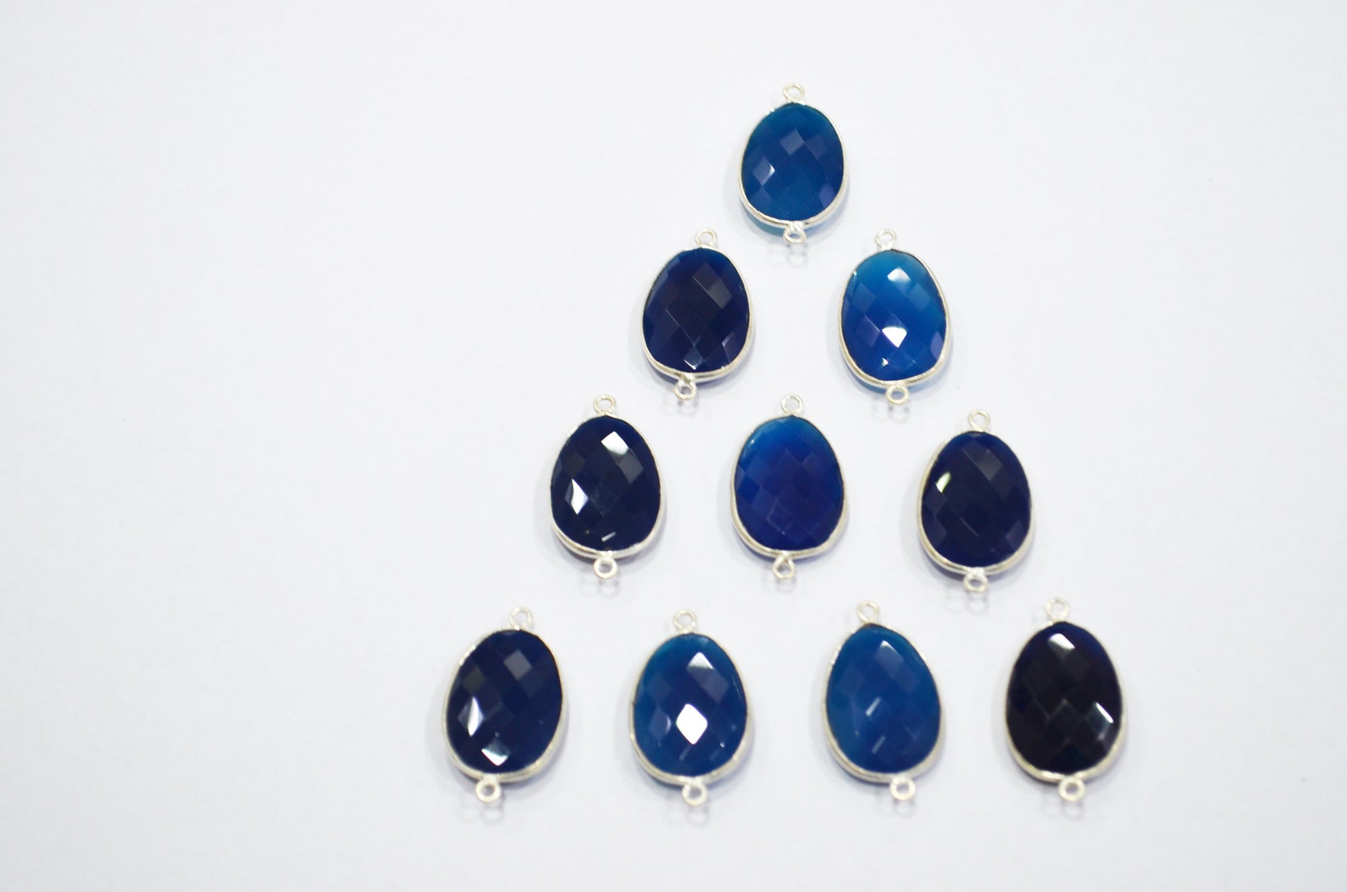 Sapphire Chalcedony Faceted Egg Shape Connector , Sapphire Chalcedony Double Bail Bezel Connector , Sold By Piece , 16x29 mm , RB-5400