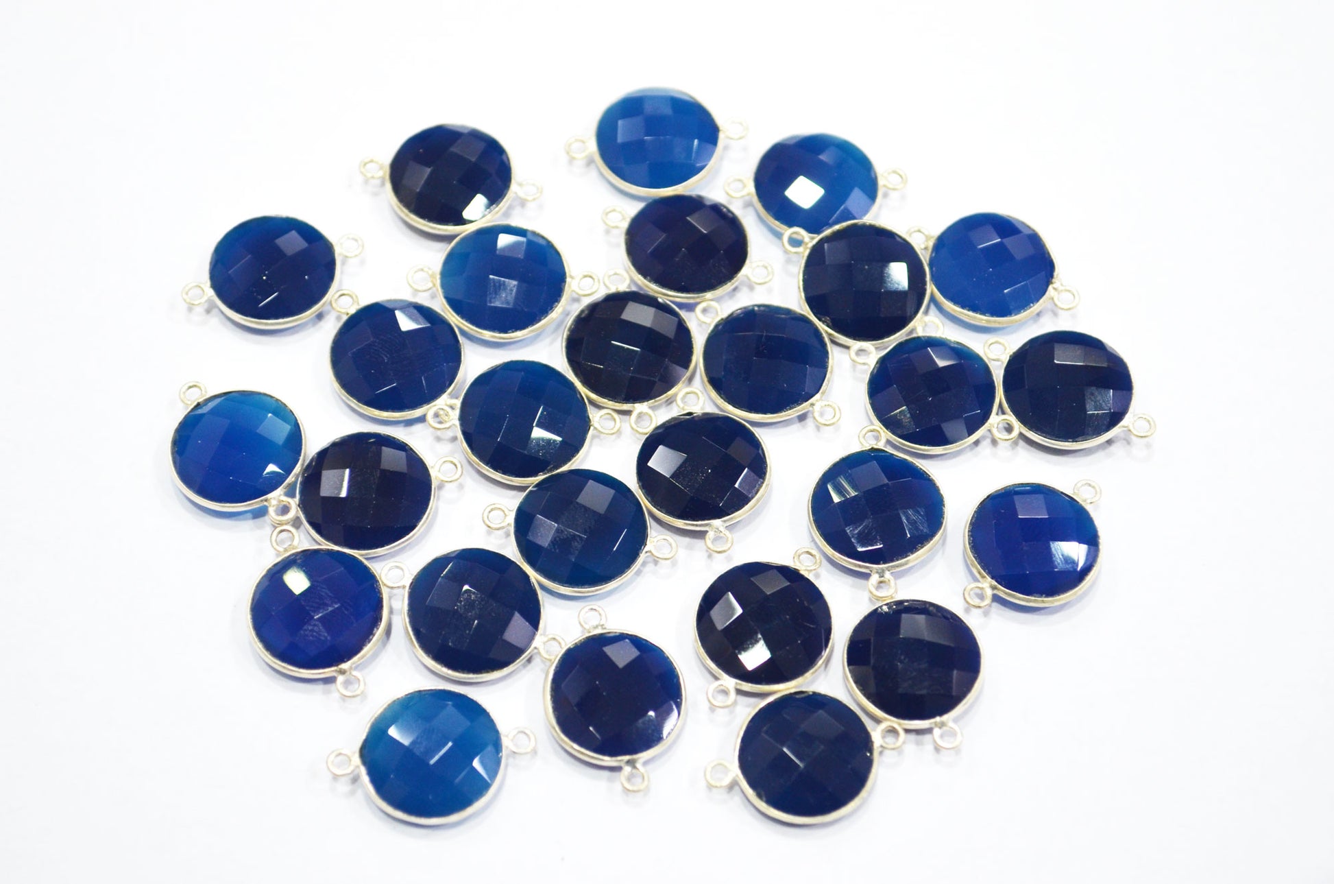 Sapphire Chalcedony Faceted Round Shape Connector , Sold By Piece , 15 mm , RB-5403