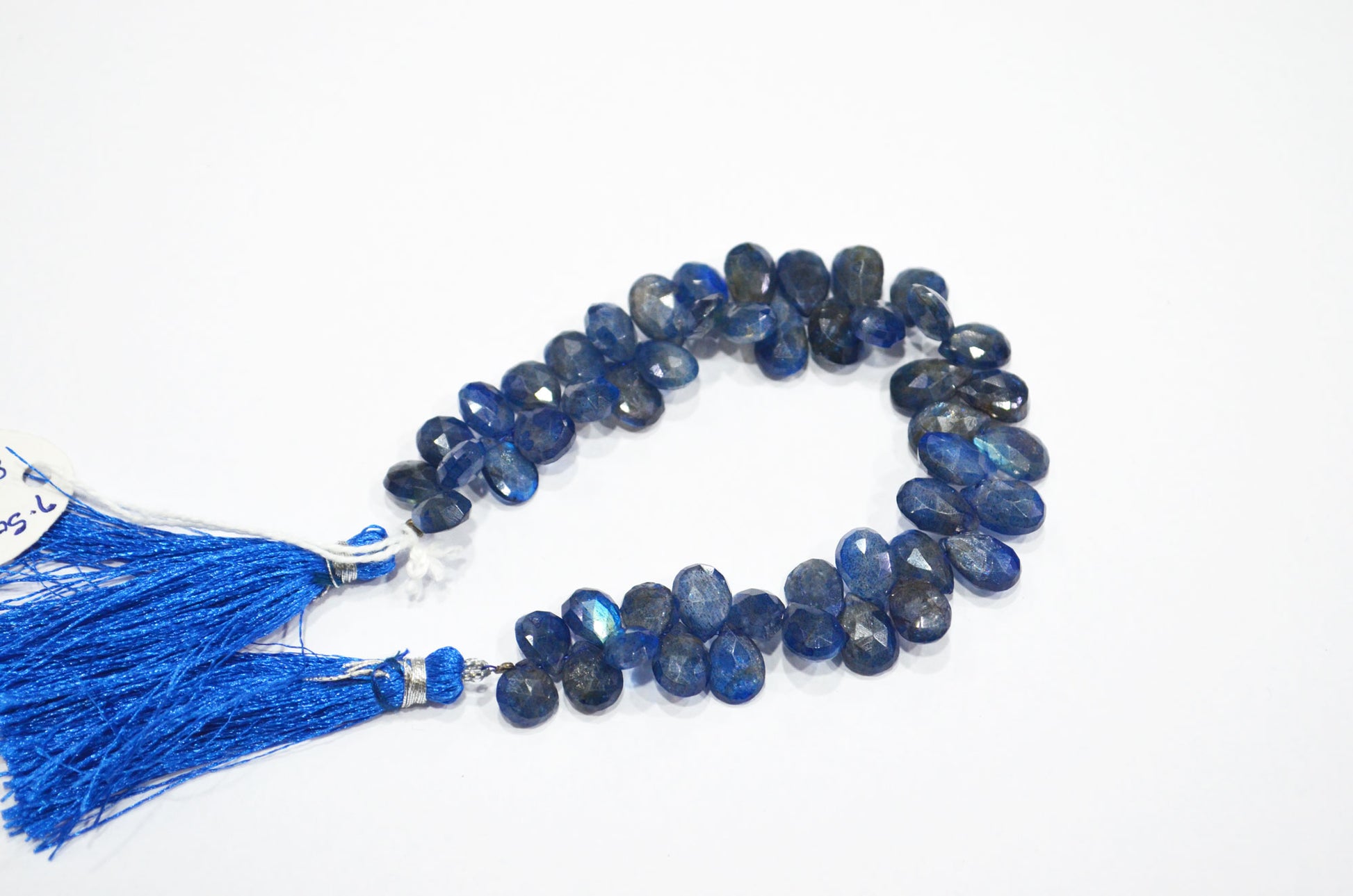 Sapphire Color Coated Labradorite Pear Shape Beads , Sapphire Color Coated Labradorite Faceted Briolettes , 7 Inches , 7.50x9.50 - 8x12 mm , 32255