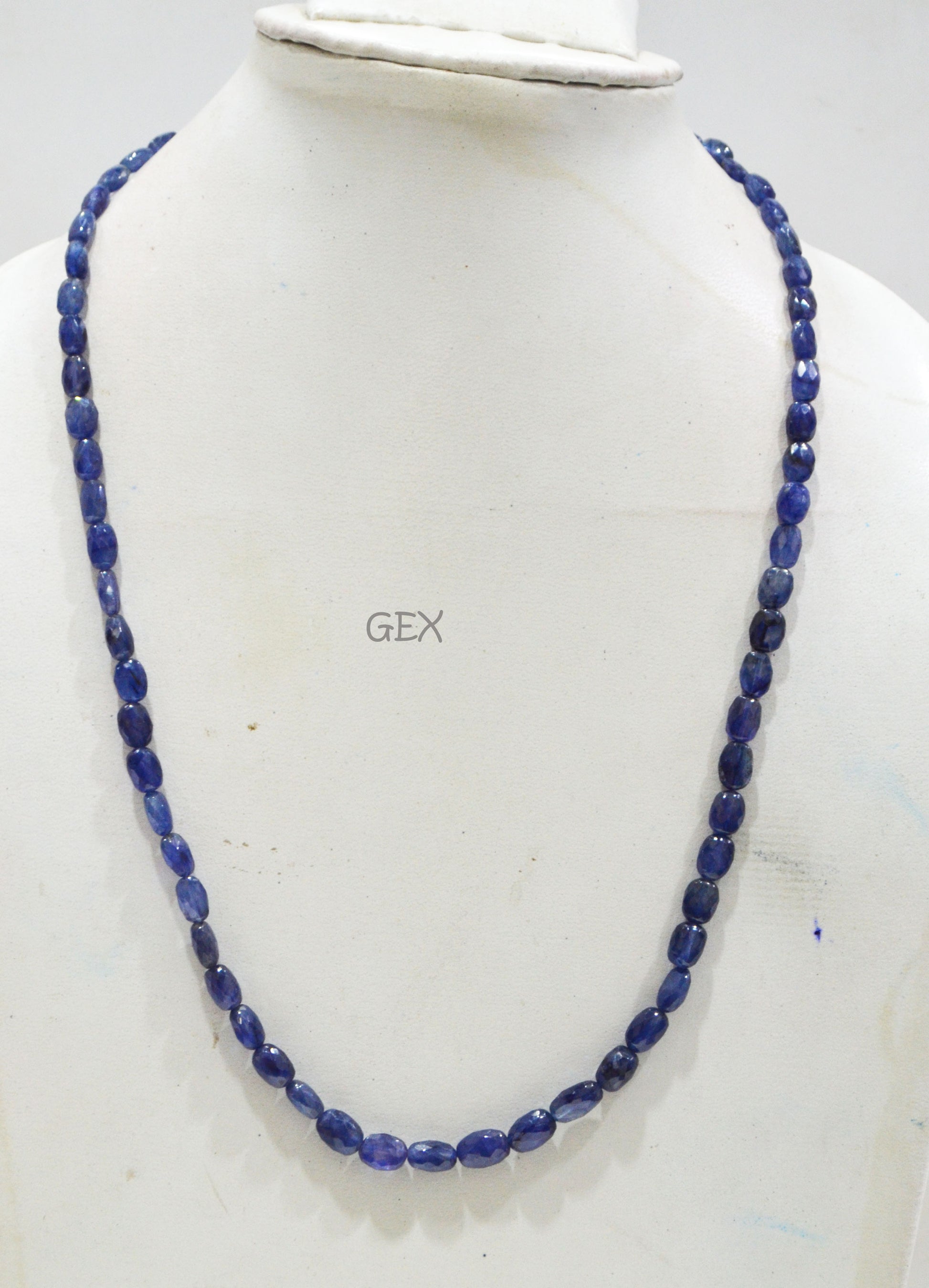 Sapphire Glass Filled Faceted Oval Nuggets Shape Necklace , Sapphire Glass Filled 1 Line Necklace 20.50 Inches Long With Adjustable Tussle , 5.50x7.50 - 7x10 mm , 32023