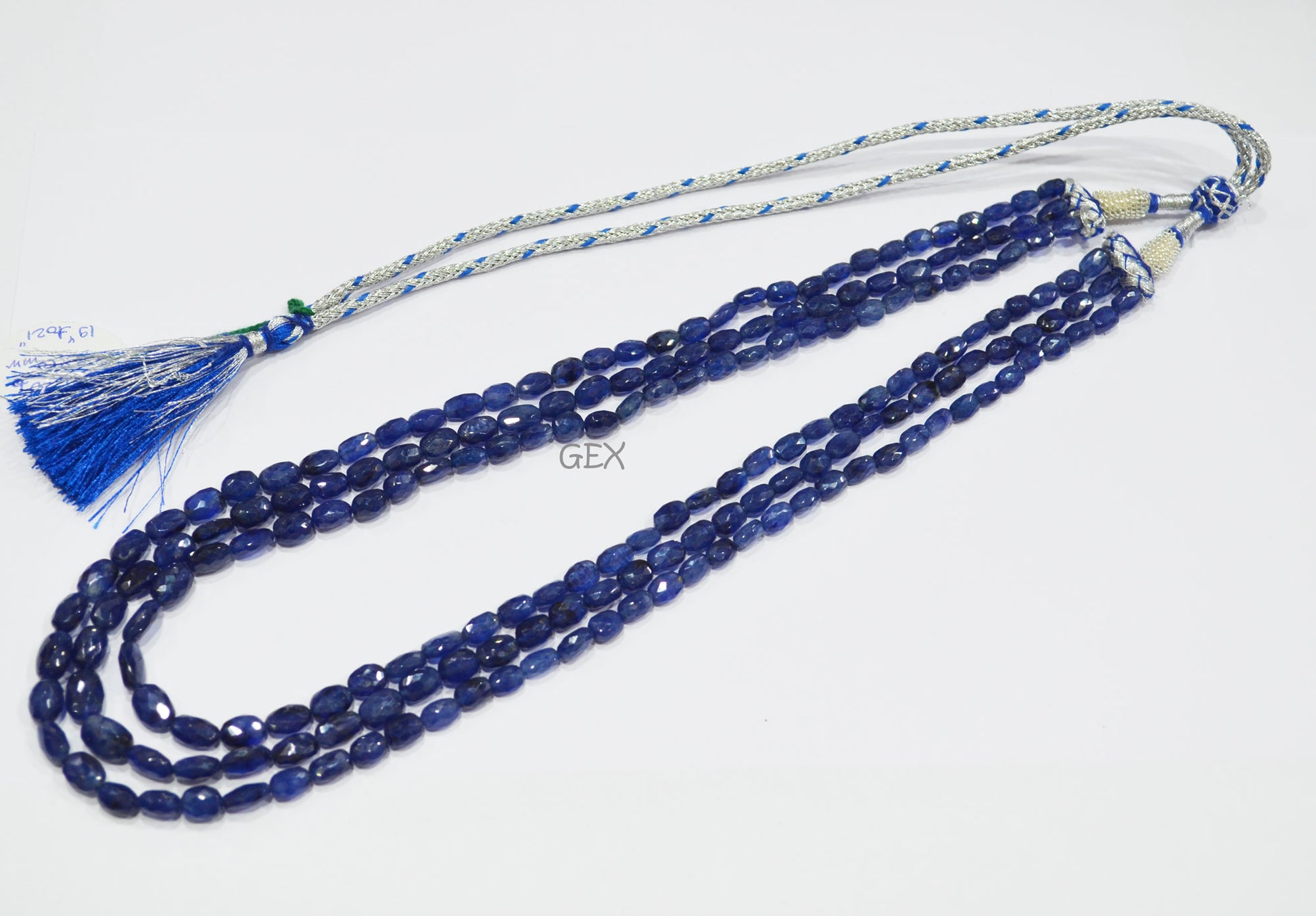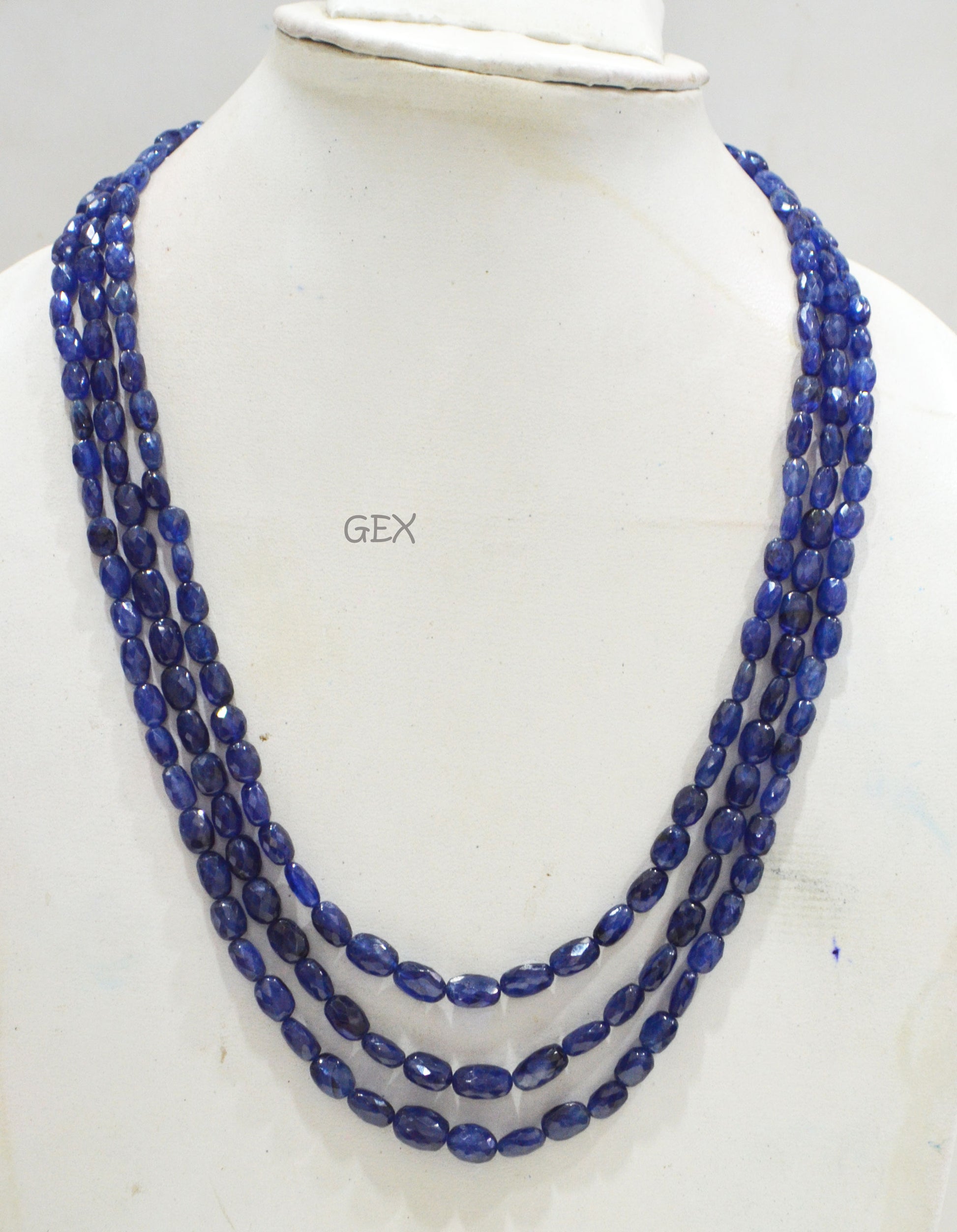 Sapphire Glass Filled Faceted Oval Nuggets Shape Necklace , Sapphire Glass Filled 3 Line Necklace 19 - 21 Inches Long With Adjustable Tussle , 5x6.50 - 8x10 mm , 32019