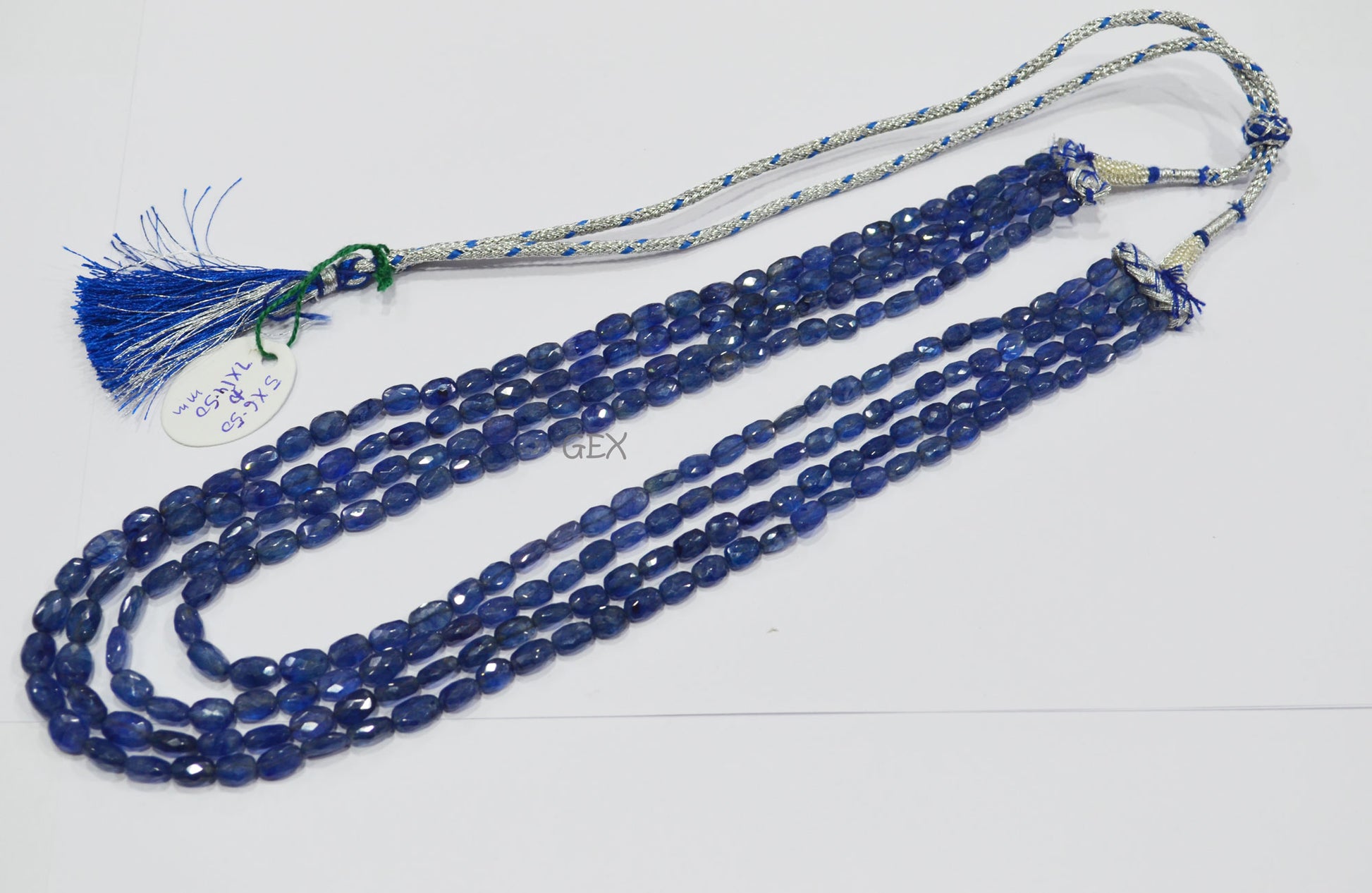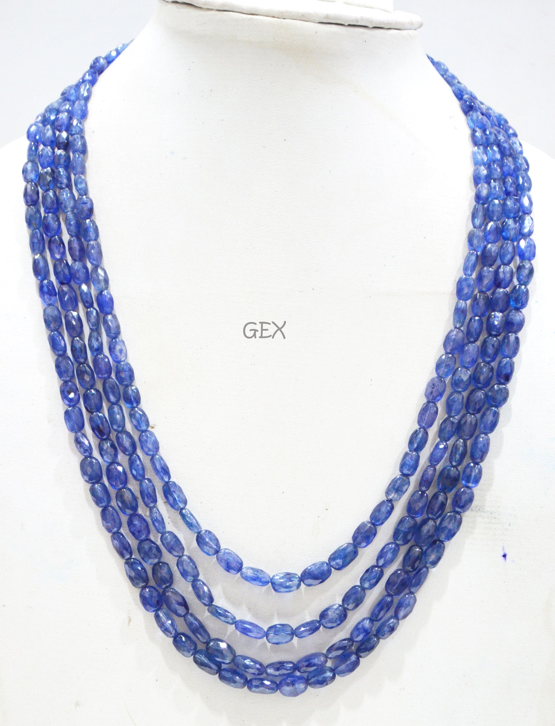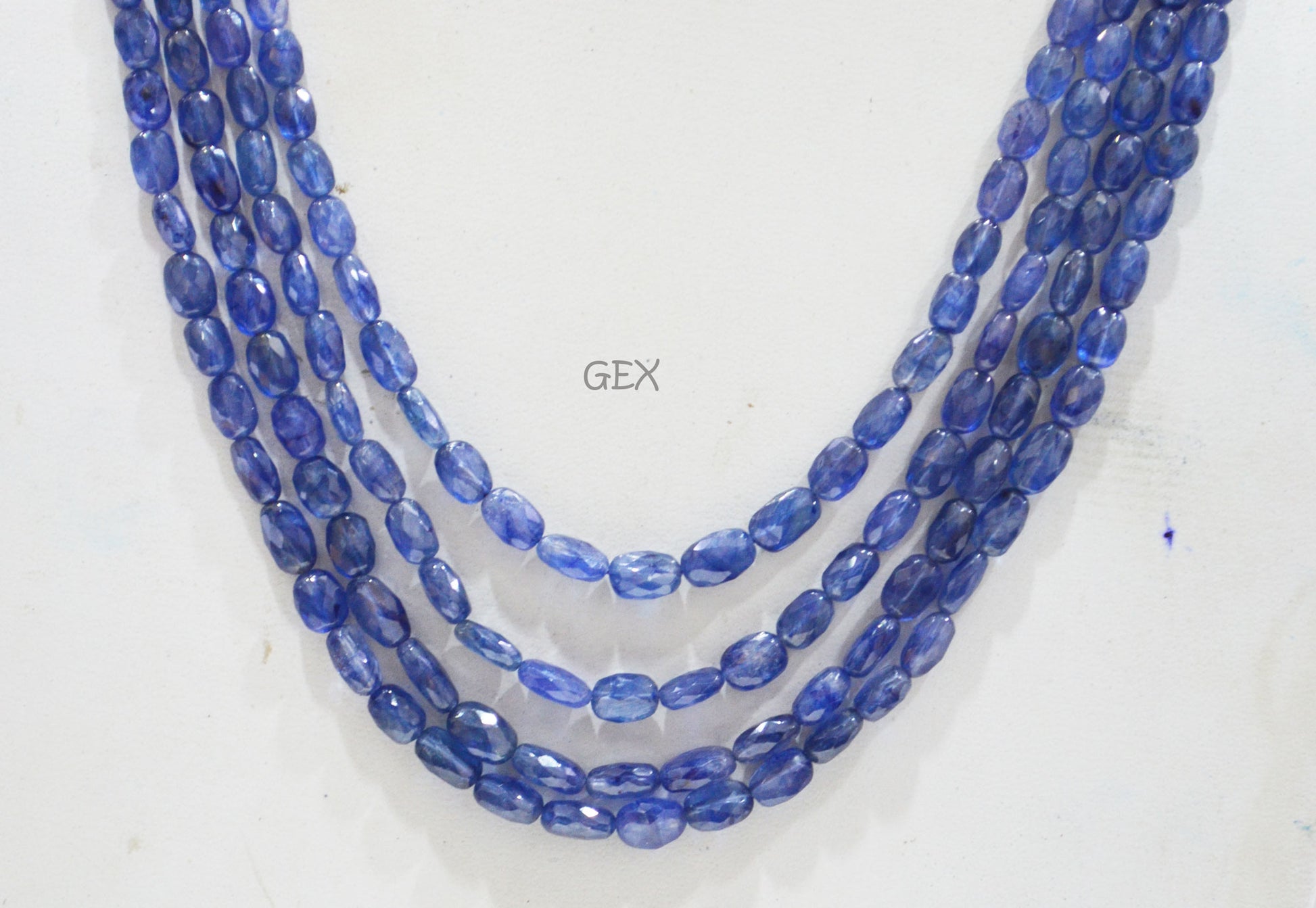 Sapphire Glass Filled Faceted Oval Nuggets Shape Necklace , Sapphire Glass Filled 4 Line Necklace 17 - 20 Inches Long With Adjustable Tussle , 5x6.50 - 7x14.50 mm , 32026