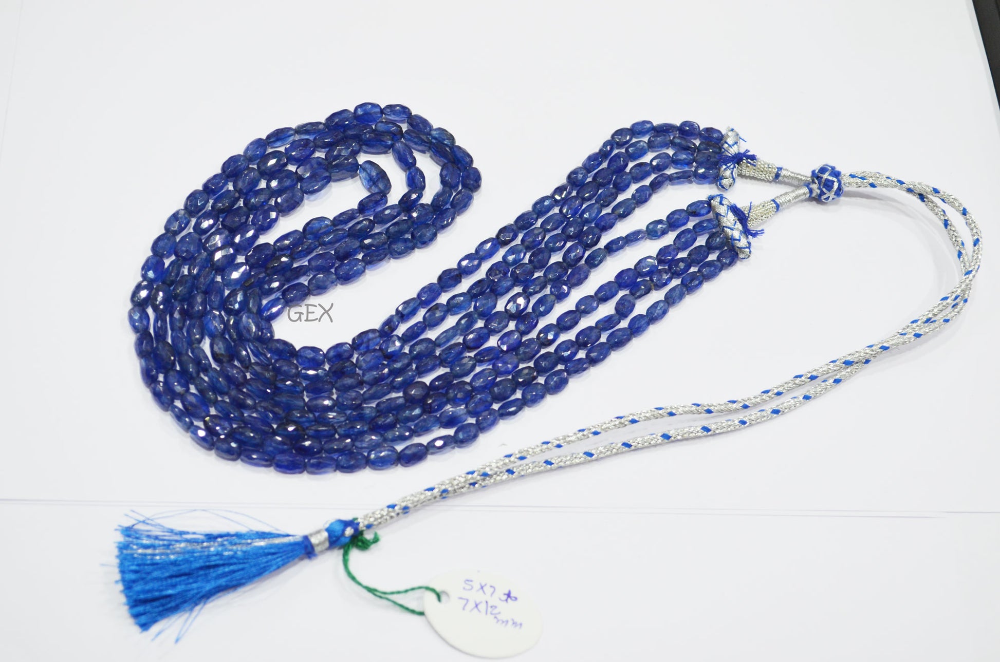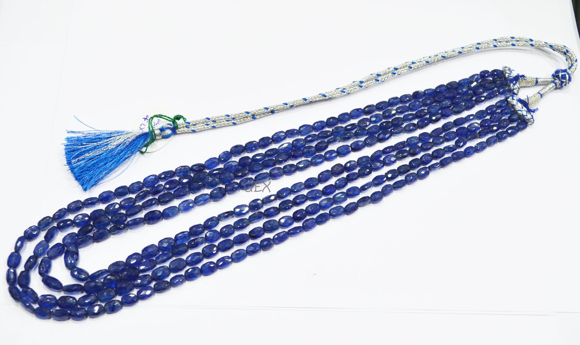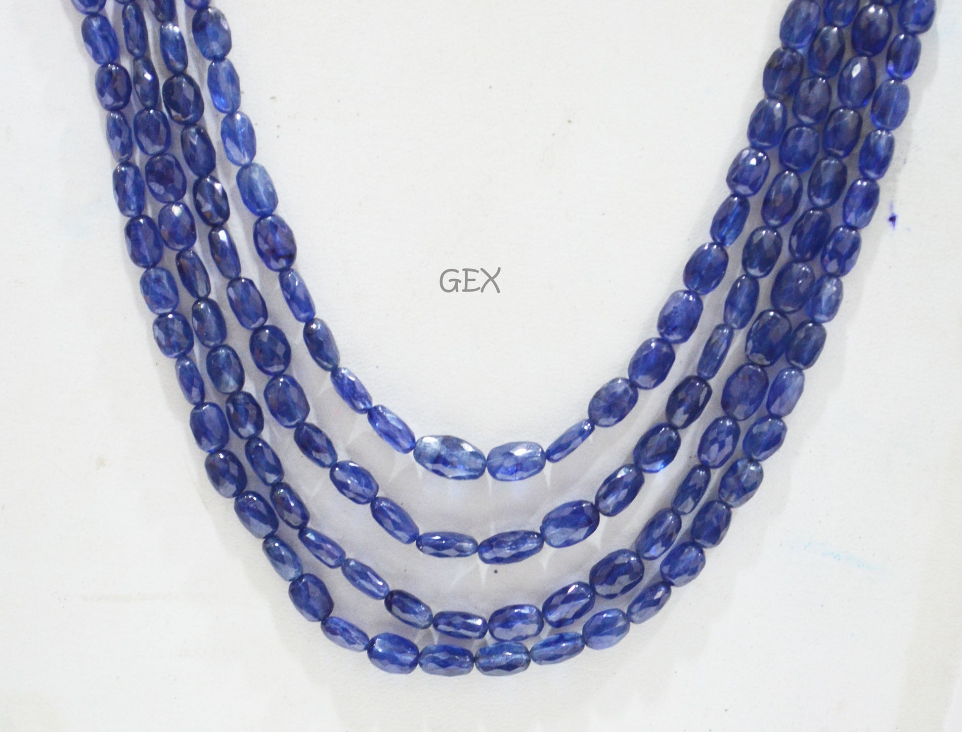 Sapphire Glass Filled Faceted Oval Nuggets Shape Necklace , Sapphire Glass Filled 4 Line Necklace 20 - 24 Inches Long With Adjustable Tussle , 5x7 - 7x12 mm , 32024