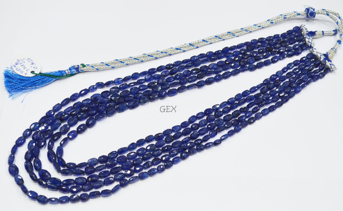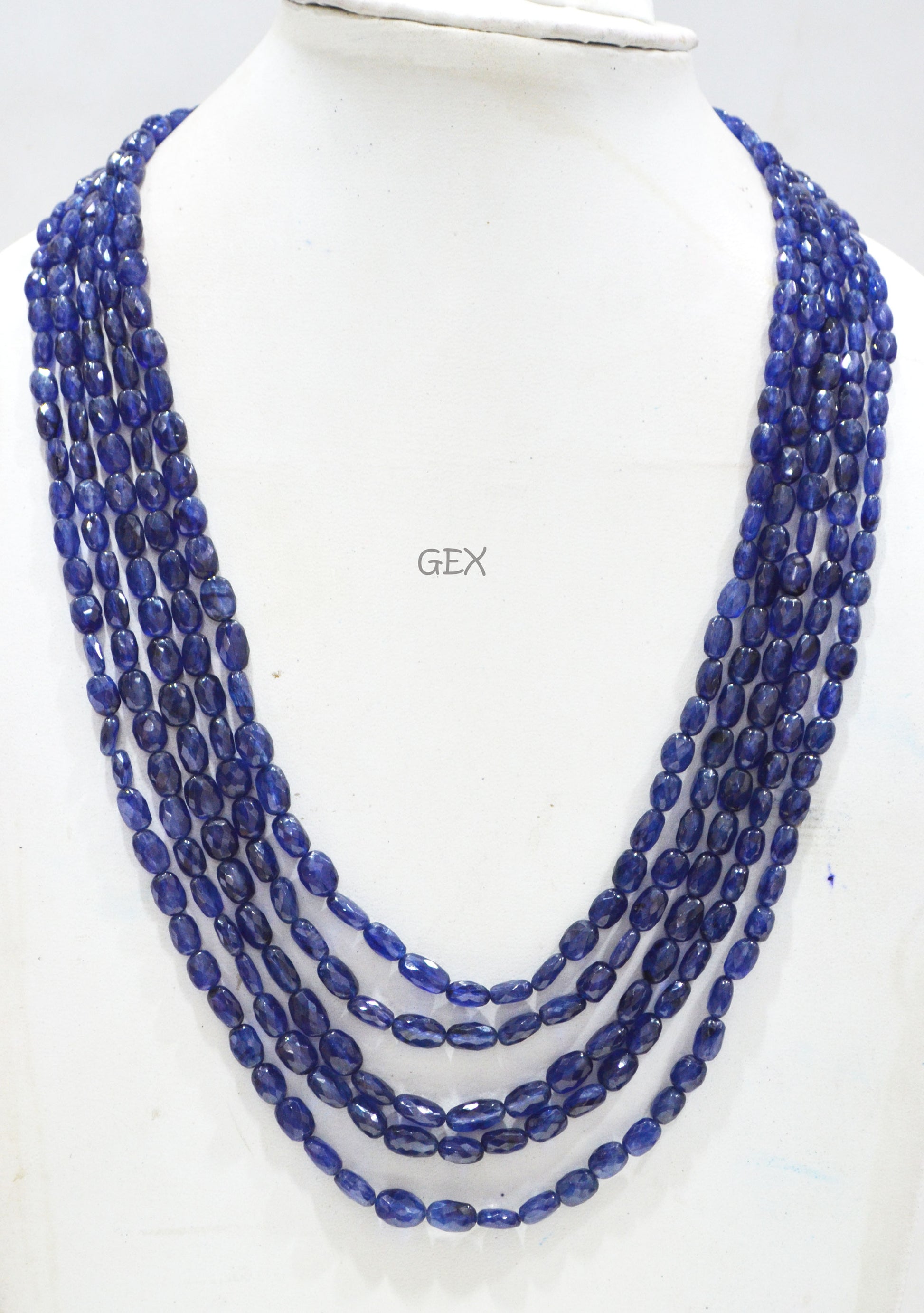 Sapphire Glass Filled Faceted Oval Nuggets Shape Necklace , Sapphire Glass Filled 5 Line Necklace 19 - 23 Inches Long With Adjustable Tussle , 4.50x7 - 7.50x11.50 mm , 32018