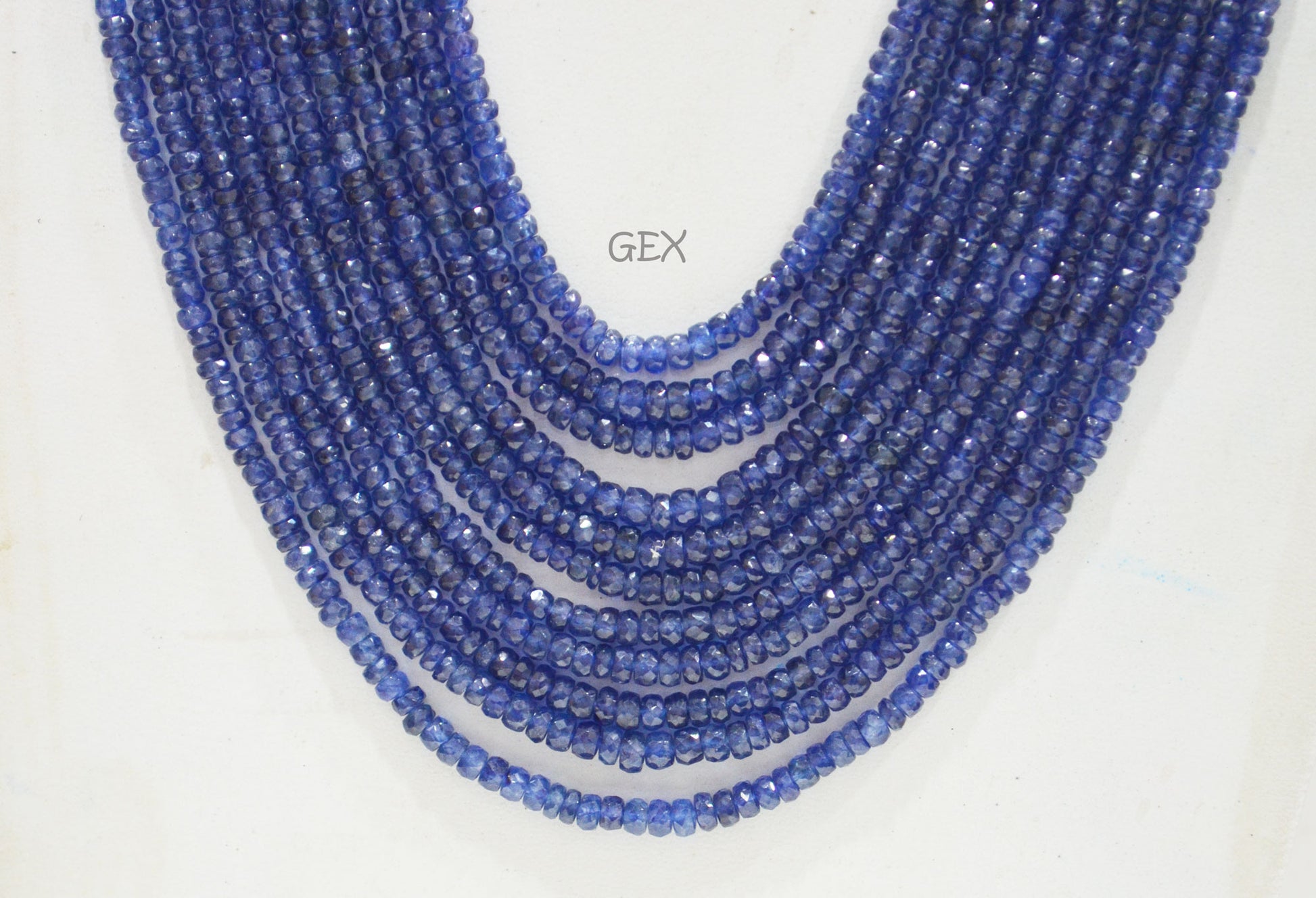 Sapphire Glass Filled Faceted Rondelle Shape Necklace , Sapphire Glass Filled 11 Line Necklace 16 - 22 Inches Long With Adjustable Tussle , 3 - 5 mm , 32032