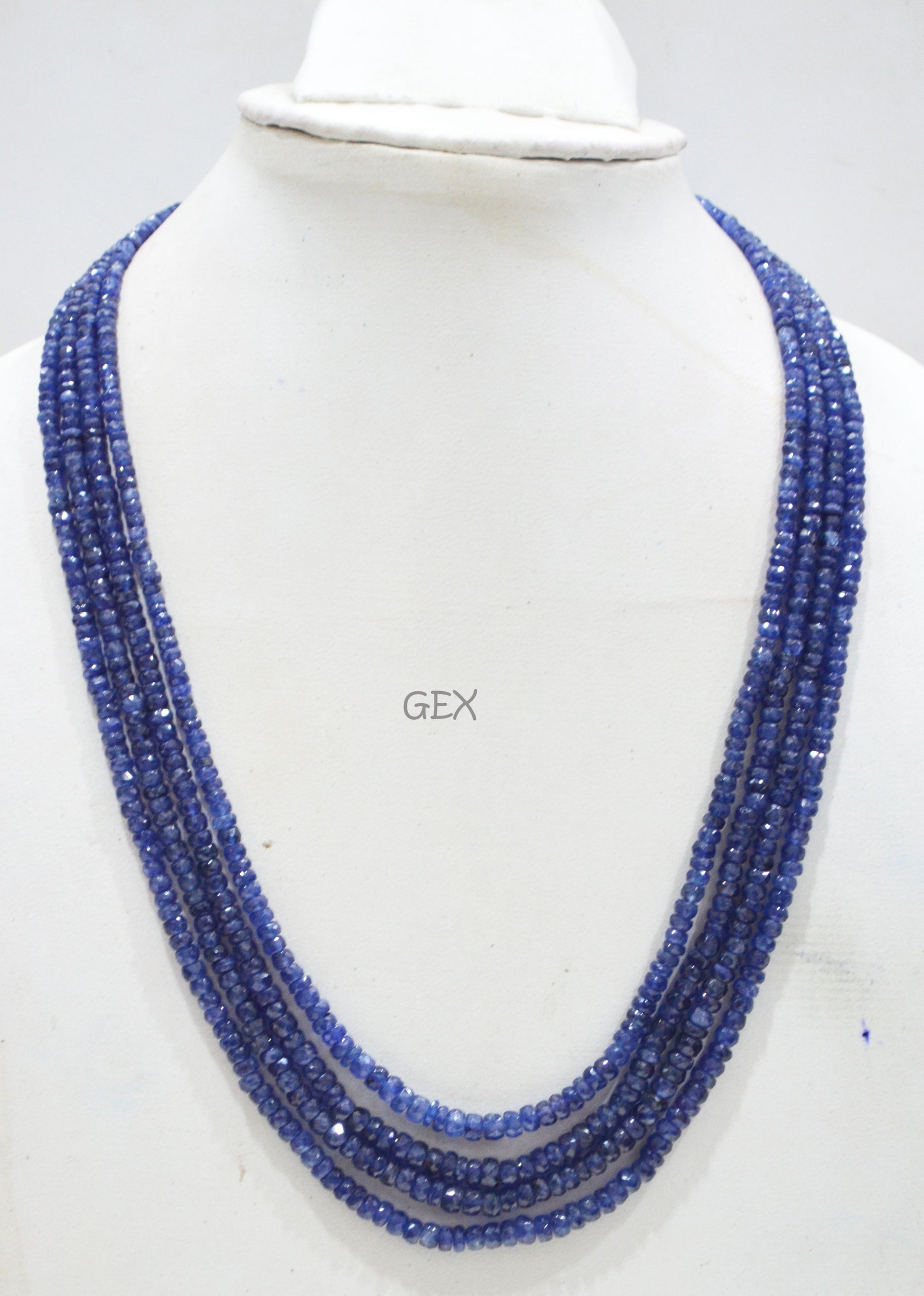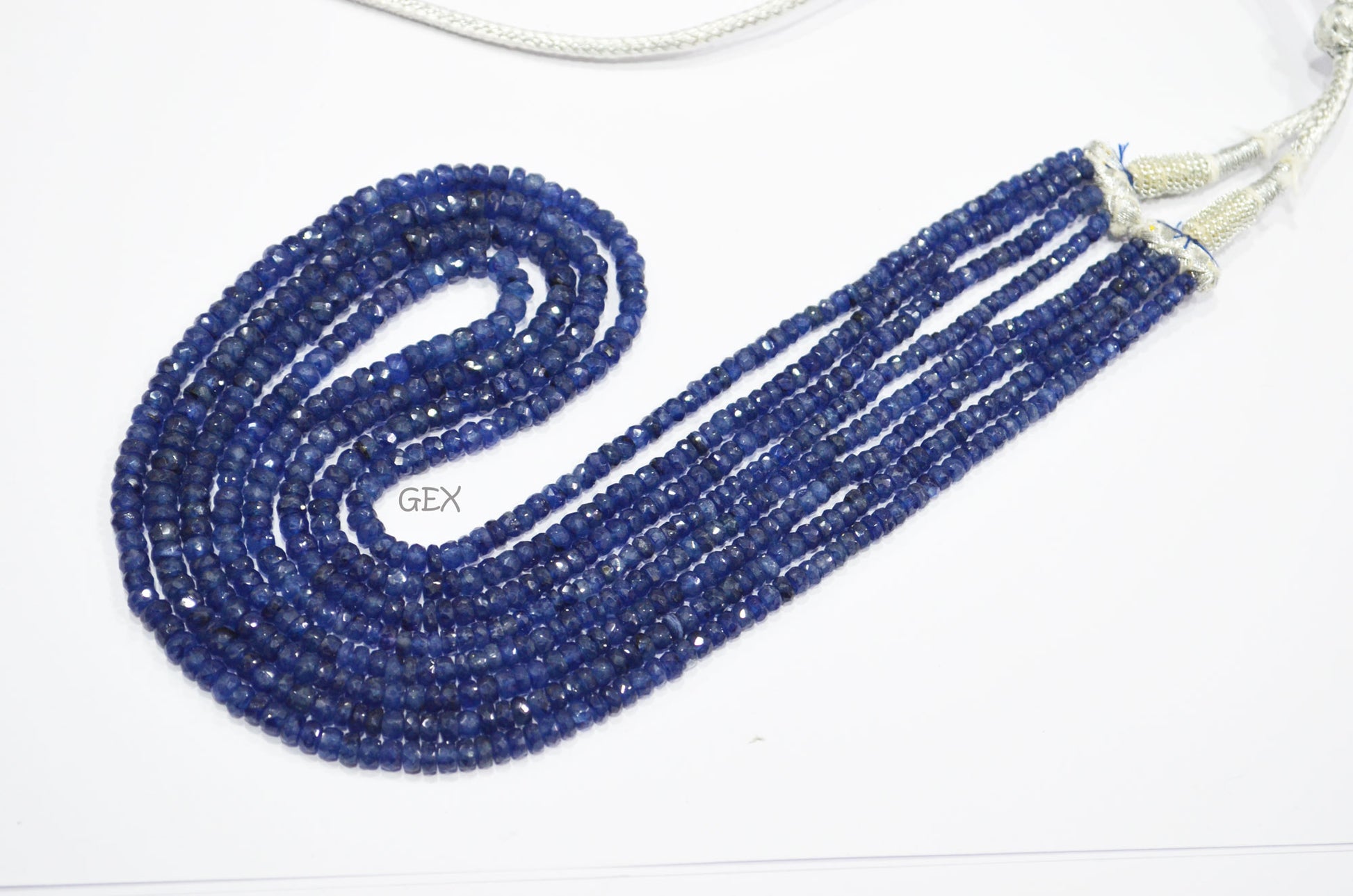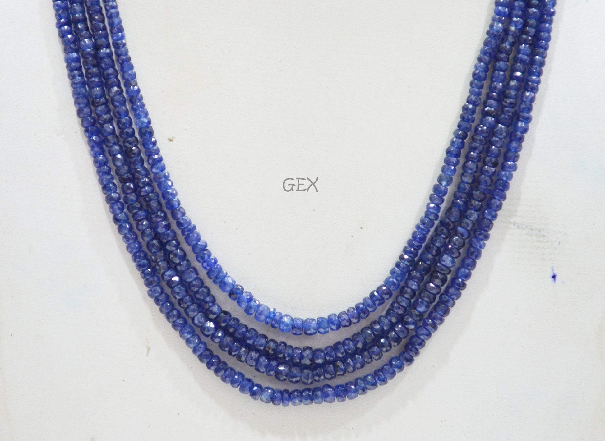 Sapphire Glass Filled Faceted Rondelle Shape Necklace , Sapphire Glass Filled 4 Line Necklace 18 - 20 Inches Long With Adjustable Tussle , 3.50 - 5 mm , 32029