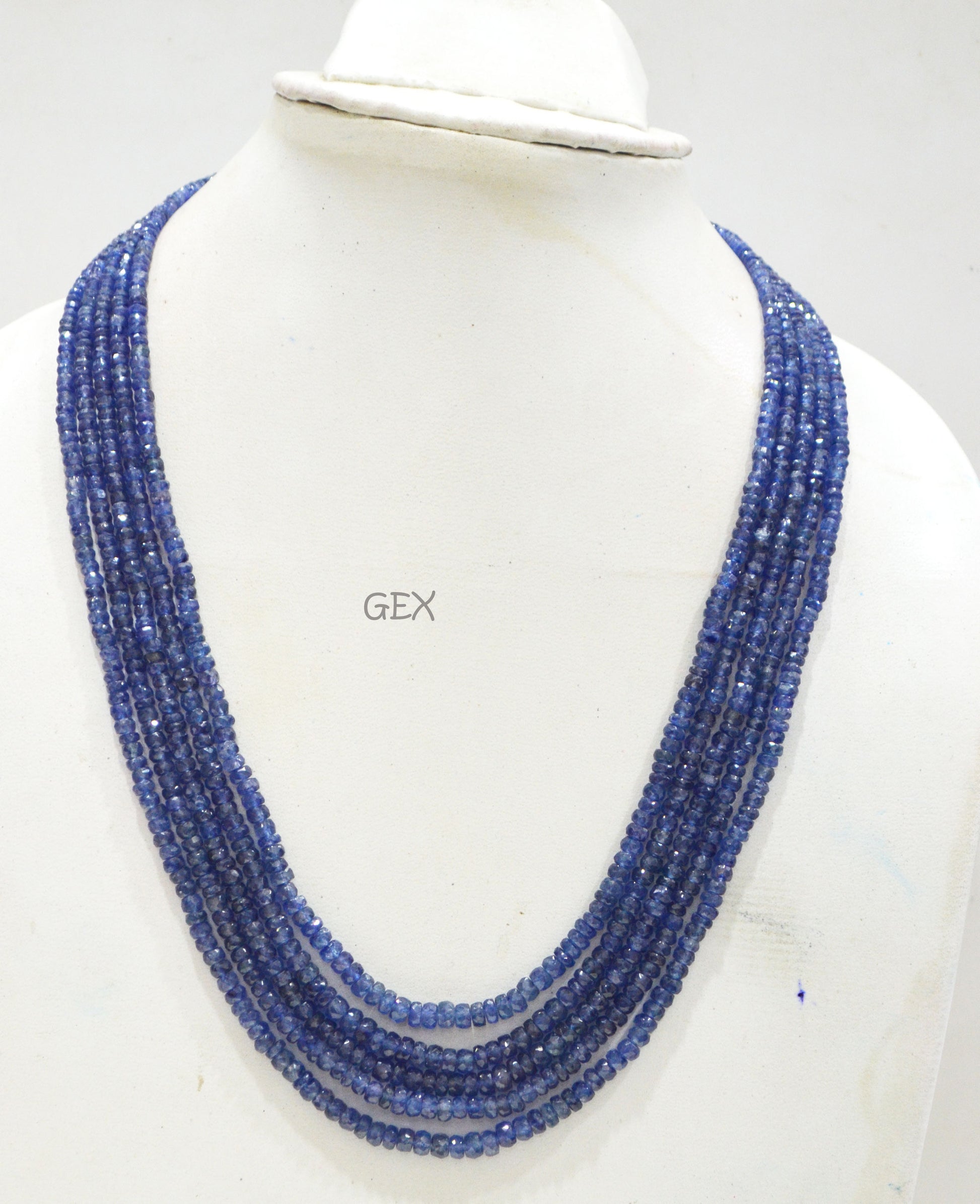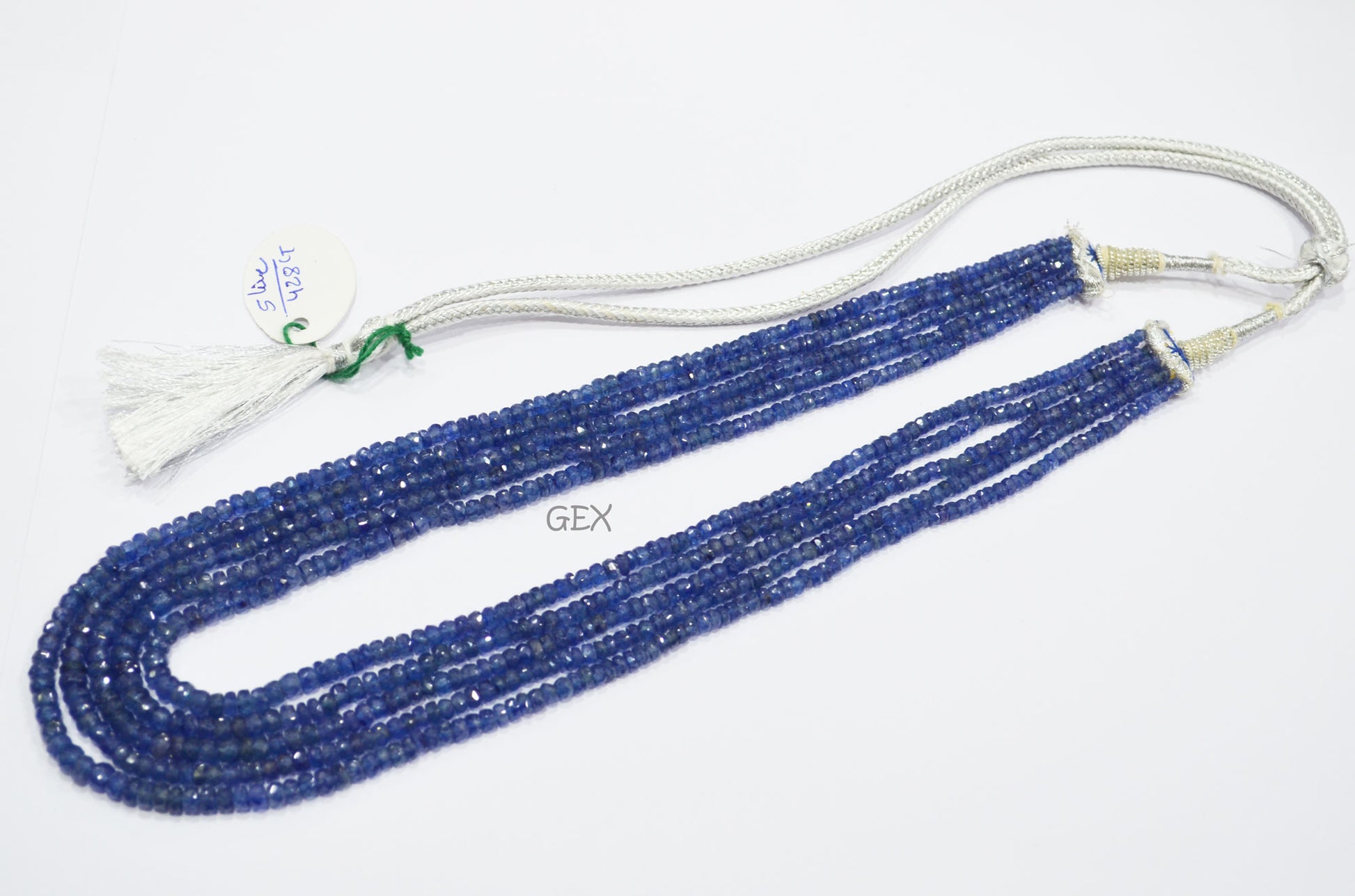 Sapphire Glass Filled Faceted Rondelle Shape Necklace , Sapphire Glass Filled 5 Line Necklace 16.50 - 19 Inches Long With Adjustable Tussle , 3 - 5 mm , 32033