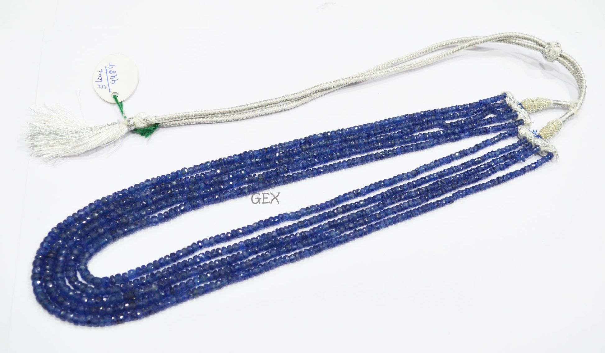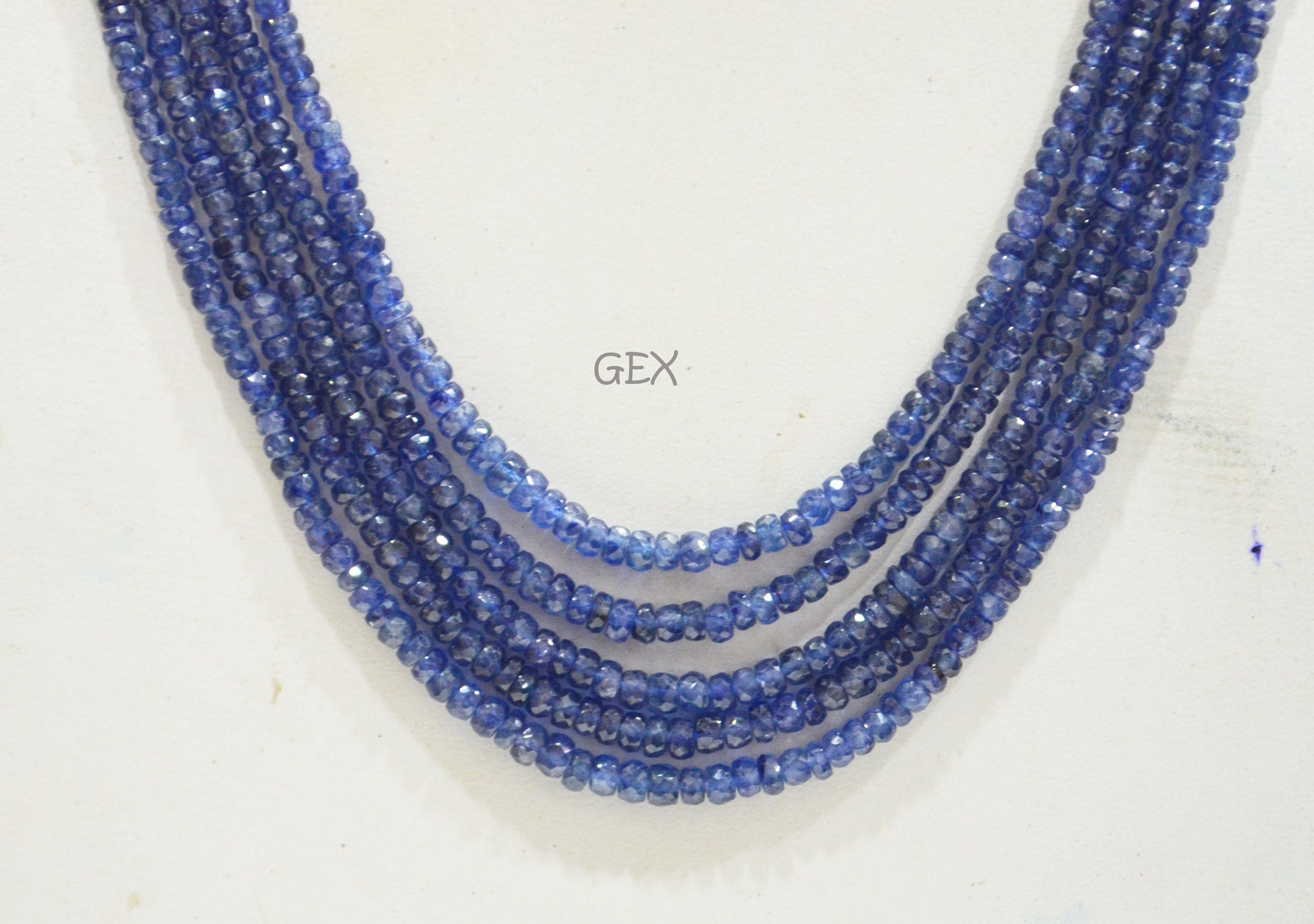 Sapphire Glass Filled Faceted Rondelle Shape Necklace , Sapphire Glass Filled 5 Line Necklace 18 - 20 Inches Long With Adjustable Tussle , 3 - 5 mm , 32040