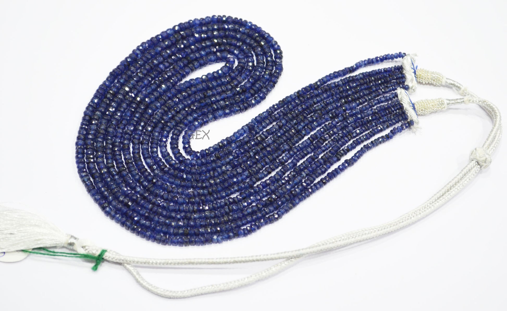 Sapphire Glass Filled Faceted Rondelle Shape Necklace , Sapphire Glass Filled 6 Line Necklace 19 - 22 Inches Long With Adjustable Tussle , 3 - 5 mm , 32039