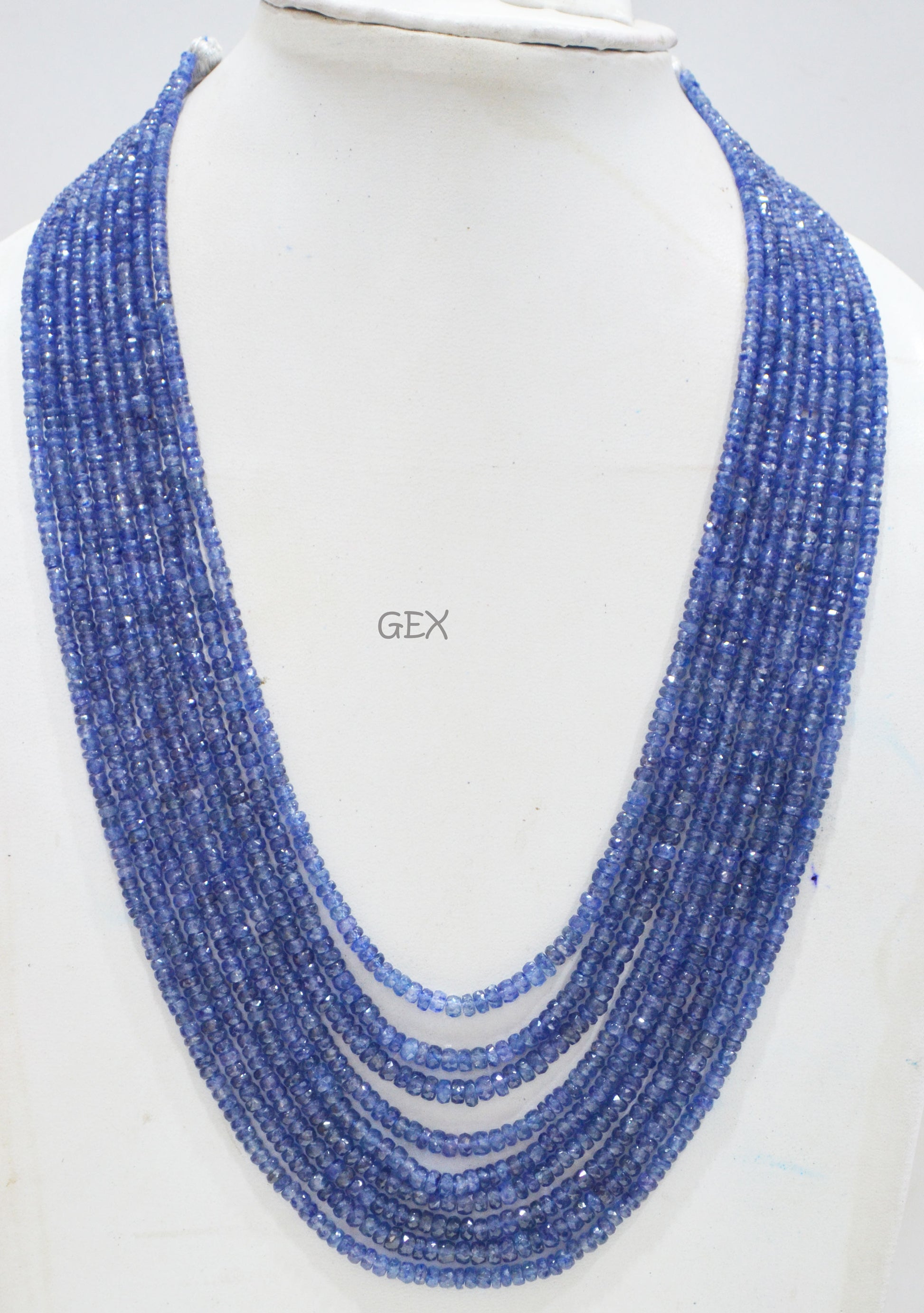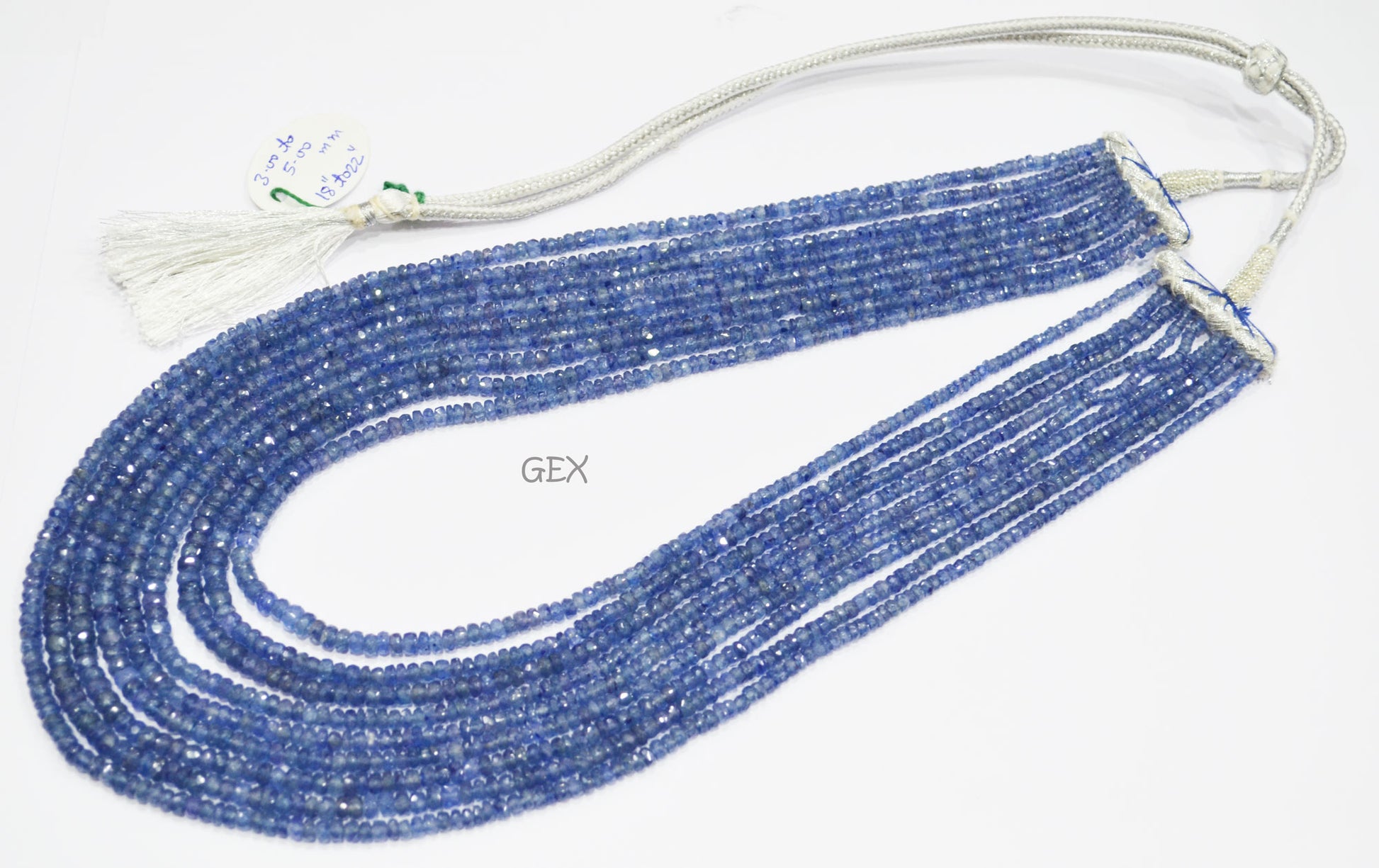 Sapphire Glass Filled Faceted Rondelle Shape Necklace , Sapphire Glass Filled 9 Line Necklace 18 - 22 Inches Long With Adjustable Tussle , 3 - 5 mm , 32034