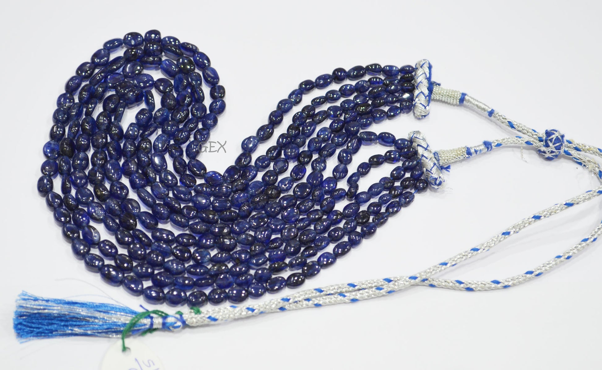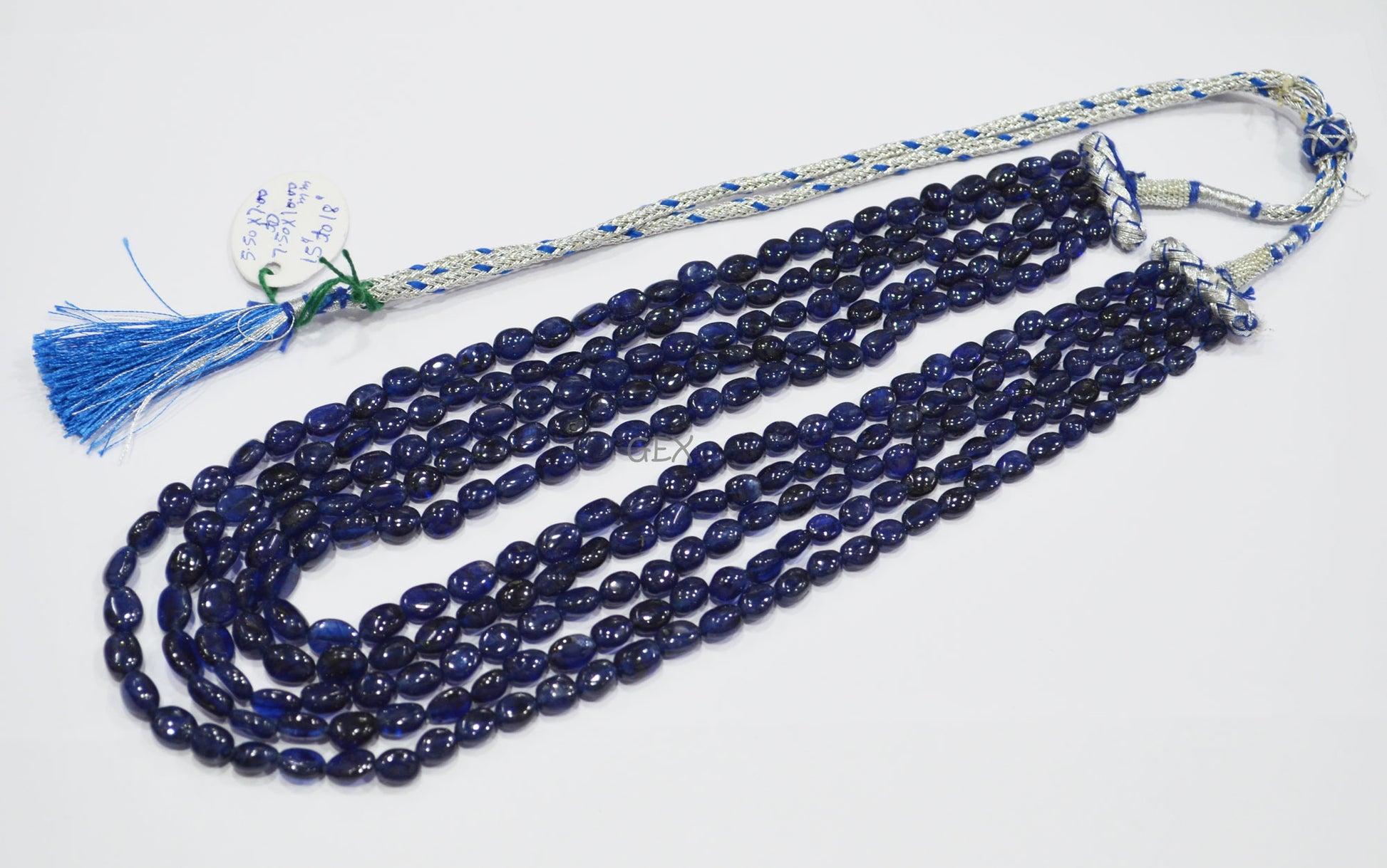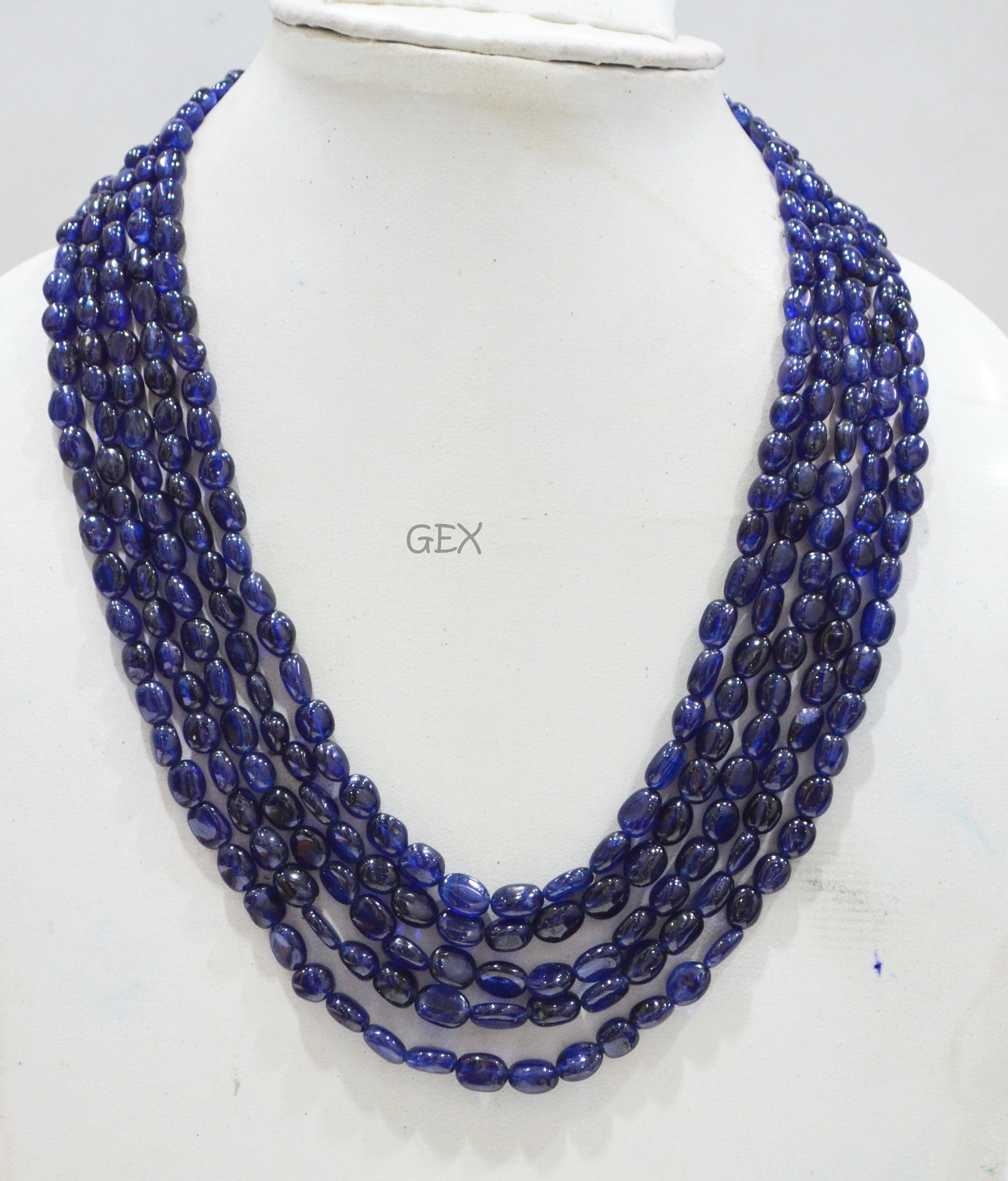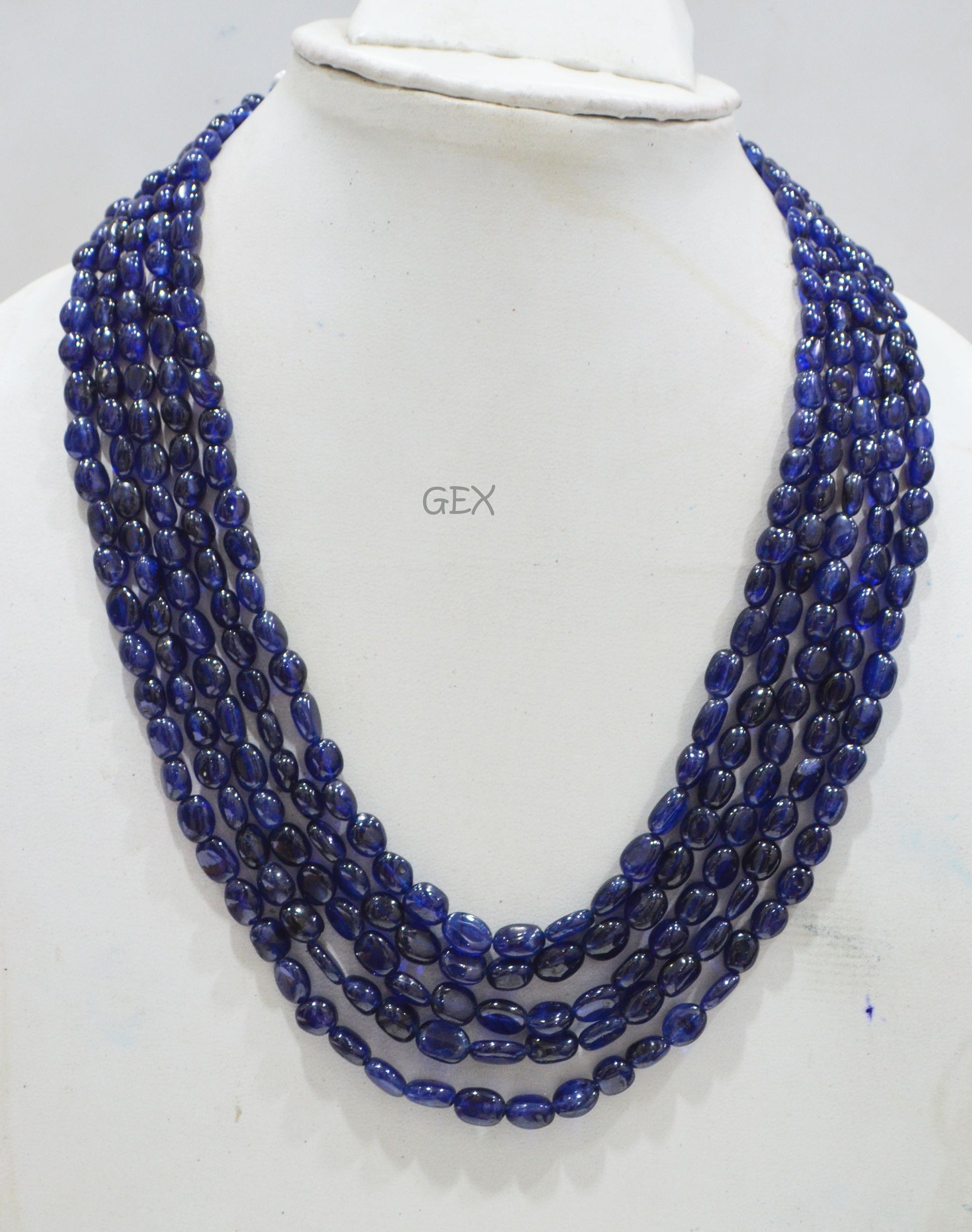 Sapphire Glass Filled Smooth Oval Nuggets Shape Necklace , Sapphire Glass Filled 5 Line Necklace 15 - 18 Inches Long With Adjustable Tussle , 5.50x7 - 7.50x10 mm , 32015