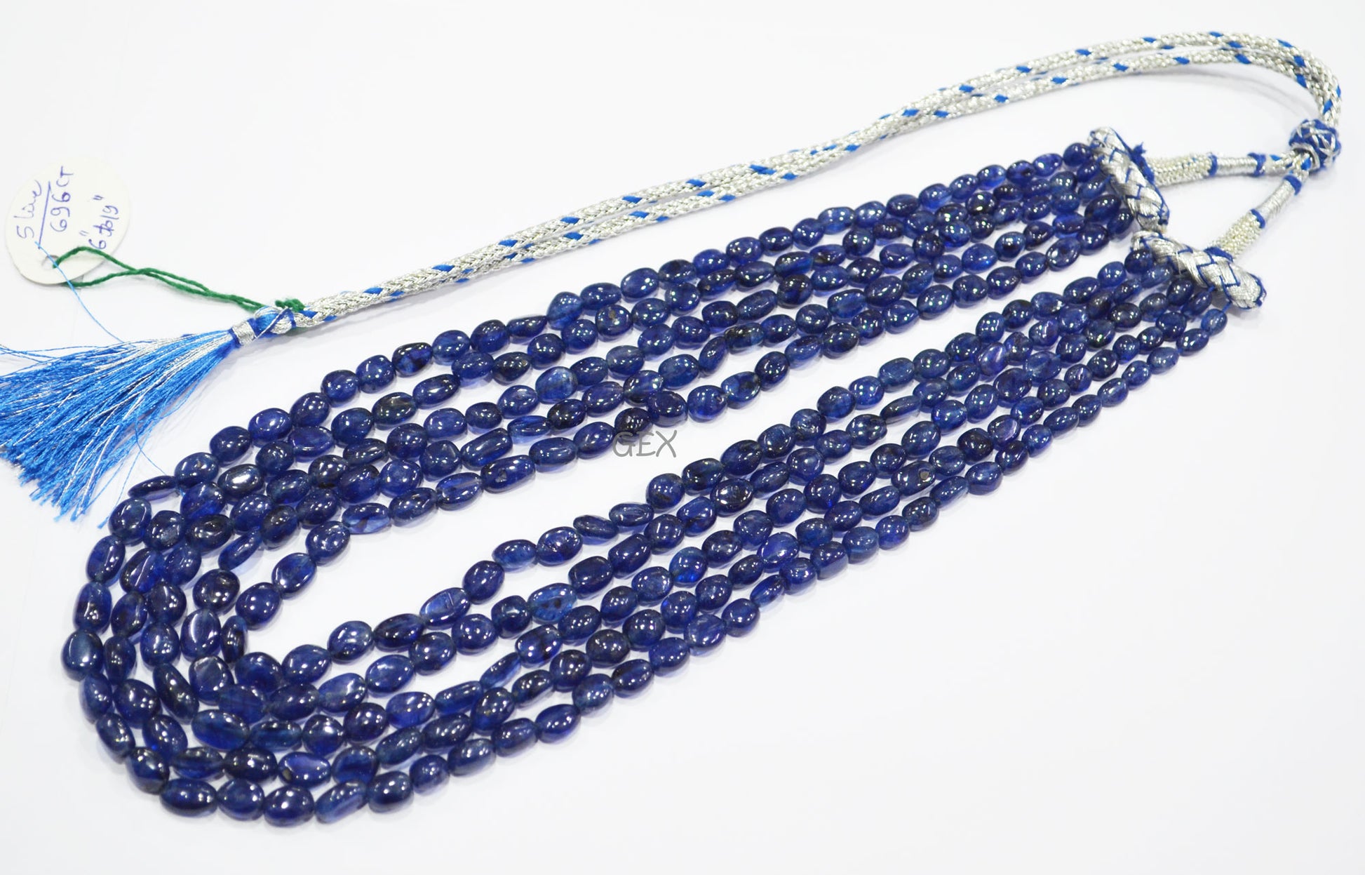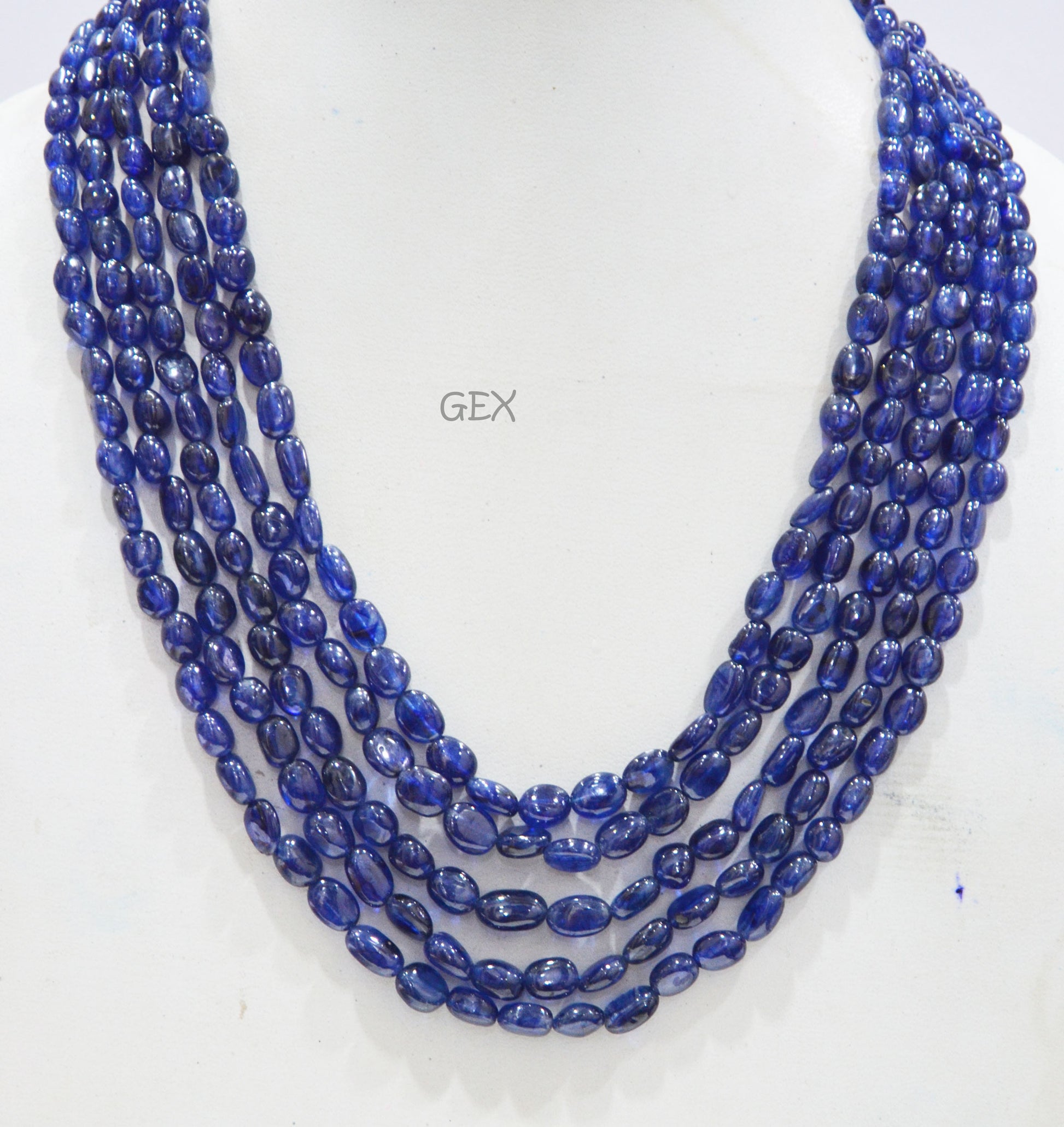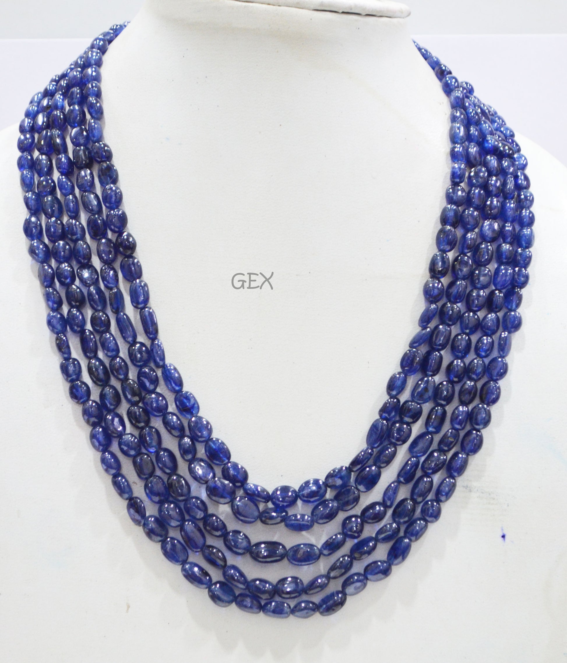 Sapphire Glass Filled Smooth Oval Nuggets Shape Necklace , Sapphire Glass Filled 5 Line Necklace 16 - 19 Inches Long With Adjustable Tussle , 6x7 - 6.50x10 mm , 32008