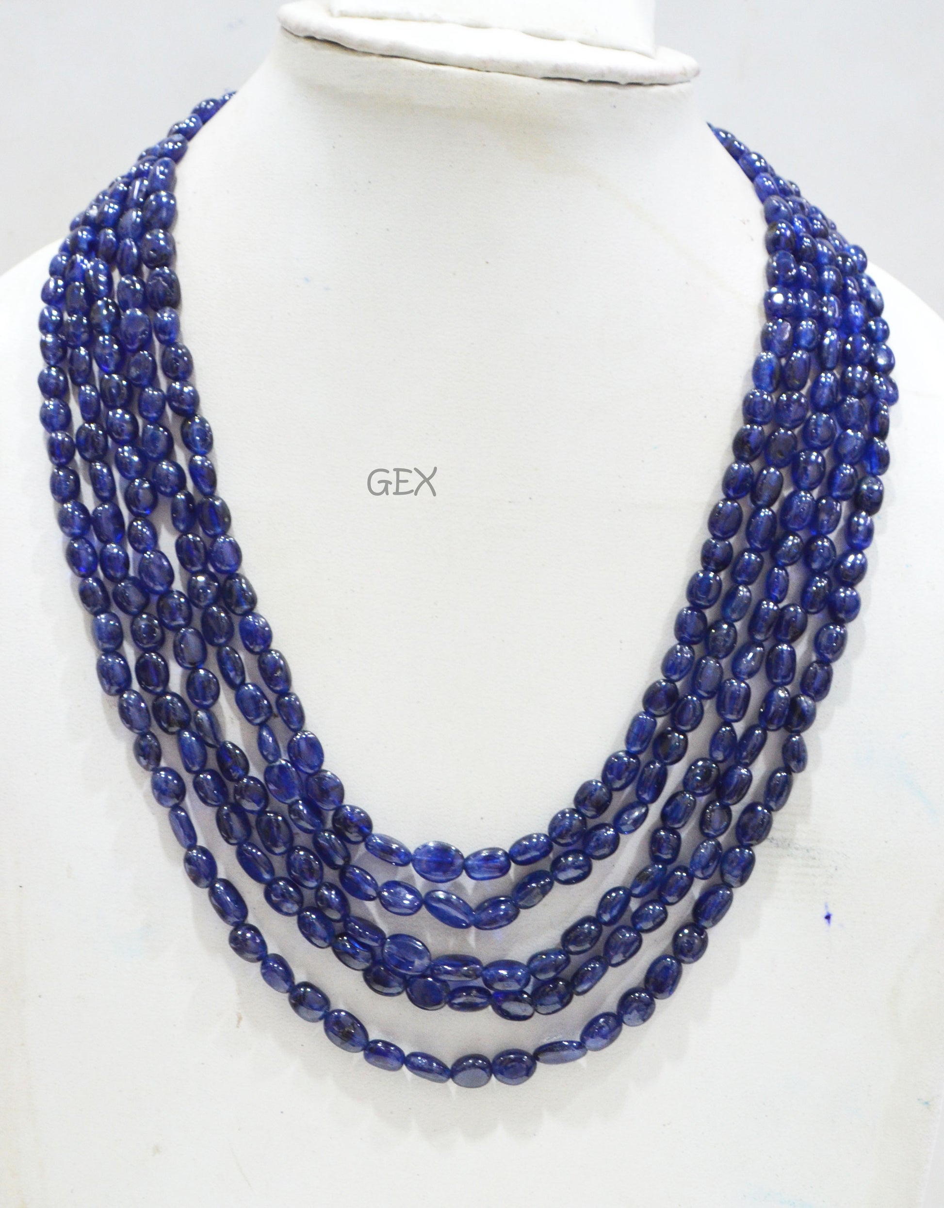 Sapphire Glass Filled Smooth Oval Nuggets Shape Necklace , Sapphire Glass Filled 5 Line Necklace 16 - 20 Inches Long With Adjustable Tussle , 4.50x5.50 - 7x10 mm , 32012