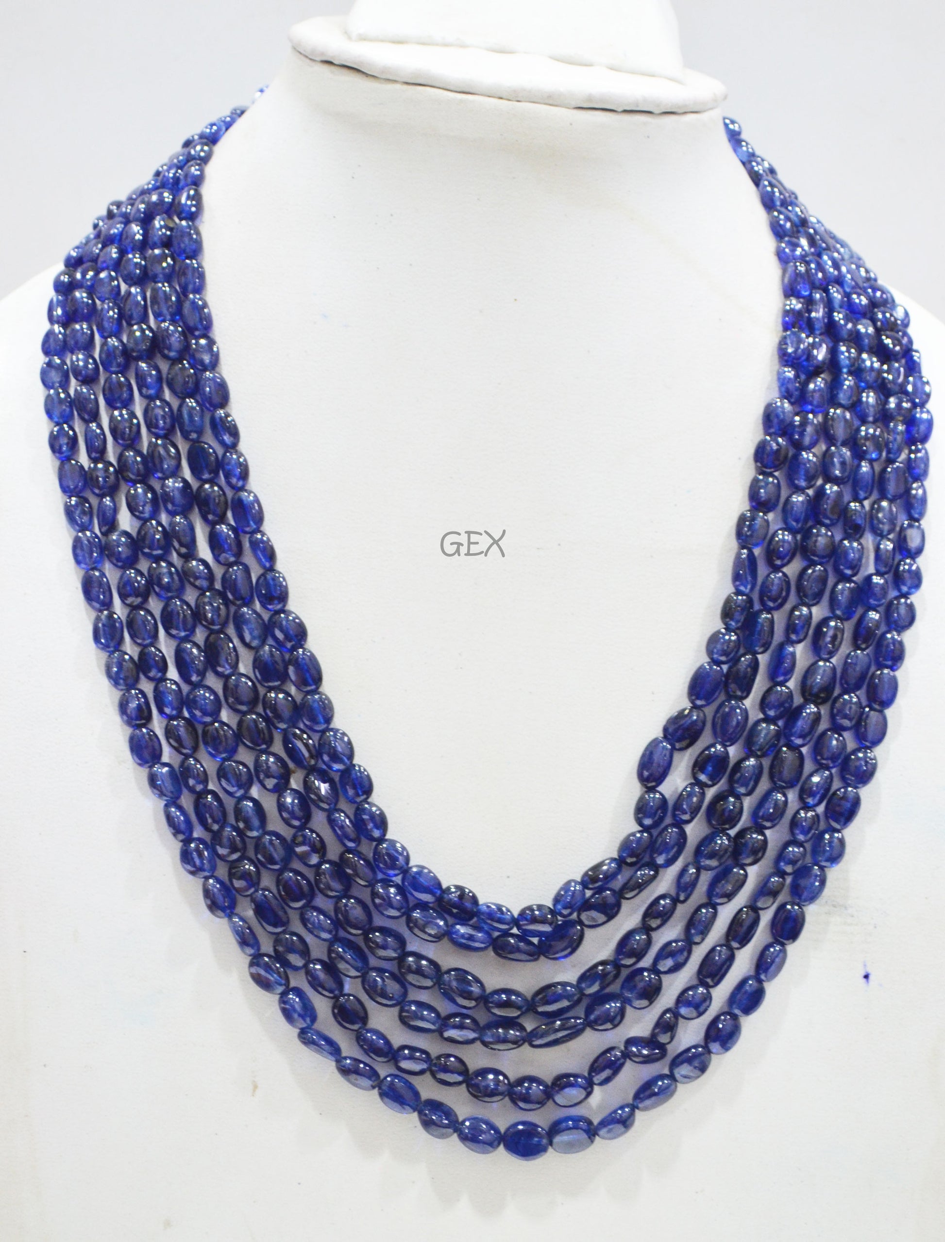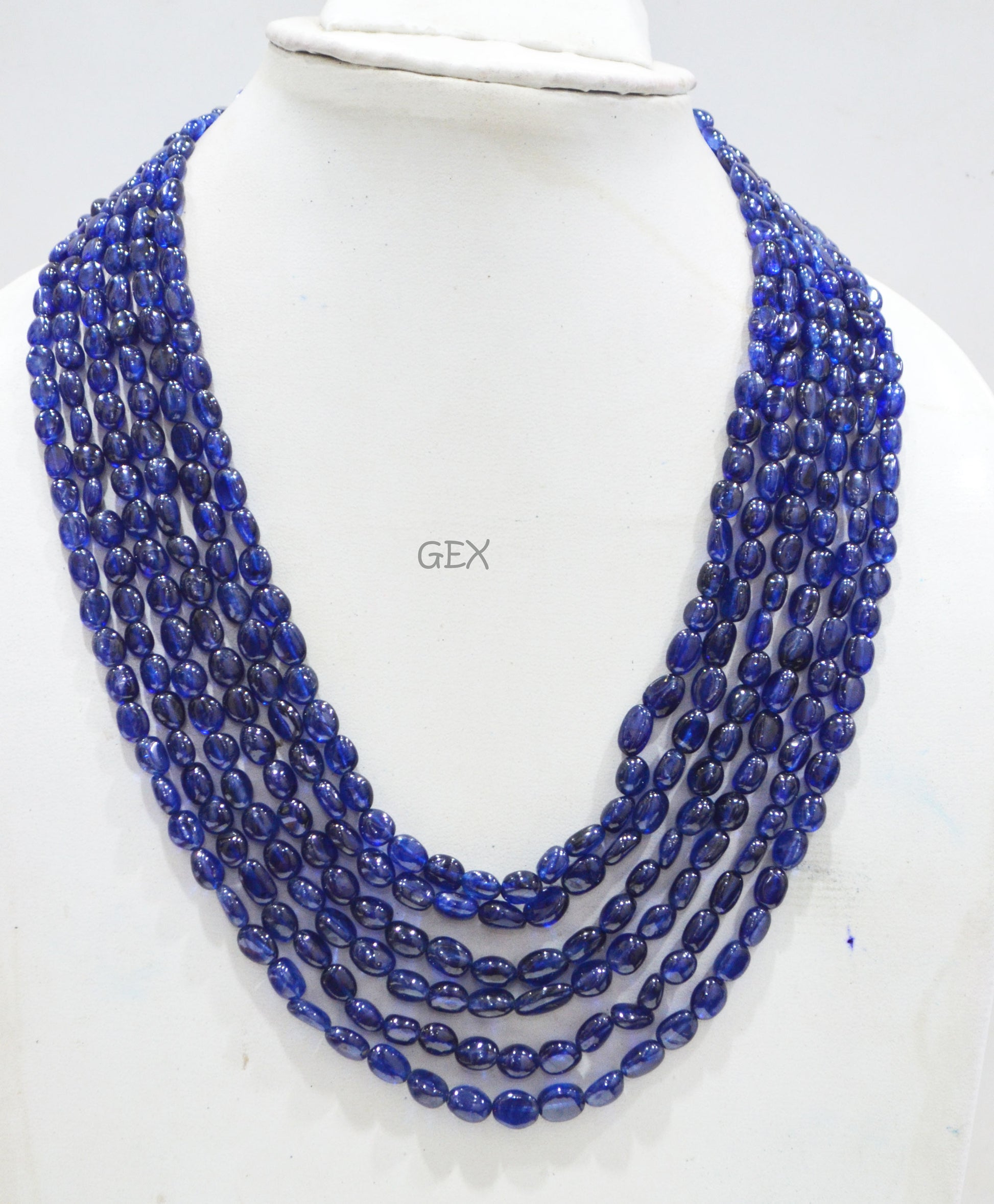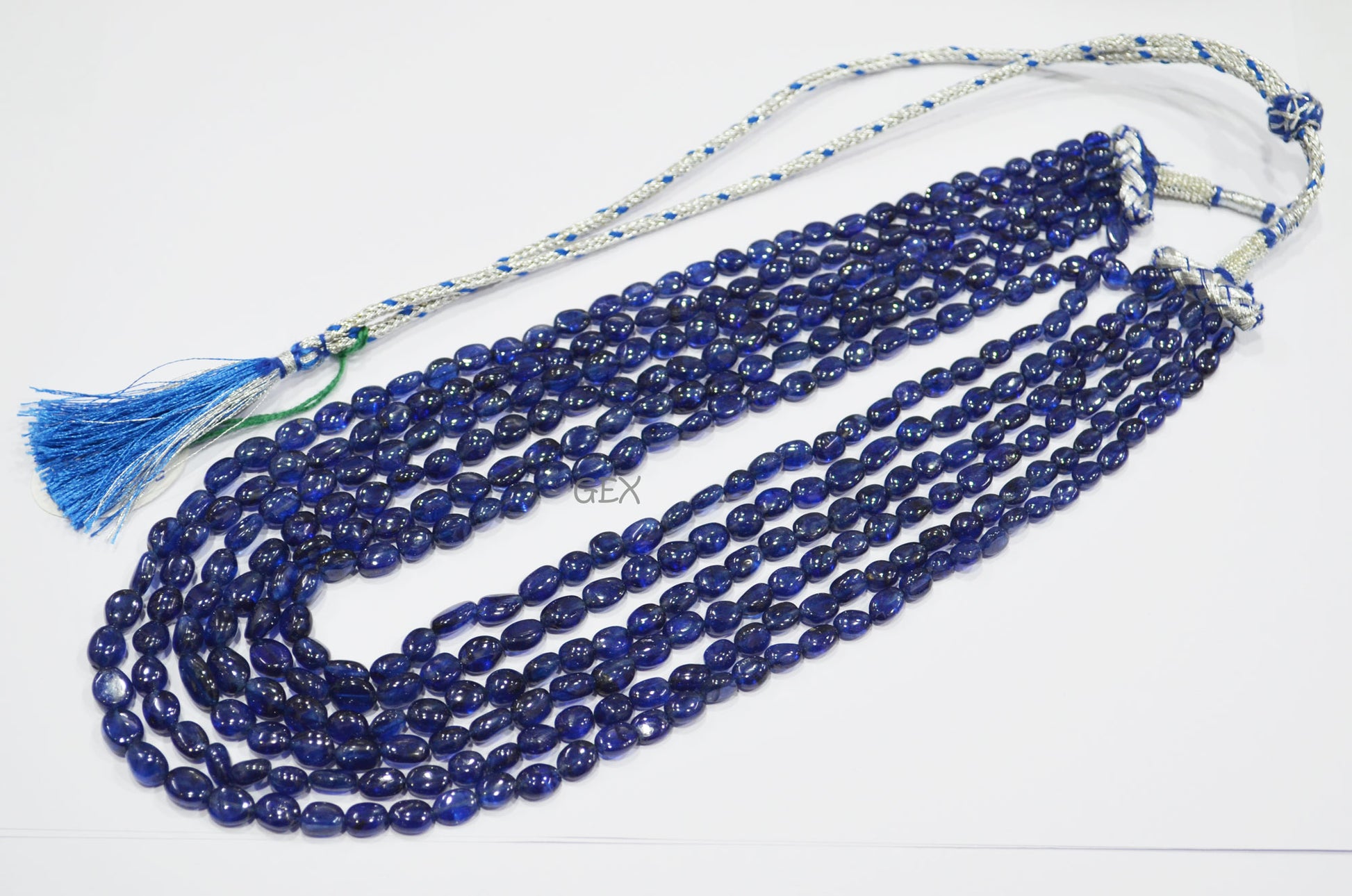 Sapphire Glass Filled Smooth Oval Nuggets Shape Necklace , Sapphire Glass Filled 6 Line Necklace 16 - 20 Inches Long With Adjustable Tussle , 5.50x6.50 - 7x9 mm , 32010