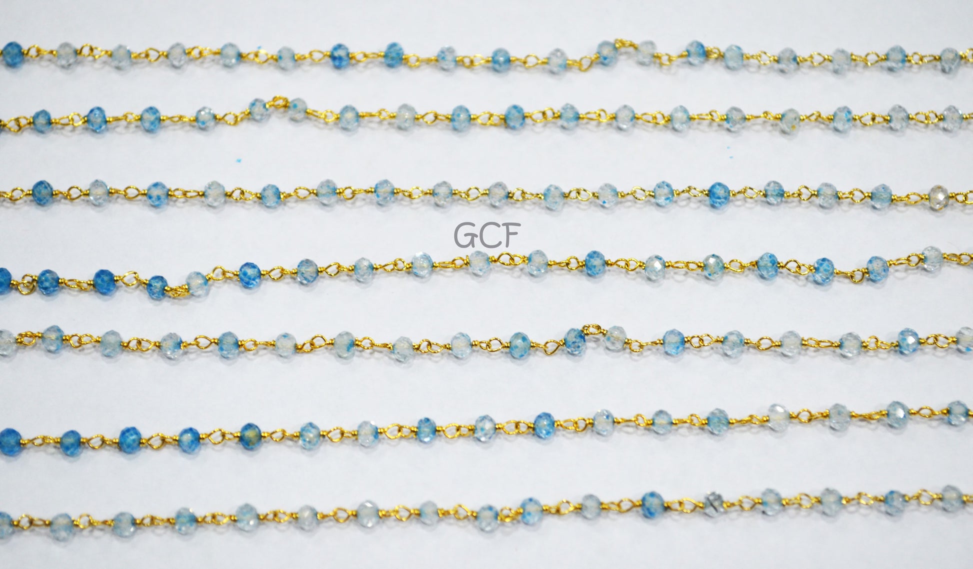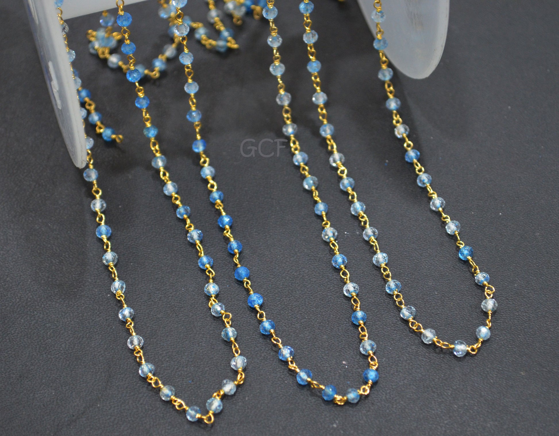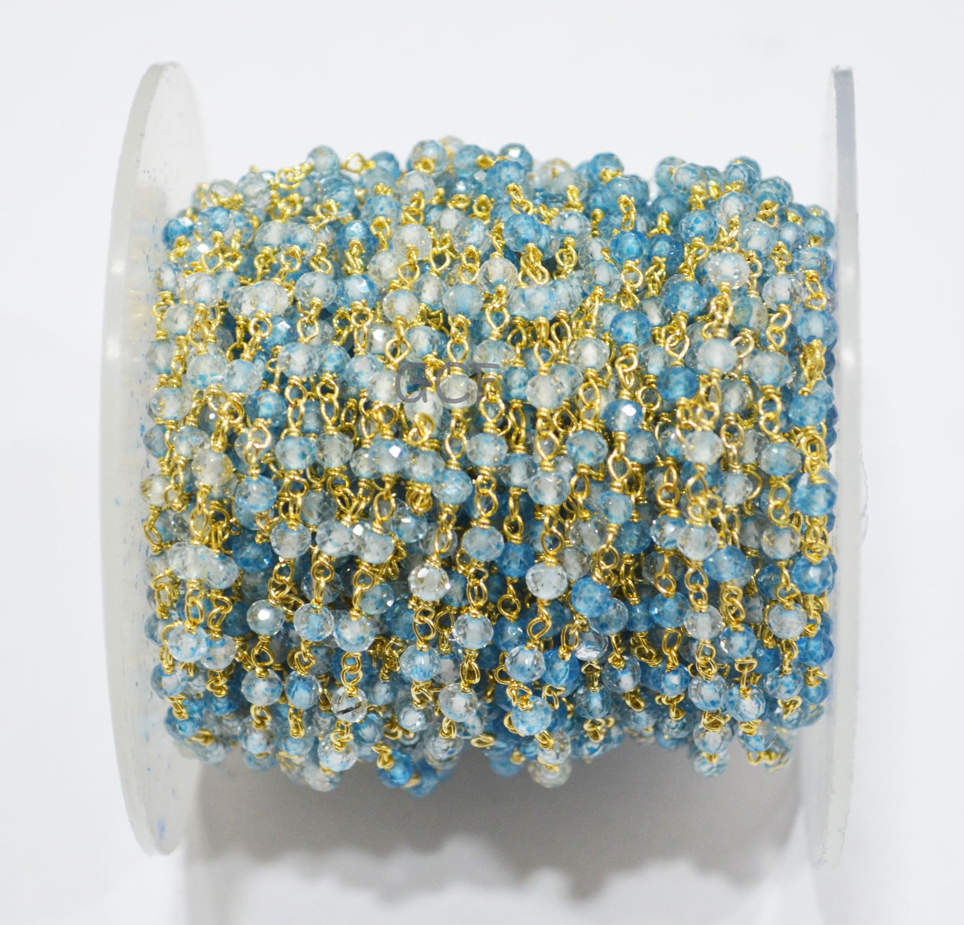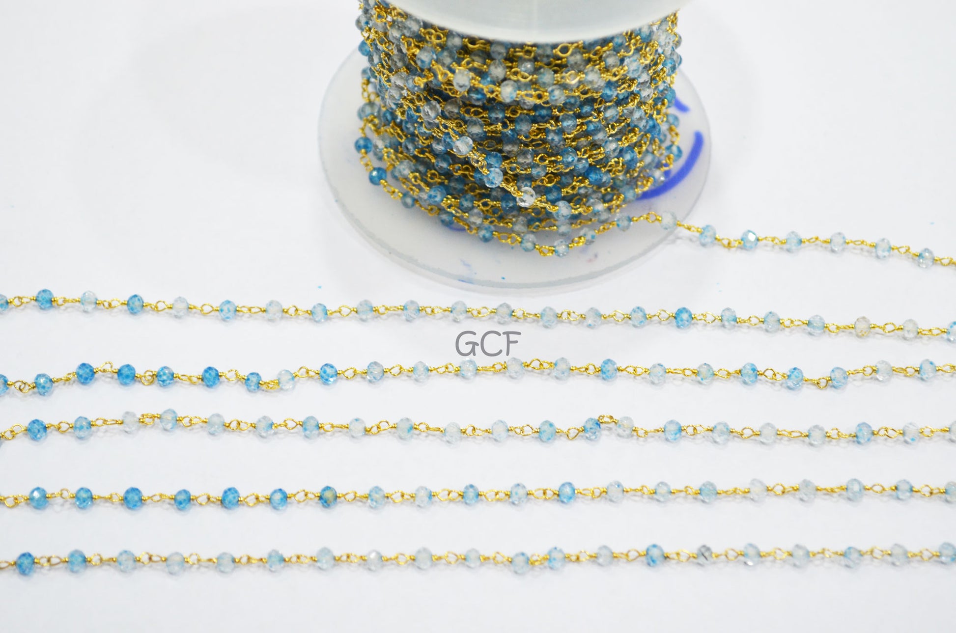 Shaded Swiss Blue Topaz Faceted Rondelle Shape Rosary Beaded Chain , Swiss Blue Topaz Wire Wrapped Chain , 3 mm , 6766